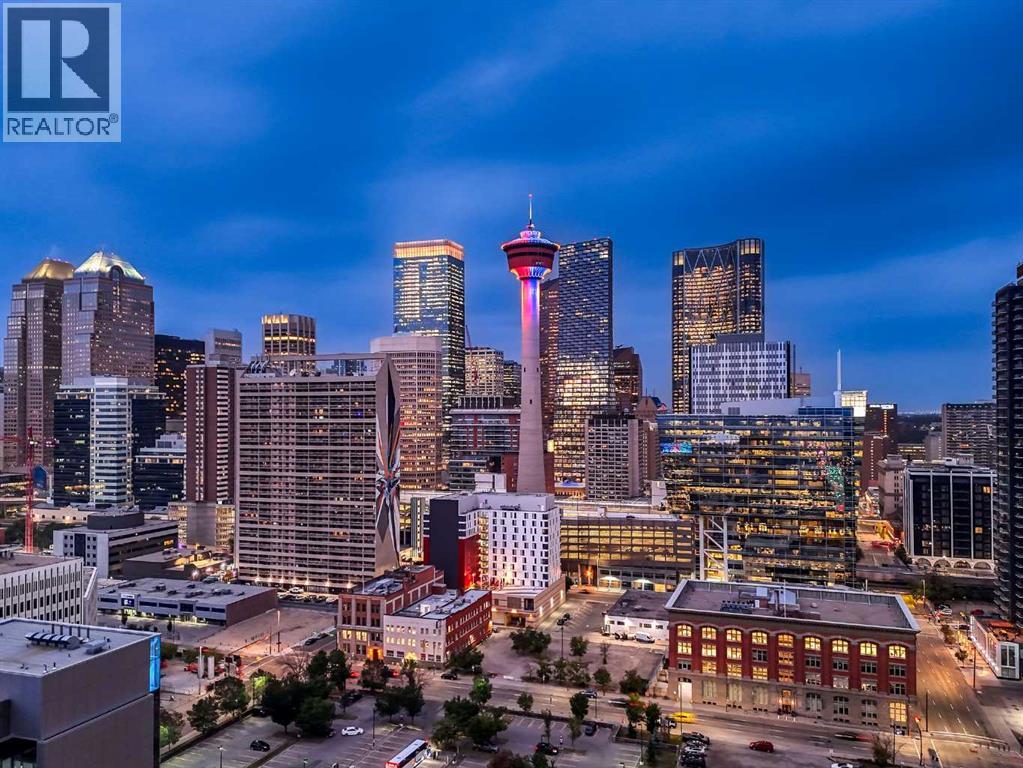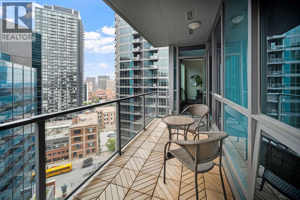 SLEEK 2 BED, 2 BATH, TURNKEY CONDO IN THE HEART OF CALGARY! Imagine living above Sunterra Market with fresh groceries, ready-to-go meals, and your morning coffee just an elevator ride away. This is the Beltline, Calgary’s most vibrant inner-city community where everything happens. Walk to the Saddledome for concerts or Flames games, experience the buzz of Stampede Park, shop and dine along 17th Avenue, or head out to the river pathways for a change of pace. Living the life in the Beltline means your days are connected, your evenings are lively, and your weekends are filled with endless options. At Keynote 1 you are not just buying a condo, you are putting yourself in the center of Calgary’s energy where work, play, and lifestyle all come together. This 15th floor residence offers nearly 900 sqft of chic and functional living with two bedrooms and two full bathrooms. Floor-to-ceiling windows flood the open-concept space and the dining area flows seamlessly onto your spacious balcony finished with interlocking wood tiles that add warmth and style to your private outdoor retreat. Inside, the kitchen is designed to impress with granite countertops, stainless steel appliances, and a custom-style shelving unit that extends your pantry or provides a showcase for glassware, plus a convenient breakfast bar perfect for pre-game cocktails with friends or a post-concert Skip order. Recently updated luxury vinyl plank flooring enhances the modern feel, while in-suite laundry deliver convenience. Unlike most condos, this property comes with not one but two storage lockers, a rare and valuable feature for condo living, along with a titled, secure, heated underground parking stall. BONUS: All the furniture, cookware/glassware, small appliances, cutlery, TV, dining room set can stay. Keynote residents enjoy premium amenities including two fitness facilities, one dedicated to weights and the other to cardio, a stylish owner’s lounge with table games and gathering spaces, and a landsc aped courtyard with outdoor BBQs, water feature wall, and room to celebrate with family and friends. Hosting guests is effortless with access to two fully furnished suites available at an affordable nightly rate. Whether you are seeking your own urban retreat or a smart investment in Calgary’s most undeniable location, this home delivers lifestyle, convenience, and exceptional value all in one. (id:55577)