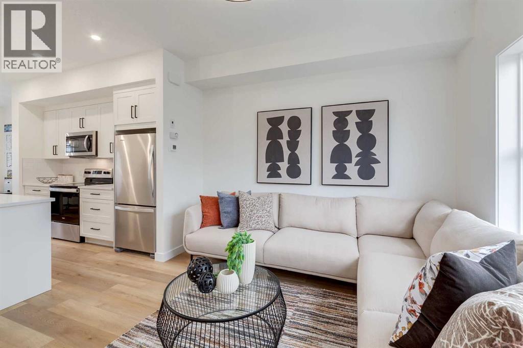 WALKOUT UNIT with BRIGHT SPRAWLING EAST VIEWS! NEW HOME WARRANTY INCLUDED and could offer a GST REBATE FOR QUALIFIED BUYERS. This walkout townhome unit offers BRIGHT SPRAWLING EAST VIEWS right from your FULL WIDTH back deck. Step inside to a bright, airy main floor featuring a MODERN OPEN-CONCEPT LAYOUT that is both stylish and functional. At the heart of the home is a SLEEK CONTEMPORARY KITCHEN with QUARTZ COUNTERTOPS, MATTE BLACK HARDWARE, WHIRLPOOL STAINLESS STEEL APPLIANCES, SOFT-CLOSE CABINETRY, and a CENTRAL ISLAND WITH SEATING, ideal for casual dining or entertaining. The kitchen flows seamlessly into the dining and living areas, where LARGE WINDOWS and LUXURY VINYL PLANK FLOORING create a bright and inviting atmosphere. A POWDER ROOM and a DEDICATED MUDROOM off the back entrance provide added convenience and organization for daily living. Upstairs, the SPACIOUS PRIMARY BEDROOM includes a WALK-IN CLOSET and a PRIVATE 3-PIECE ENSUITE. Two additional bedrooms offer flexible space for children, guests, or a home office. A FULL 4-PIECE BATHROOM and a CENTRALLY LOCATED LAUNDRY area make busy routines easier and more efficient. The unfinished basement provides exciting potential for future development, additional storage, or a customized space that fits your lifestyle. Designed with comfort and sustainability in mind, the home includes DUAL-PANE WINDOWS, a HIGH-EFFICIENCY HVAC SYSTEM, and an HRV UNIT for consistent comfort and performance year-round. Outside, you can relax on your FULL WIDTH DECK, LOWER LEVEL POURED PATIO or enjoy a quiet morning on the COVERED FRONT PORCH. This unit also comes with a FENCED BACKYARD, perfect for kids, pets, or both! Two ASSIGNED PARKING STALLS add convenience, and with LANDSCAPING AND SNOW REMOVAL INCLUDED, this property offers truly LOW-MAINTENANCE LIVING. Located in the well-established community of RIVERSONG, you are just minutes from SCHOOLS, SCENIC WALKING PATHS, PARKS, CO-OP and the SPRAY LAKE SAWMILLS FAMILY SPORTS CENTRE. Quick access to Highway 1 and 22 makes it easy to reach CALGARY or escape to the MOUNTAINS for a weekend getaway. With QUALITY FINISHES, a SMART LAYOUT, and a VIBRANT NEIGHBORHOOD, this home is designed for modern, comfortable living. The FREESTONE SHOWHOME AT 525 RIVER HEIGHTS DRIVE is open on WEEKENDS from 12 – 5pm! Photos are taken from the Showhome and do not reflect the property as this home is still under construction* WANT TO SEE THIS LAYOUT IN PERSON - HEAD TO THE SHOWOME 525 River Heights Drive TO TOUR THE SHOWHOME DESIGN. (id:55577)