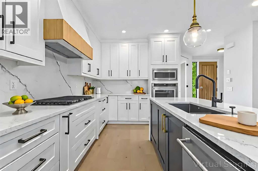 Brand new luxury duplex in Capitol Hill, each side featuring a fully legal 2-bedroom basement suite — a rare find in this prime inner-city location. Perfect for extra income, extended family, or investors looking to maximize cash flow.Each main floor offers 10-ft ceilings, engineered hardwood, a stunning quartz kitchen with a huge island, and a bright living area with a sleek gas fireplace. Upstairs, enjoy a vaulted primary suite with a spa-inspired 5-piece ensuite and walk-in closet, plus two more bedrooms, full bath, and laundry.The legal basement suites include private entrances, two spacious bedrooms, full kitchens, separate laundry, and bright living spaces — ideal as mortgage helpers or strong rental units.Extras: high-efficiency furnace, HRV system, R22/R50 insulation, roughed-in A/C, double garages, full landscaping, and Certified New Home Warranty.Move-in ready and minutes to SAIT, U of C, schools, parks, and shops. Smart, stylish, income-generating living — grab one or both before they’re gone. (id:55577)