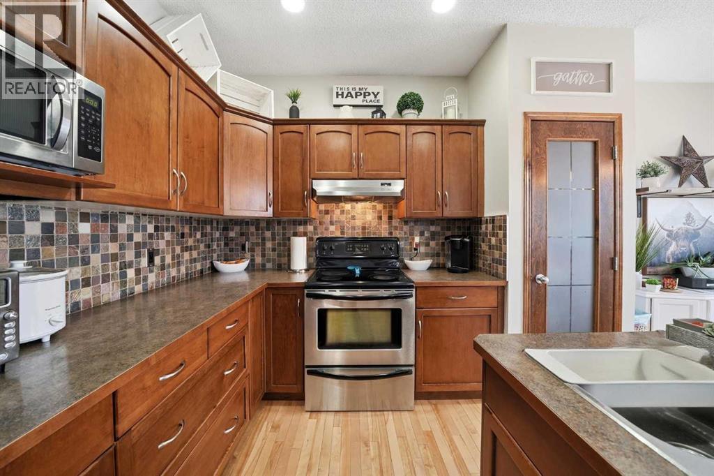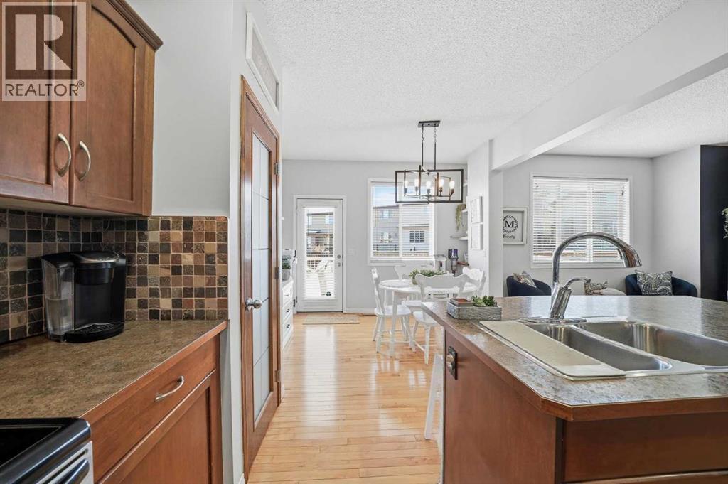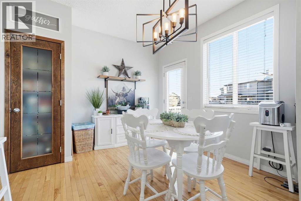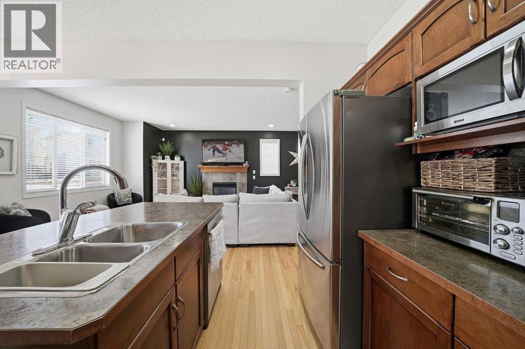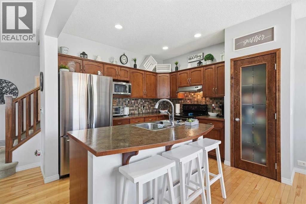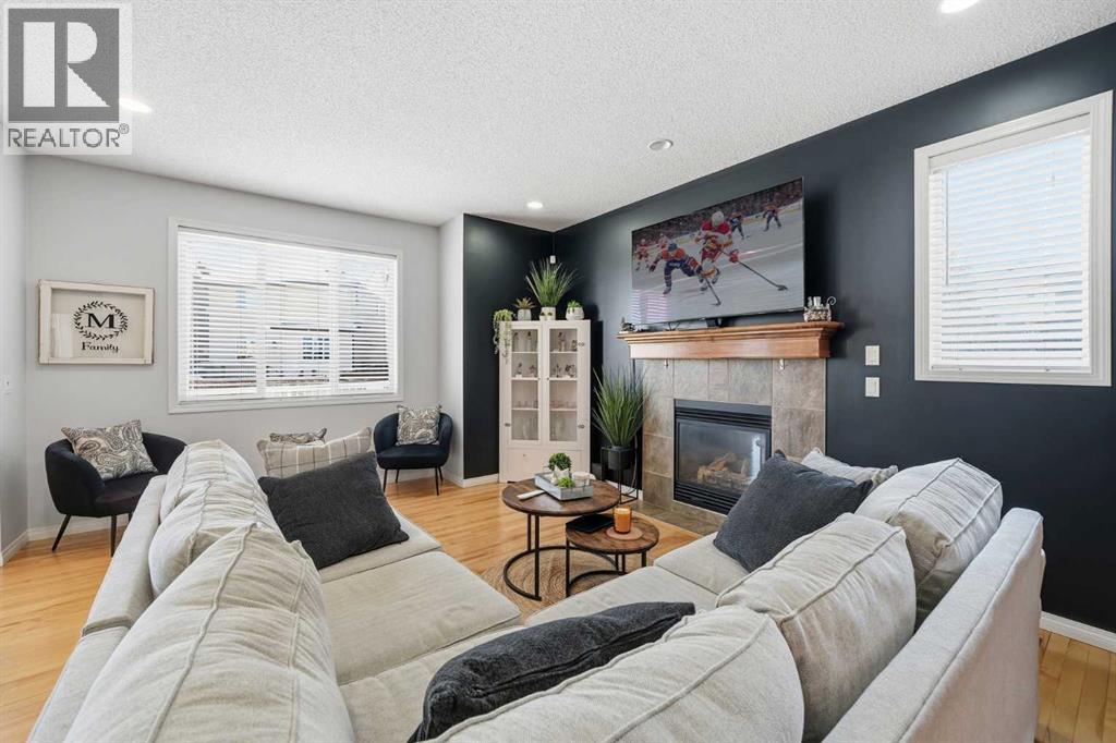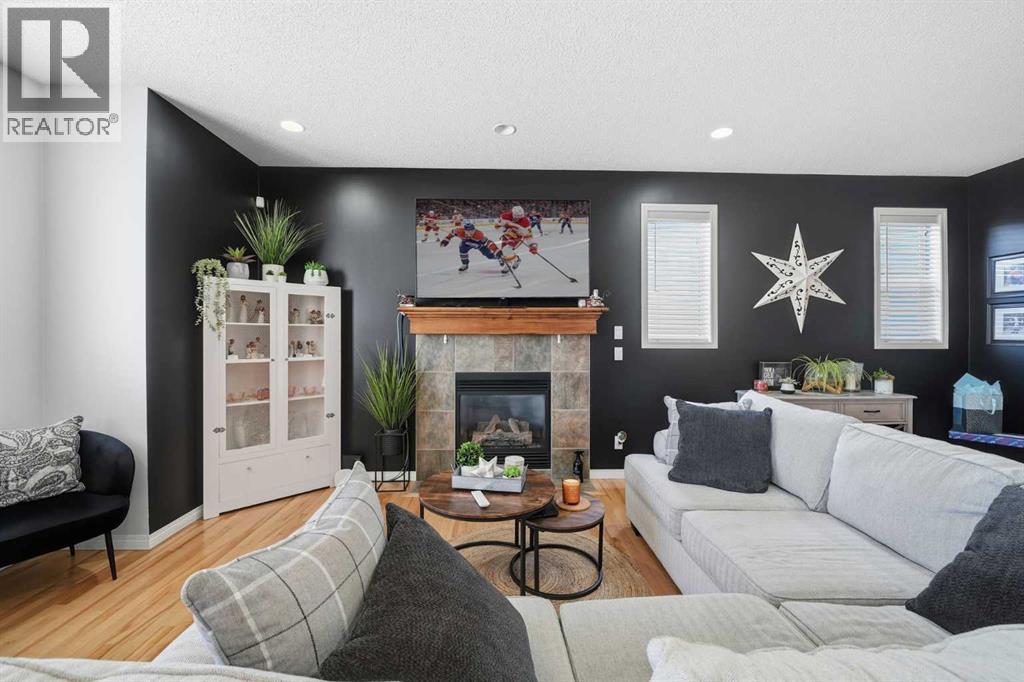Welcome to 155 Cimarron Grove Circle, tucked away on a quiet street in the popular community of Cimarron. This well-designed 4-bedroom, 4-bathroom home offers the perfect blend of style and functionality. With real hardwood flooring, comfy carpet, and tiled bathrooms, this family home is sure to impress.The main floor features a bright, open-concept layout. The kitchen showcases maple cabinetry, Stainless steel appliances and a natural slate backsplash, flowing seamlessly into the inviting living room, complete with a cozy gas fireplace. A convenient 2-piece bathroom finishes off this level.Upstairs, the spacious primary bedroom includes a generously sized ensuite, creating a private retreat. Upper-floor laundry adds great convenience. 3 additional bedrooms, a bonus room/loft, and a 4-piece main bath complete the second level!The fully finished lower level offers even more living space with a large family room and another 4-piece bathroom. The heated double garage ensures year-round comfort.Outside, enjoy the sun on the large deck overlooking the ample pie-shaped yard—perfect for kids, gardening, or a future firepit area. With back-lane access, there’s room to store extra toys if needed.This beautifully designed home also features central air conditioning, offering everything you need in a fantastic location. (id:55577)