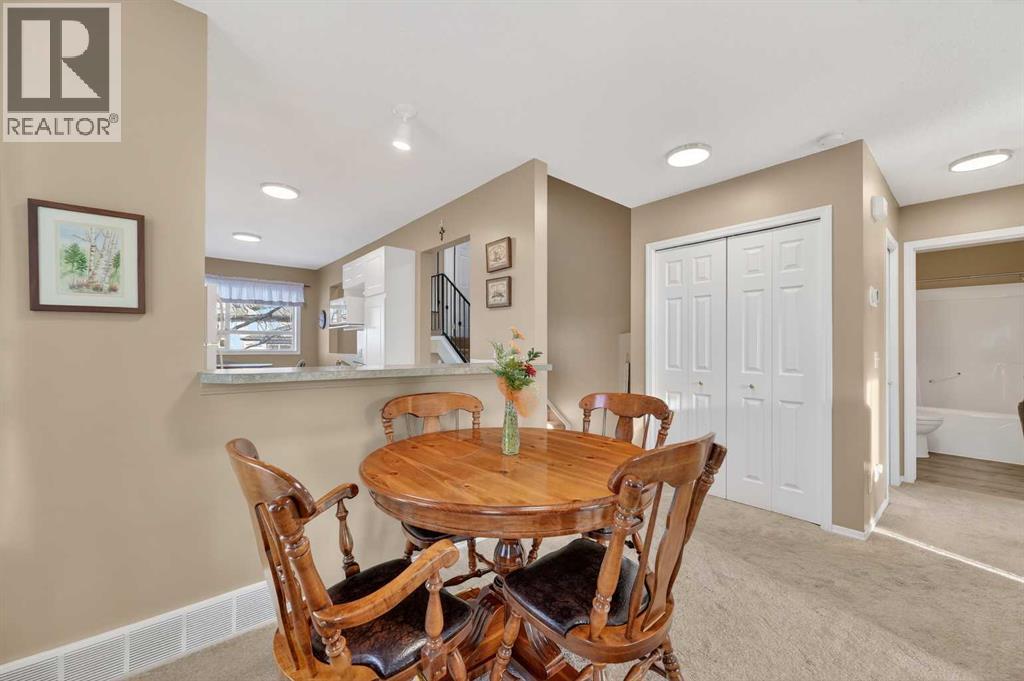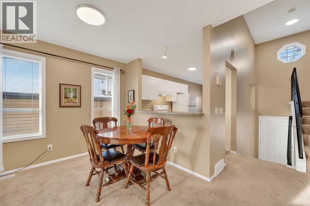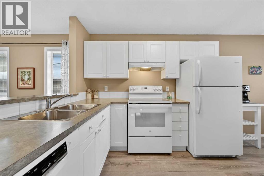 Welcome to West Pointe Villas, Airdrie’s sought-after adult living community, where pride of original ownership is evident throughout this beautifully maintained home. Thoughtfully designed with comfort and functionality in mind, the main level features an open-concept kitchen overlooking the living room, creating a bright and airy atmosphere. A generously sized dining area sits adjacent to a large window, offering an inviting space for everyday meals or entertaining. French doors from the living room lead to a sunny south-facing deck, overlooking a peaceful, fully fenced backyard—perfect for relaxing or enjoying outdoor time. A spacious bedroom on the main level can serve as a primary or guest room and is conveniently located next to a full four-piece bathroom. The upper level is dedicated entirely to a private primary retreat, featuring a large walk-in closet and a full four-piece ensuite, providing a quiet and comfortable escape. The lower level includes an additional bedroom, a welcoming family room, laundry area, and a large storage room, offering excellent versatility and extra living space. There is a rough in for a 3rd bathroom in the basement. Completing the home is a beautifully landscaped backyard and a single attached garage, making this property an exceptional opportunity for low-maintenance living in a well-established community. (id:55577)