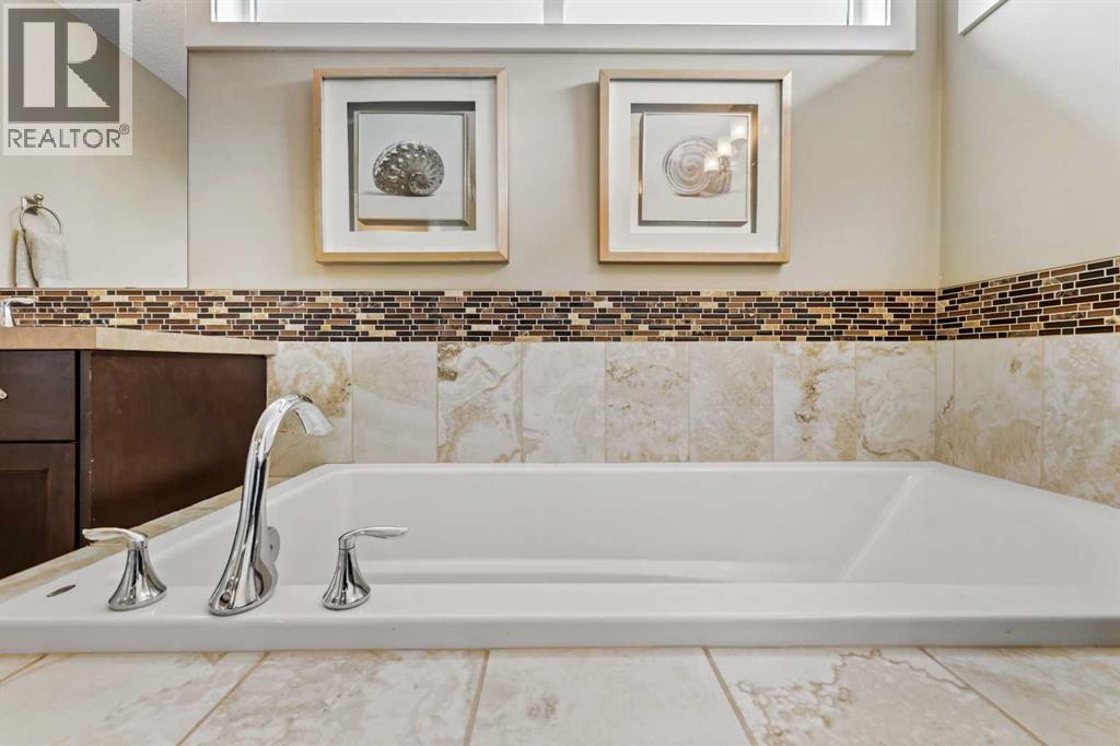 JEWEL OF A DEAL | CHAPARRAL VALLEY VIEW | NATURE & LUXURY COMBINEDWelcome to a truly exceptional home where lifestyle meets location in the heart of Chaparral Valley—just steps from Fish Creek Park, the Bow River pathways, Blue Devil Golf Course, ponds, playgrounds, and an abundance of green space. This custom-crafted home offers over 2,290 sq ft of beautifully designed living space, 3 bedrooms + bonus room, a main floor den, 2.5 bathrooms, and stunning views that create a peaceful retreat in an urban setting.The thoughtfully designed open-concept main level is ideal for modern family living and effortless entertaining. Soaring 9’ ceilings on both the primary and upper floors enhance the spacious feel, while extra windows flood the interior with natural light. The chef-inspired kitchen is the heart of the home, featuring rich dark-stained shaker cabinets extended to the ceiling, granite countertops, a large central island with an eating bar, a walk-through pantry, full-height tile backsplash, and upgraded stainless steel appliances.Overlooking the dining area and cozy great room with a gas fireplace, the main floor also includes a private front-facing den—perfect for a home office, reading room, or play area.Upstairs, you'll find a spacious bonus room with vaulted ceilings, a stone-faced fireplace, and a private balcony offering beautiful views. The oversized primary suite is a true retreat with a spa-inspired ensuite including a deep soaker tub, separate shower, dual vanities, and a supersized walk-in closet. Two additional bedrooms, an upper-floor laundry room, and a second full bathroom complete this well-planned level.Step outside to your backyard oasis, a sunny and private east-facing yard with low-maintenance landscaping, a raised BBQ deck, lower patio, and luxurious hot tub—perfect for relaxing, entertaining, or family fun. Curb appeal is top-notch, featuring wood column accents, stone detailing, upper front verandah and a covered front porch that wa rmly welcomes guests.Additional upgrades include:Oversized, fully insulated & drywalled double attached garageModern lighting and plumbing fixturesGranite countertops Custom baseboards, doors, and trimUnspoiled basement with great development potentialLocated close to schools, shopping, restaurants, public transit, and South Health Campus in Seton, this home is a must-see for families, professionals, or those looking to embrace a lifestyle rooted in both nature and convenience.Don’t miss your chance to view this one-of-a-kind property—call your friendly REALTOR® today for a private tour! (id:55577)