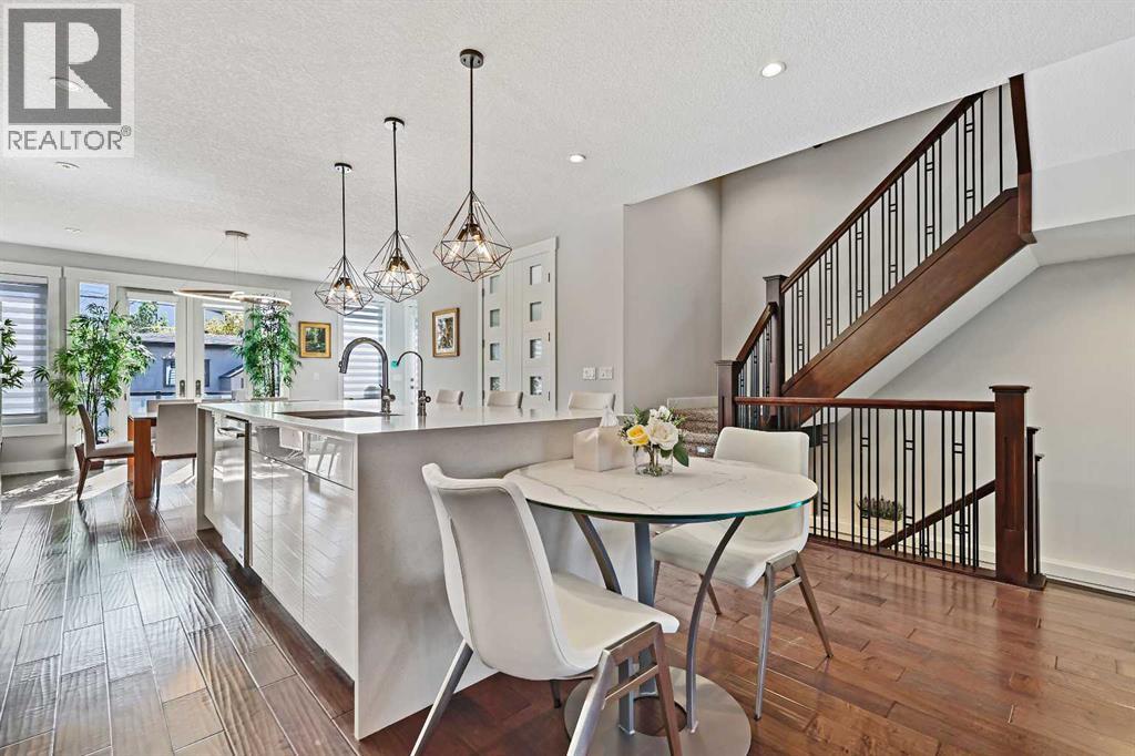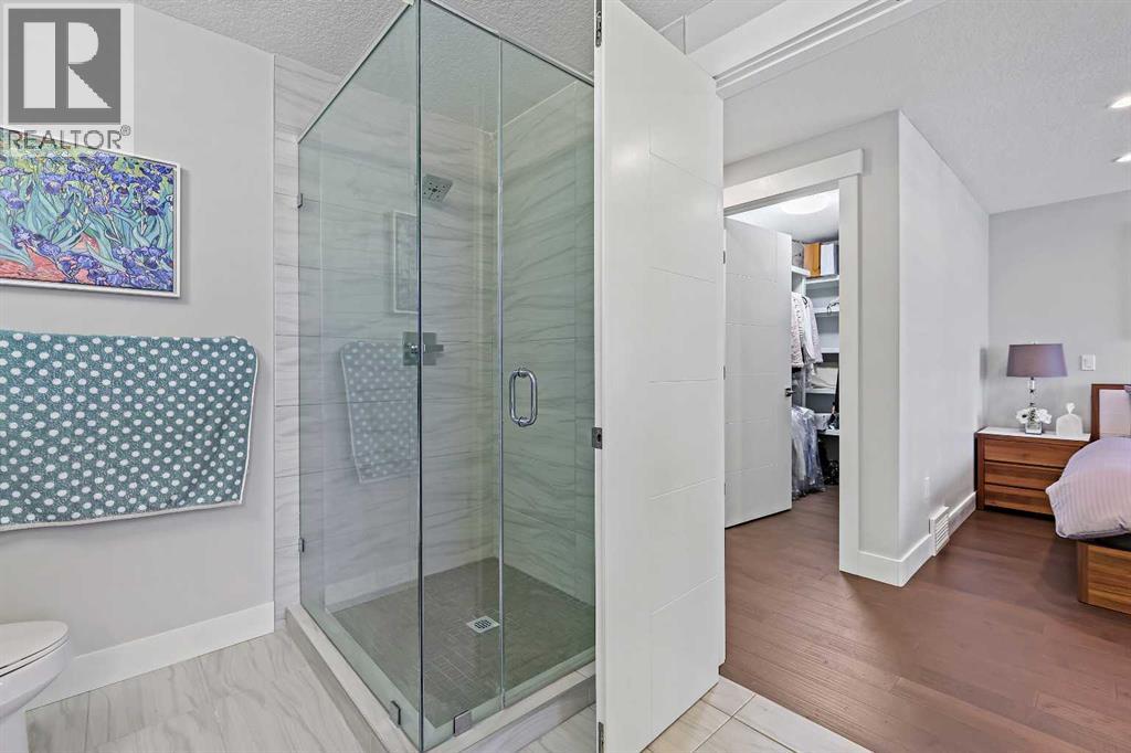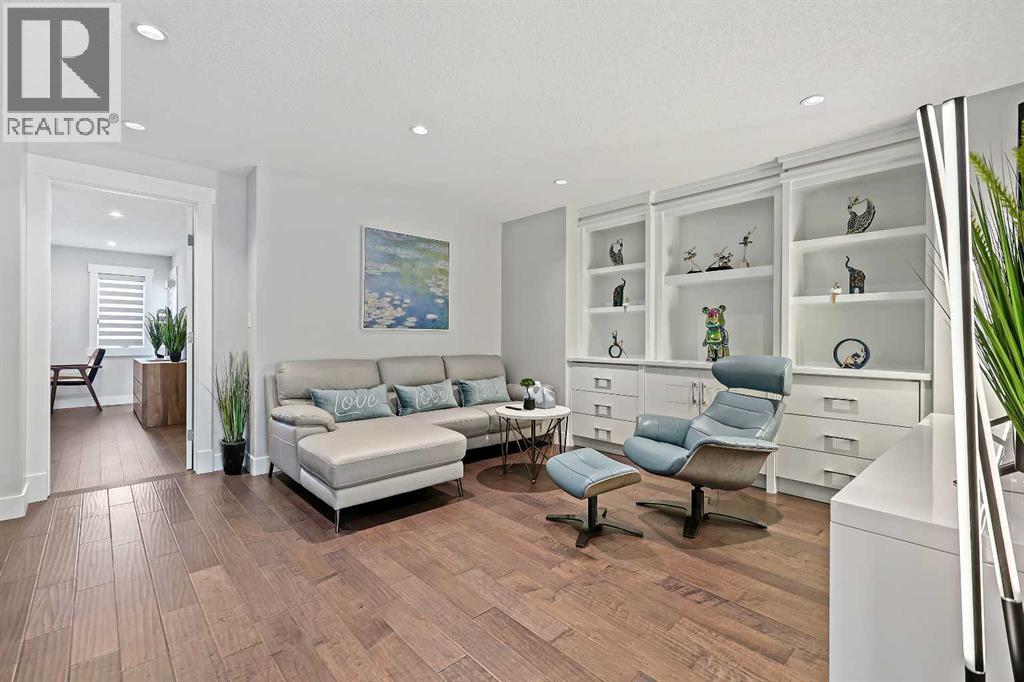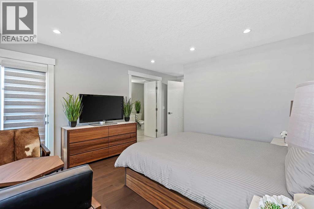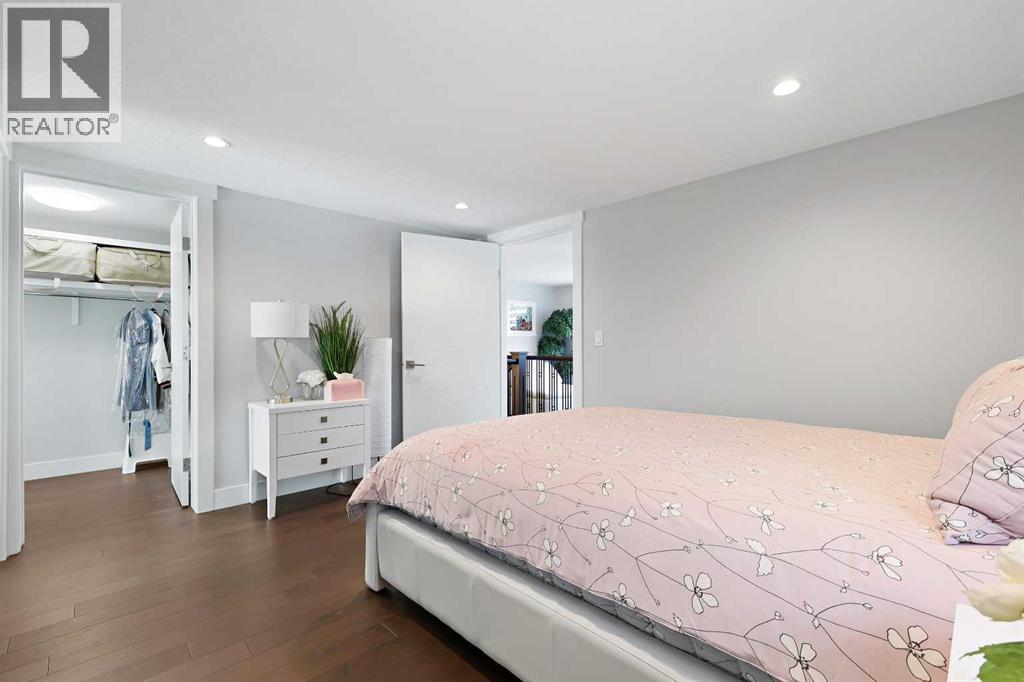 A rare opportunity in Montgomery — semi-detached home stands out with four fully finished levels, nearly 4000 sqft of developed living space, a private balcony, and a long list of premium upgrades. Steps from the Bow River pathway, Shouldice Park, Market Mall, and minutes to both Foothills and Children's Hospital, this location is as connected as it is private. Inside, the home is finished with luxury Canadian maple hardwood on all upper levels, layered lighting (including updated LED fixtures), and fresh paint throughout. The main floor showcases a sleek chef's kitchen with JennAir stainless steel appliances, including a gas cooktop, built-in oven, chimney hood fan, and integrated microwave. A full walk-in pantry, with double doors, and extended island with waterfall quartz complete the space. The spacious living area offers floor-to-ceiling windows and a gas fireplace framed by custom tile. The second level hosts dual primary suites, each with walk-in closets and five-piece ensuites featuring full tile, deep tubs, and separate glass showers. A bonus room with custom built-in shelving and a full laundry room with storage complete this level. On the top floor, a third bedroom, with its own 5 pc ensuite, walk in closet, and dedicated office that's open to a private rooftop balcony with unobstructed views. The fully developed basement includes a fourth bedroom, full bath, in-floor heating, large rec room with wet bar and beverage fridge, and extra storage. Additional upgrades include: newer high-capacity heat pump system, Kinetico water softener, dechlorinator, purified drinking tap, security cameras (x4), dual doorbell cams, Hunter Douglas window coverings and a freshly painted interior. Detached garage and landscaped yard, with a large deck and beautifully tended garden complete the package. (id:55577)