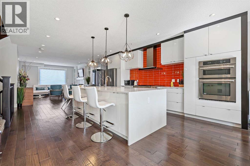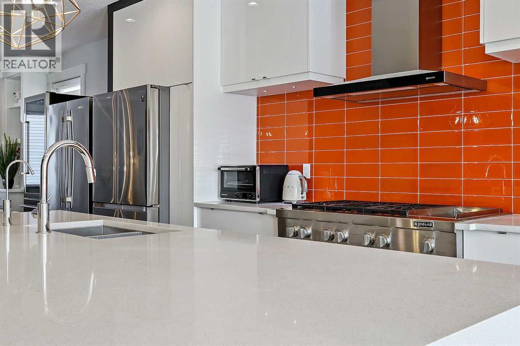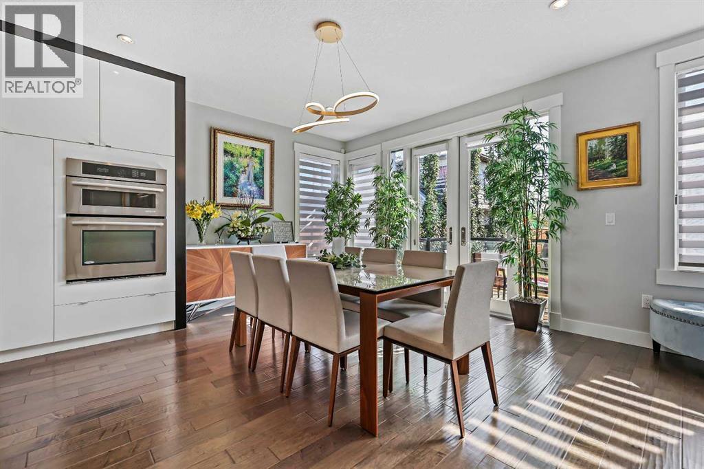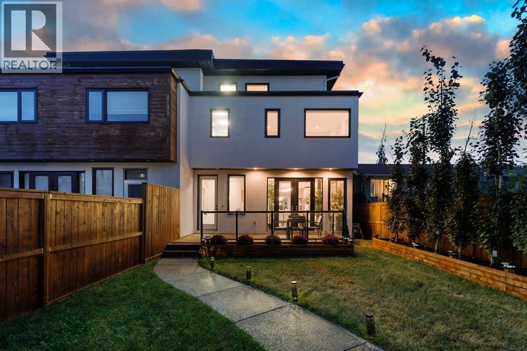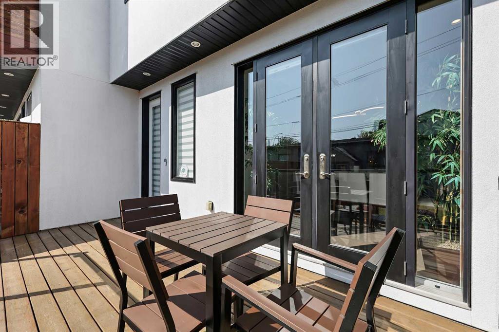A rare opportunity in Montgomery — semi-detached home stands out with four fully finished levels, nearly 4000 sqft of developed living space, a private balcony, and a long list of premium upgrades. Steps from the Bow River pathway, Shouldice Park, Market Mall, and minutes to both Foothills and Children's Hospital, this location is as connected as it is private. Inside, the home is finished with luxury Canadian maple hardwood on all upper levels, layered lighting (including updated LED fixtures), and fresh paint throughout. The main floor showcases a sleek chef's kitchen with JennAir stainless steel appliances, including a gas cooktop, built-in oven, chimney hood fan, and integrated microwave. A full walk-in pantry, with double doors, and extended island with waterfall quartz complete the space. The spacious living area offers floor-to-ceiling windows and a gas fireplace framed by custom tile. The second level hosts dual primary suites, each with walk-in closets and five-piece ensuites featuring full tile, deep tubs, and separate glass showers. A bonus room with custom built-in shelving and a full laundry room with storage complete this level. On the top floor, a third bedroom, with its own 5 pc ensuite, walk in closet, and dedicated office that's open to a private rooftop balcony with unobstructed views. The fully developed basement includes a fourth bedroom, full bath, in-floor heating, large rec room with wet bar and beverage fridge, and extra storage. Additional upgrades include: newer high-capacity heat pump system, Kinetico water softener, dechlorinator, purified drinking tap, security cameras (x4), dual doorbell cams, Hunter Douglas window coverings and a freshly painted interior. Detached garage and landscaped yard, with a large deck and beautifully tended garden complete the package. (id:55577)
