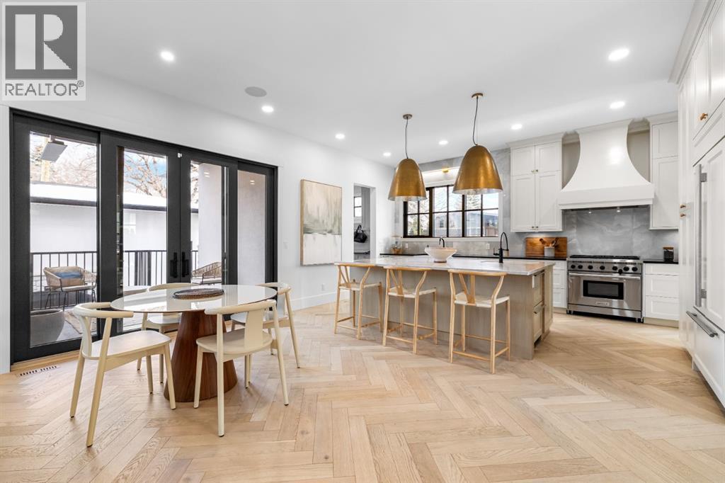Set on one of Altadore’s most coveted tree-lined streets, this exceptional 3,339 sq. ft. residence sits on a rare 60’ x 120’ corner lot with a playground literally in the backyard and Sandy Beach, river pathways, and off-leash dog parks just steps away.Designed for both everyday living and entertaining, the home offers a timeless centre-hall floor plan with refined, functional spaces throughout. The main level features a professional-grade kitchen with walk-in pantry, a welcoming living room, formal dining area, private den, and seamless indoor-outdoor flow—ideal for hosting at any scale.Upstairs, you’ll find four bedrooms, including a spacious primary retreat with a spa-inspired ensuite and an impressive walk-in closet—perfectly positioned for privacy and comfort.Sliding patio doors open to a covered outdoor living area complete with built-in BBQ station and radiant heaters, overlooking an additional uncovered patio with a built-in fireplace—an entertainer’s dream year-round. The over-height triple car garage (12’ ceilings) easily accommodates three car lifts, and the corner-lot driveway provides the perfect setup for kids’ hockey games or basketball.The fully developed basement adds even more versatility with a large recreation room, built-in wet bar, wine room, exercise room, bedroom, bathroom, and ample storage.Built by inner-city specialist Calista Homes, this is a rare opportunity to own a thoughtfully designed, family-friendly home on one of Altadore’s best streets—where lifestyle, location, and craftsmanship come together effortlessly. (id:55577)