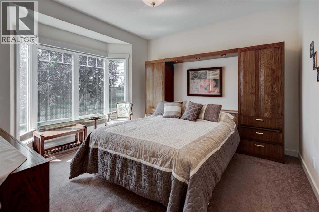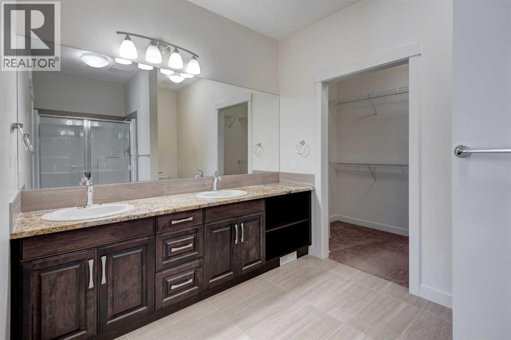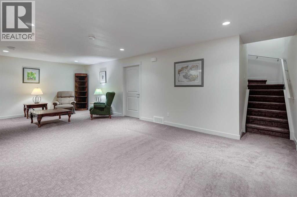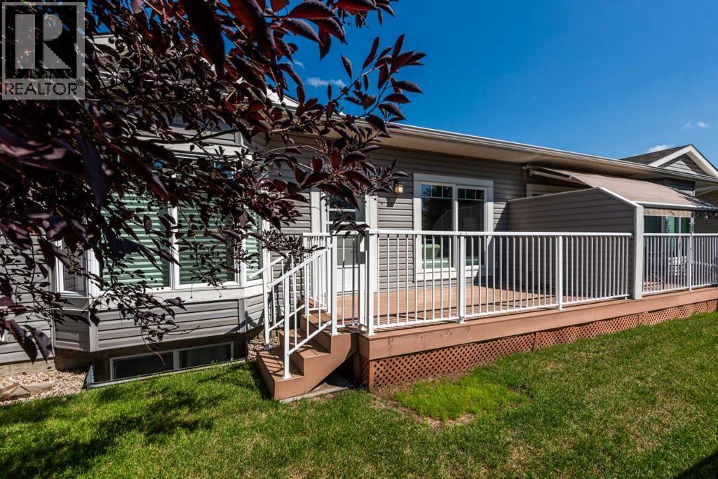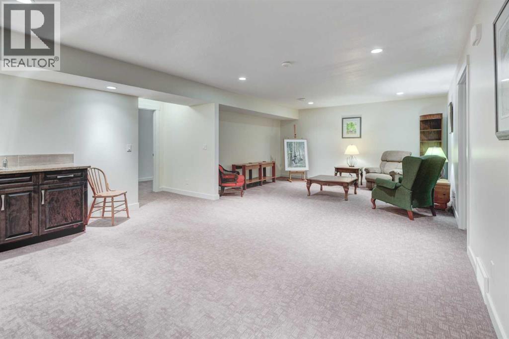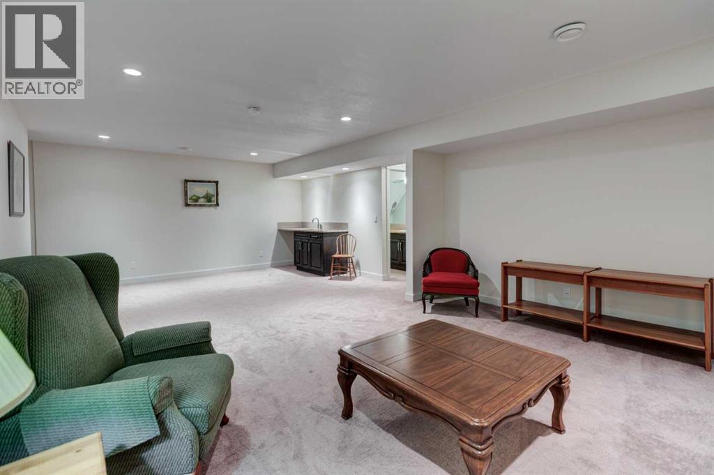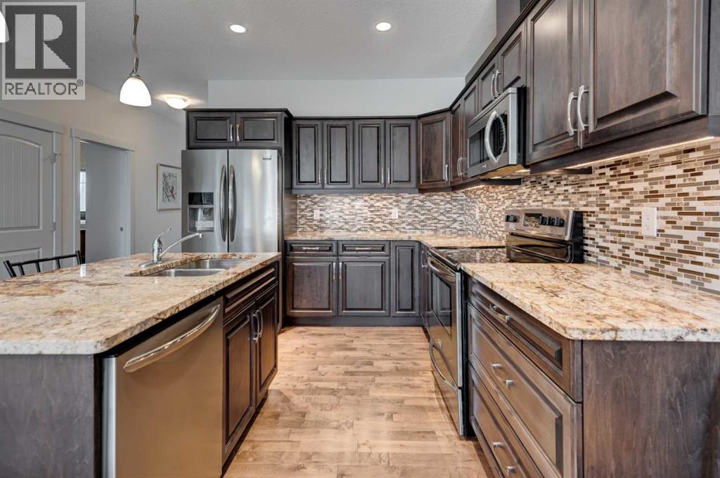 Beautifully maintained fully developed villa in Sagewood Adult Living (55+) community in Strathmore is now available for a quick possession. This former SHOWHOME is fully upgraded and features 9 ft ceilings, wide hallways, granite countertops, throughout the main level, hardwood floors, copious kitchen cabinetry with soft close cupboards and drawers, under cabinet lighting and stainless steel appliances. The floorplan is open concept with a West exposure from the living room. The primary suite presents luxuriously with a large bay window, enough space for a king size bed and dressers and accompanied by a walk in closet. The en suite has his and her sinks, lots of storage in the vanity and a full sized shower. The main level conveniences extend to include a 3 piece guest bathroom, laundry, and a second bedroom or flex room, as it can also be used as a dining room, den or tv room. The basement contains another bedroom, additional full bathroom, spacious family room with games table area and a wet bar. Storage? There is more than ample storage! Find space here to add a hobby room. There is parking for you in the double attached garage and guest parking a few doors down. The neighbors are wonderful and welcome social gatherings. There are ample walking paths, pickle ball courts, indoor swimming, shopping, hospital, volunteer opportunities and many community activities in the Town of Strathmore. Call your Realtor® to view this luxury villa! (id:55577)