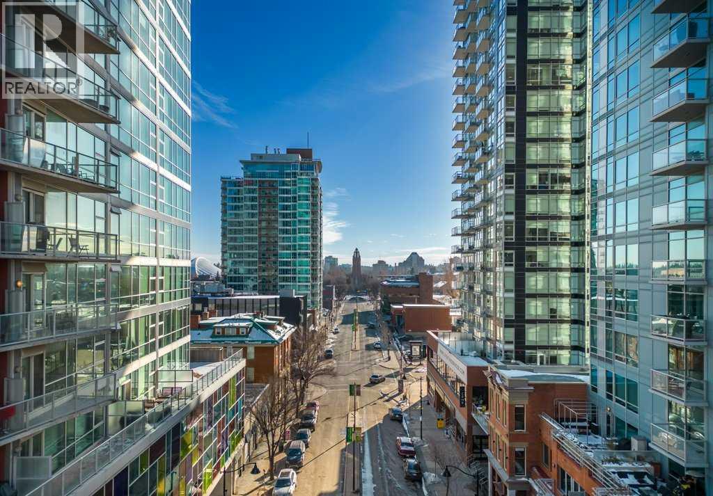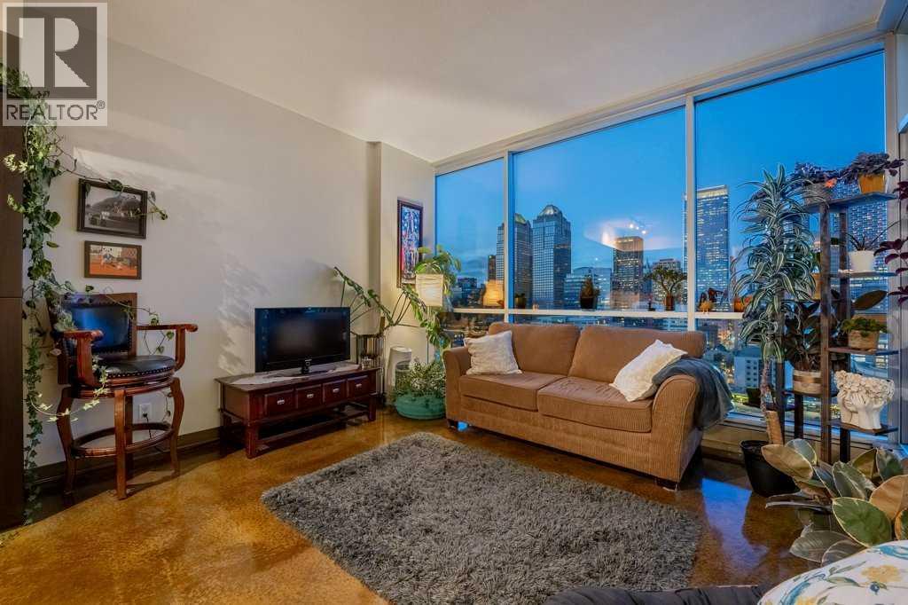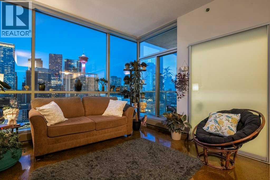 --> OPEN HOUSE: Saturday, March 14 from 1:30 to 3:30pm <-- Seventeen floors above the city, the perspective changes. The noise fades, the skyline sharpens and Calgary stretches out before you like a living postcard. This is Colours, a short-term rental approved complex, where a coveted two bedroom residence delivers a truly panoramic view of the downtown skyline. You know, the kind of million dollar outlook typically reserved for penthouses - yet here you experience it for roughly a third of the price. Stunning floor-to-ceiling north facing windows frame the city like artwork, flooding the space with natural light while showcasing Calgary’s towers, lights and endless urban energy. The freshly polished concrete floors add warmth and modern edge, perfectly complementing the open-concept layout that flows effortlessly between the kitchen, dining and living spaces. The primary bedroom becomes a front-row seat to the skyline, offering a calm retreat with those same sweeping visuals, while the versatile second bedroom easily transforms into a guest room or home office. Step onto your private balcony with natural gas hookup and watch the city shift from golden sunset to sparkling evening lights - a daily reminder that some views never get old. Boasting central A/C, underground parking stall, bike storage and a shared outdoor community garden that brings colour and greenery to the area. And the lifestyle below? It's just as compelling: order top shelf cocktails at Proof, grab a quick bite at First Street Market, Ten Foot Henry, Pat & Betty, St James Corner or Calcutta Cricket Club. Calgary's emerging entertainment district is just moments away which include the new arena, shopping destinations and convention centre. You are also completely walkable to the c-train line, Central Memorial Park, 17th Avenue, downtown office core and the Stampede grounds. Whether you’re a young professional, first-time buyer, investor or someone simply looking to live above it all, Colours ticks all the boxes. The skyline everyone wants - the price few expect. (id:55577)