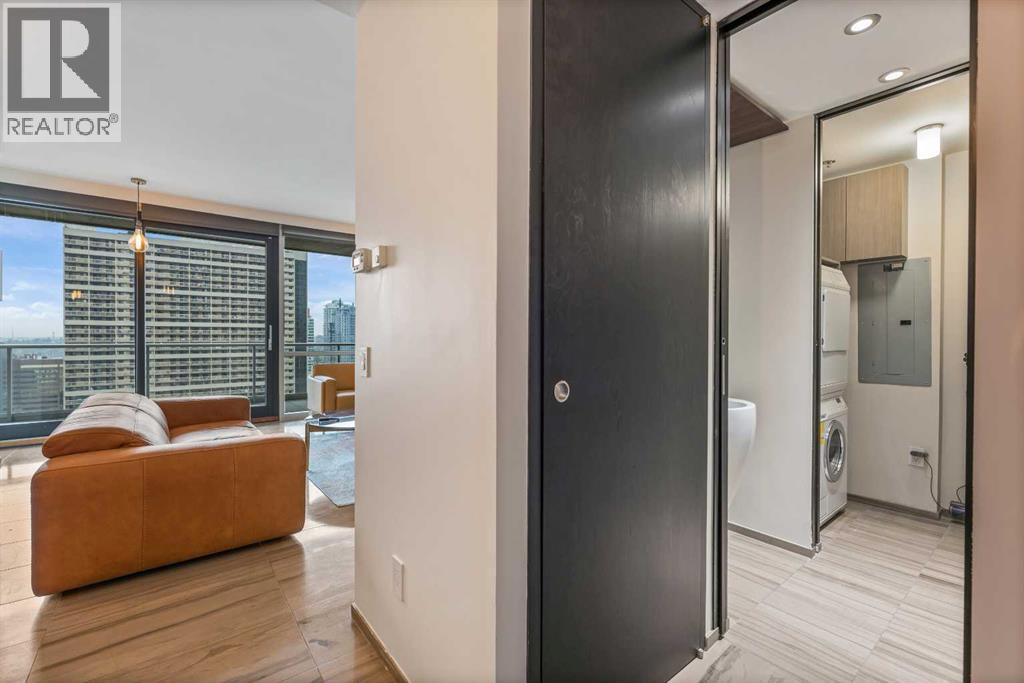 Welcome to upscale downtown living at Le Germain Hotel Calgary. Located in one of the city’s most sought-after buildings, this executive suite offers over 900 sq ft of well-designed living space, ideal for working professionals or couples looking for comfort and convenience in the heart of the city. The spacious bedroom features a walk-in closet with ample storage and is connected to a five-piece ensuite complete with a soaker tub, separate shower, and dual vanity.The open kitchen is finished with white quartz countertops and includes built-in appliances such as a gas cooktop, wall oven, microwave, and wine fridge. The living room is bright and inviting, with floor-to-ceiling south-facing windows that bring in plenty of natural light throughout the day. Step out onto the balcony and enjoy a unique downtown view, including a direct sightline to one of Calgary’s iconic buildings.A convenient two-piece bathroom is located off the foyer for guests. The building itself offers modern finishes and thoughtful design throughout. This unit also includes two underground side-by-side parking stalls and a secure storage locker.Residents enjoy access to concierge services, a car and pet wash station, and a well-equipped fitness facility, along with optional access to adjacent hotel amenities including housekeeping, spa services, and catering. All of this is set within walking distance to restaurants, shopping, and Calgary CTrain access, making it an excellent opportunity for downtown living. (id:55577)