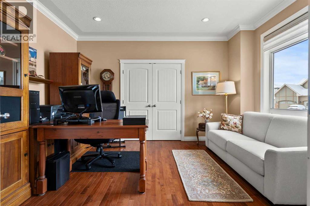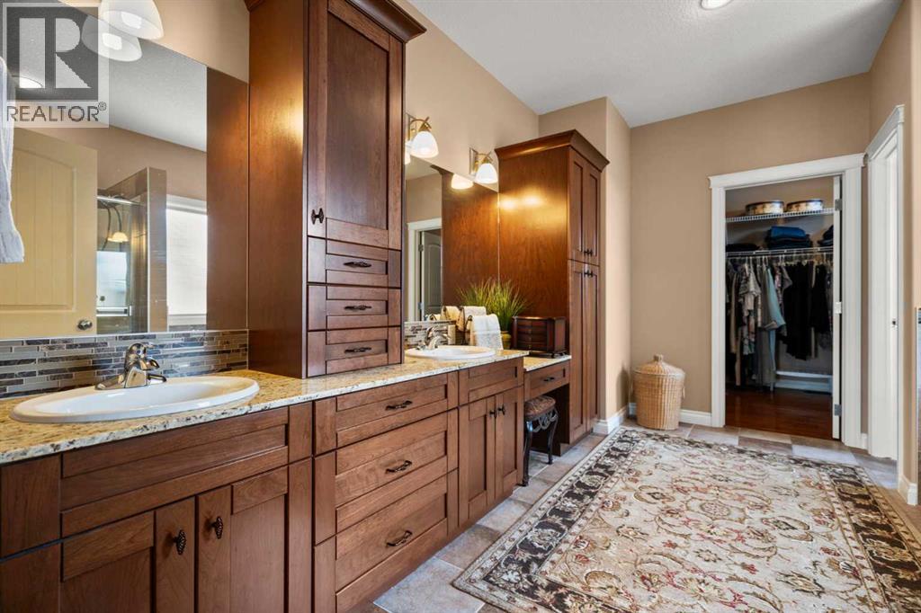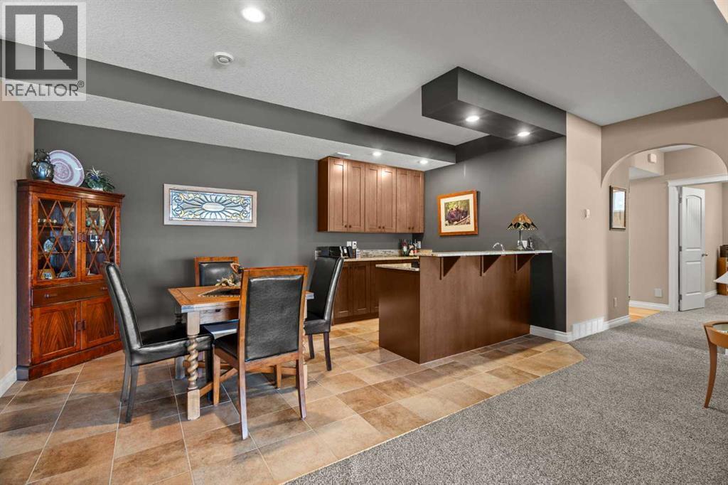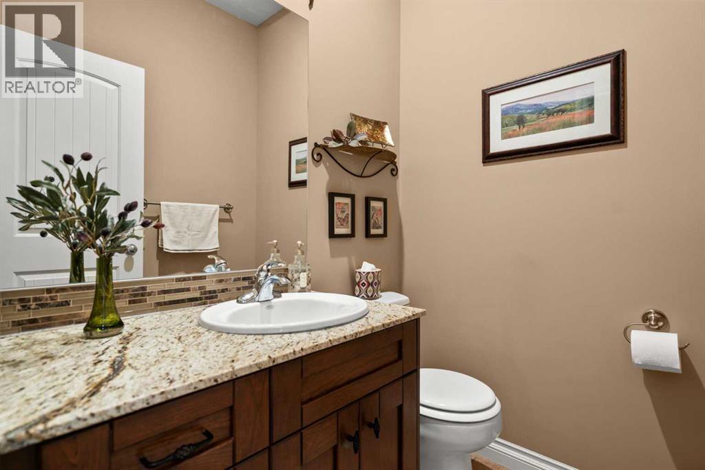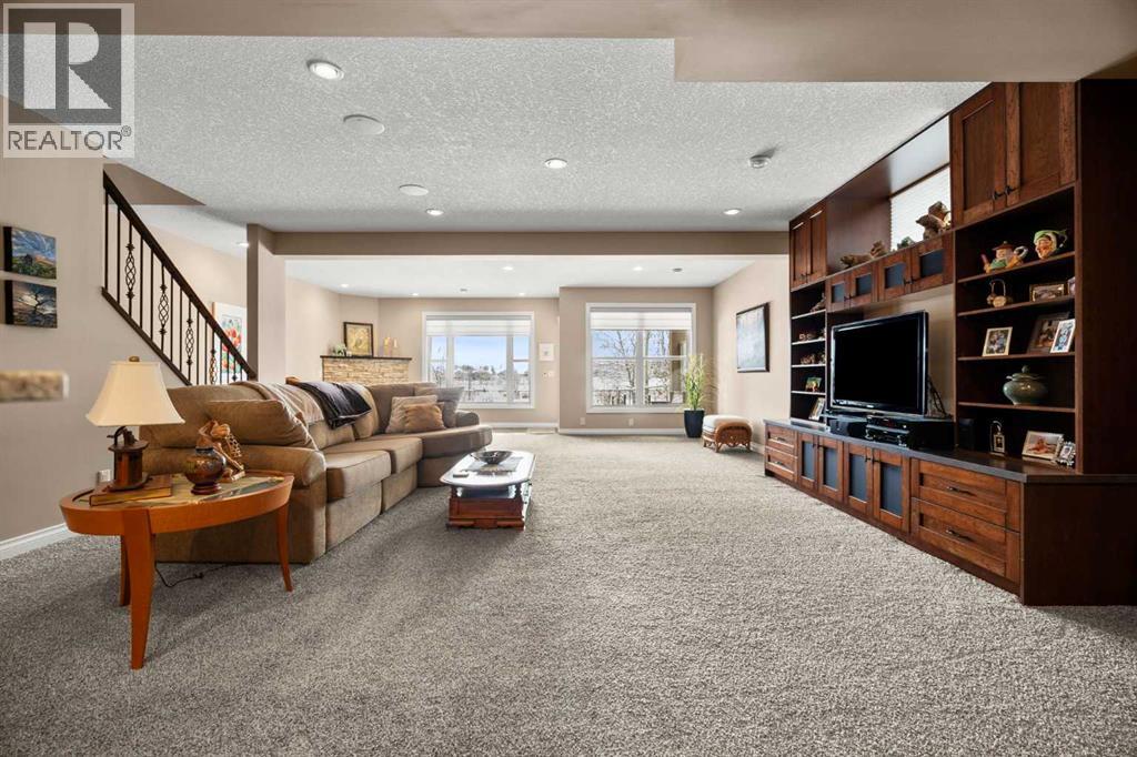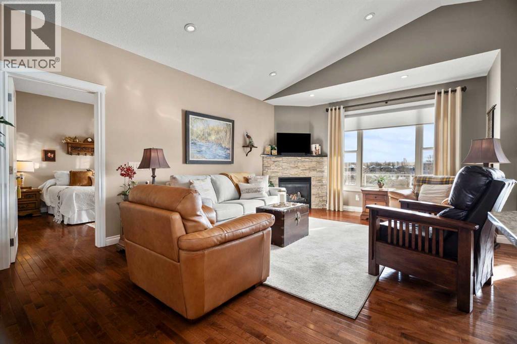 Luxurious small-town living! Ideally located where the prairies meet the mountains in High River, this stunning executive walkout bungalow backs directly onto Highwood Lake — a beautiful, naturalized setting with pathways & expansive green space. This exceptional lot was specifically chosen by custom home builder Allan Campbell for his personal residence. Plans changed, & the current owners have been the only ones to call this incredible property home. It’s easy to see why this location was selected, offering a serene & peaceful environment with convenient access to shops, High River’s charming downtown, amenities, entertainment, restaurants, & recreation. Enjoy the nearby Spray Park, George Lane Park & Highwood Golf Course. South Calgary is 30 mins & Okotoks (Costco) a quick 20 min drive. Situated on a massive reverse pie lot, this property offers stunning outdoor spaces & abundant parking including an oversized 862 sqft insulated garage with walk-up basement access, gas rough-in for a heater & plenty of room for tools & toys. The driveway holds 3+ vehicles, while the side RV driveway allows for winter storage with 130-amp power & roughed-in dumping station. The entire lot is meticulously landscaped with mature trees, perennials, irrigation system, solar water fountain, & a brand-new west-side fence — truly a gardener’s dream. Enjoy two exceptional outdoor living spaces: a lower-level patio with privacy screens & hot tub rough-in, & a full-width covered upper balcony with BBQ gas hookup, accessible from both the dining room & the primary bedroom. Both spaces are perfect for taking in the views & watching the ducks on the pond. Inside, the home features 9’ & vaulted ceilings on the main level, 9’ basement ceilings, granite counters throughout, in-floor heating in the primary bathroom & basement, built-in interior/exterior speakers, power shades, soft-close hardware, & endless storage throughout. Flooded with natural light, the traditional layout is both functional & welcoming for a variety of lifestyles. The main floor offers a beautiful primary suite with walk-in closet & 5-piece ensuite, an ideal laundry/mudroom, a 2nd bedroom (also perfect as a den or office), & a convenient half bath. The kitchen is outstanding! It features a large island, oversized cabinetry, updated vinyl flooring, & a stainless appliance package including a newer Frigidaire induction stove & refrigerator. The walkout level is designed for entertaining, showcasing a massive recreation room, built-in media center, wet bar, games area, two large bedrooms, & a full bathroom. RECENT UPGRADES - Central A/C, R-50 attic insulation over both the house & garage, a composite front deck, healthy climate furnace filter, updated humidifier, fibre optic cable, Larson storm door, new hot water tank (2025), lighting, & more! Ask your Realtor for a complete list of upgrades & features. Do not miss this rare opportunity to own a serene, scenic, & turn-key property in one of High River’s most desirable areas. (id:55577)