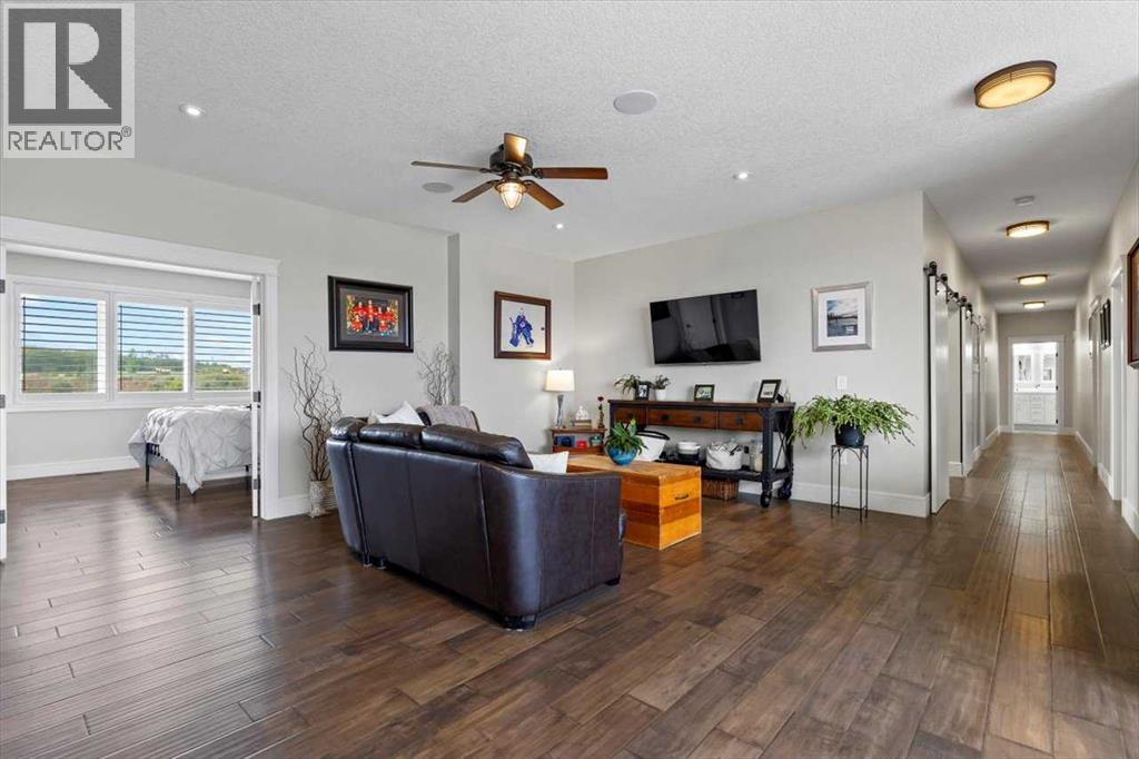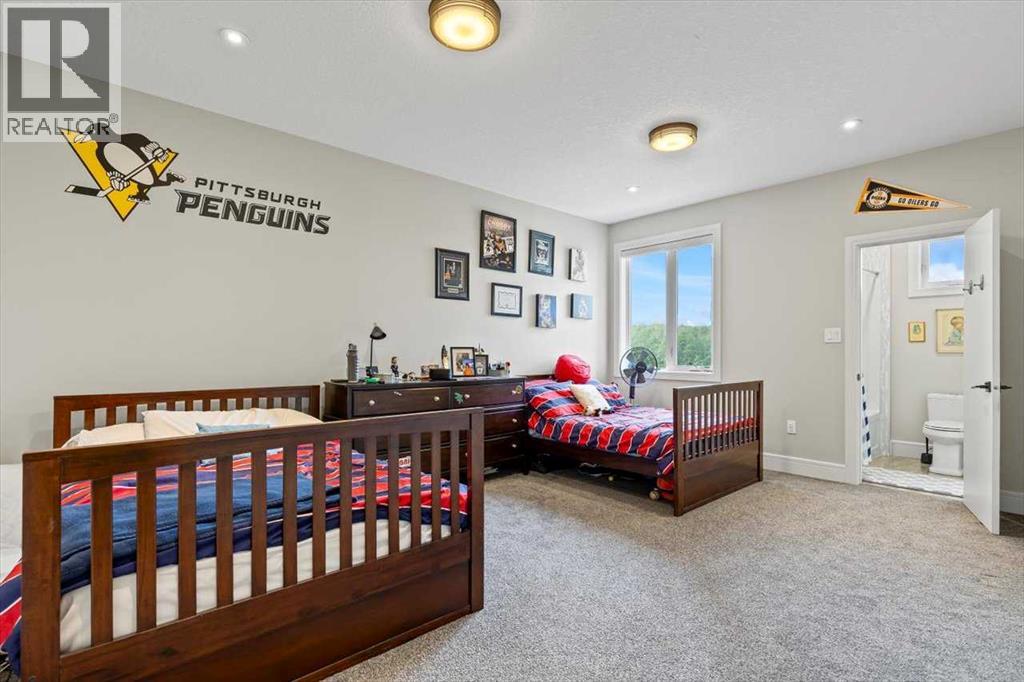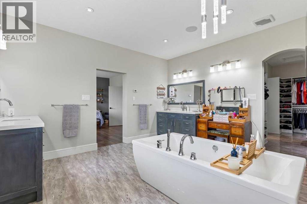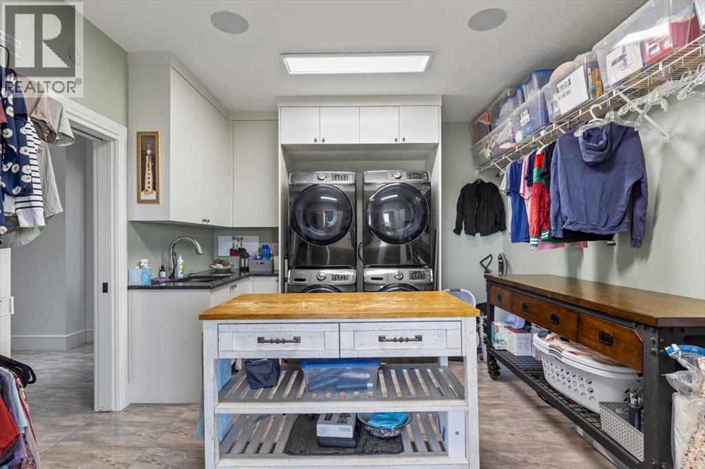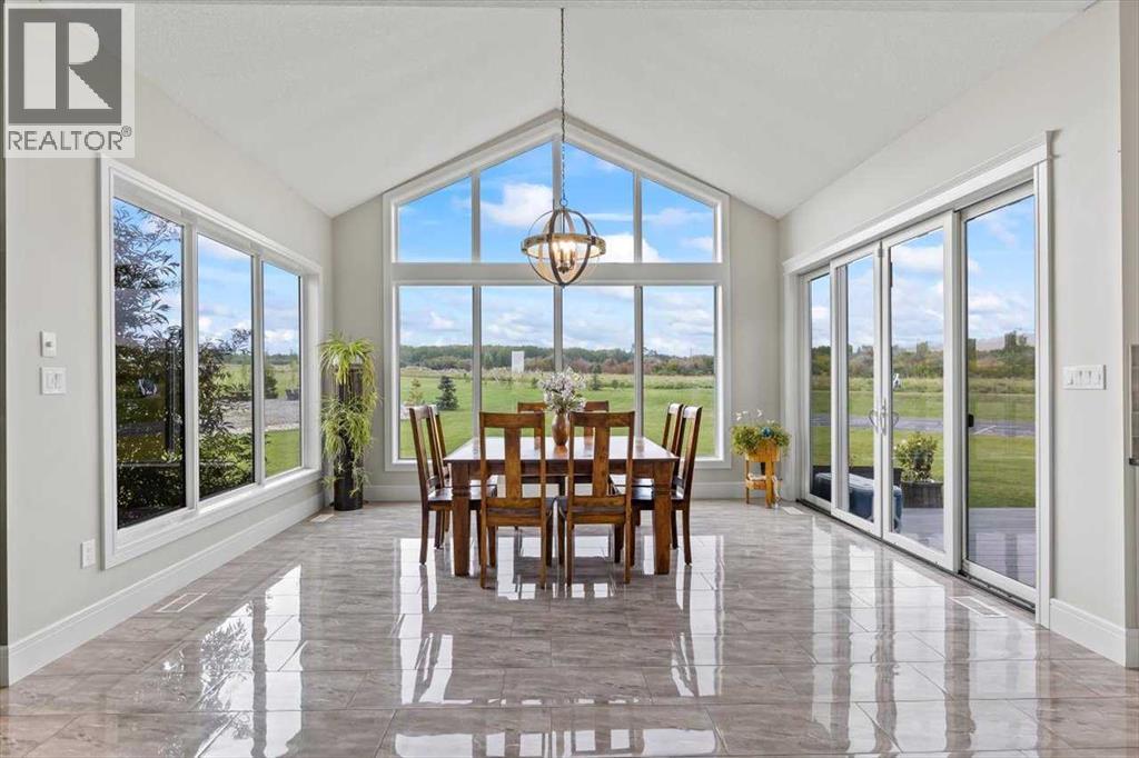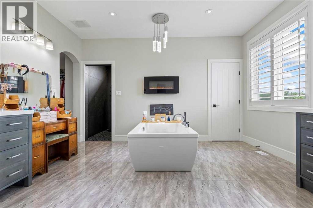 Welcome to an extraordinary CUSTOM-BUILT estate where functional luxury and privacy meet in perfect harmony. Set on 3.12 acres at the end of a quiet cul-de-sac with no neighbours behind, this residence offers more than 7,000 sqft of impeccably designed living space across three levels and a seamless balance of serene country living with city convenience. As you step inside the foyer, the 20-foot ceilings might be the last thing you notice as the adjacent awe-inspiring floating Alderwood staircase immediately grabs your attention and sets a tone of refined craftsmanship. While still standing in the foyer, the open concept design allows you to look past the raised dining room with coffered ceiling, double-sided stone fireplace and living room into the nook with its own 14-foot vaulted ceiling and a panoramic view of the backyard. The gourmet kitchen is a chef’s dream that features floor-to-ceiling custom cabinetry, double 8-foot Knotty Alder Islands, Jenn-Air Professional 36” Dual Fuel 6-Burner Range & Jenn-Air Professional Convection Wall Oven, 40” Native Trails Copper Farmhouse sink, and the striking combination of quartz and leathered granite countertops provides seemingly endless counter space. The main floor also includes a private office ideal for working from home, along with two mudrooms that provide entrance into the home from both heated garages. This magnificent home includes 8 BEDROOMS (each with its walk-in closet) and 7.5 BATHS (in total) with a fully developed basement. Upstairs, you'll find six bedrooms, including the luxurious primary retreat with an oversized walk-in closet and a beautifully appointed ensuite, along with five bedrooms. There is room for extended family or multi-generational living. The fully finished basement boasts a massive recreation room/games room, two spacious bedrooms and storage. Comfort and efficiency are paramount with in-floor radiant heating, built-in multi-zone sound system and instant hot water throughout the house. The home comes equipped with water treatment, a dedicated sports room, ample storage and even three washers and three dryers to keep pace with an active lifestyle. Enjoy outdoor living at its finest with a large front veranda, a private gazebo surrounded by maturing trees, a firepit / BBQ area, and stunning views of the Calgary Skyline. There is room for your RV, complete with full RV hookups, along with ample parking spaces for more cars than you can imagine. The property is just outside of Okotoks corporate limits (500m), offering you the choice of public and Catholic schools within 5 minutes or private schools less than 10 minutes away from the house. This premium property delivers unrivalled space, privacy and craftsmanship making it a rare offering, add in its ideal location, it’s a one of a kind offering on the market today! (id:55577)