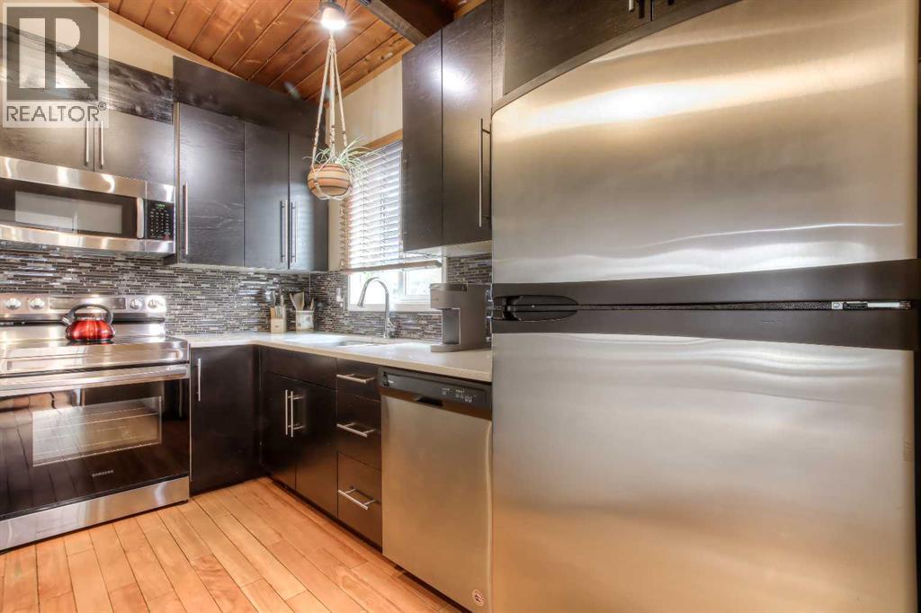 Welcome to this beautifully RENOVATED 2-bedroom, 2 Bathroom, 2 Parking space bi-level located in the highly sought-after community of Oakridge! From the moment you step inside you will feel the cozy mountain feel! You’ll be impressed by the stunning vaulted open-beam cedar ceilings that add warmth, character, and an airy feel to the bright open-concept living space. The kitchen is designed to impress, featuring quartz countertops, modern cabinetry, Stainless steel appliances, and stylish finishes, perfect for both everyday living and entertaining. The spacious living room is highlighted by a cozy wood-burning fireplace and large windows throughout, allowing natural light to pour in, Also included are custom blinds. Both bathrooms have also been renovated with quartz countertops and contemporary fixtures, while the home features hardwood and carpet throughout. The bedrooms also offer large windows, creating bright and comfortable retreats. Also boasting a SECOND FULL BATHROOM. The home also includes a newer Furnace and water heater. Step outside to enjoy a private deck and a private fenced yard, ideal for summer BBQs, relaxing evenings, or entertaining guests. The property also includes a convenient parking stall and street parking. Located in an excellent family-friendly area, this home is close to top-rated schools, parks, shopping, and everyday amenities, with quick access to major roads for an easy commute. Stylish, updated, and move-in ready — this is a fantastic opportunity to own in one of Calgary’s most established communities. Call and book a showing today! (id:55577)