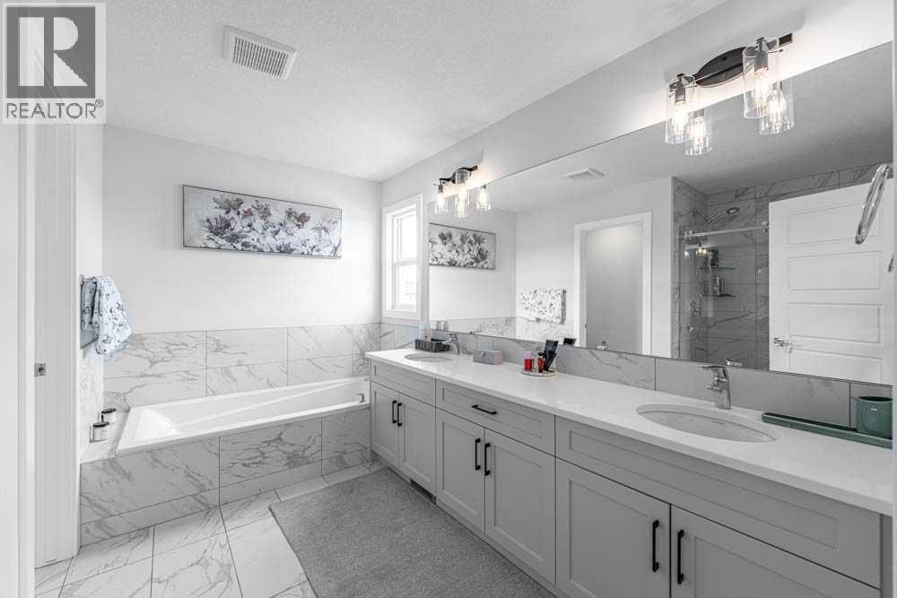 LIMITED-TIME BUYER BONUS! Seller is offering a $5,000 credit on closing. Use it toward your legal fees, moving costs, or upgrades. That’s extra cash in your pocket the day you move in! Why wait months for a builder when you can move straight into this already-built, fully finished home? No delays, no extra costs for landscaping, fencing, or appliances. Saving you thousands compared to new construction. This 4-bed, 2.5-bath Home impresses with 10’ ceilings on the main floor, sleek quartz counters, stainless steel appliances, and durable vinyl plank flooring. Upstairs, the spa-inspired primary suite features dual vanities, a soaker tub, and a glass walk-in shower. The basement has finished stairs, ready for future development. Outside, enjoy your west-facing backyard with paved lane access. Plus, this growing community is set to welcome a brand-new sports Fieldhouse, adding even more lifestyle and recreational value just steps from your door. With the feel of brand-new, the convenience of move-in today, and a $5,000 buyer credit, this is an opportunity you don’t want to miss! (id:55577)