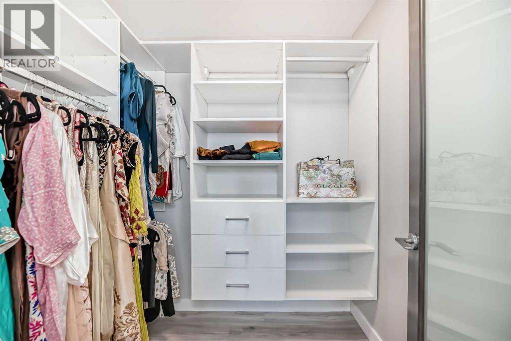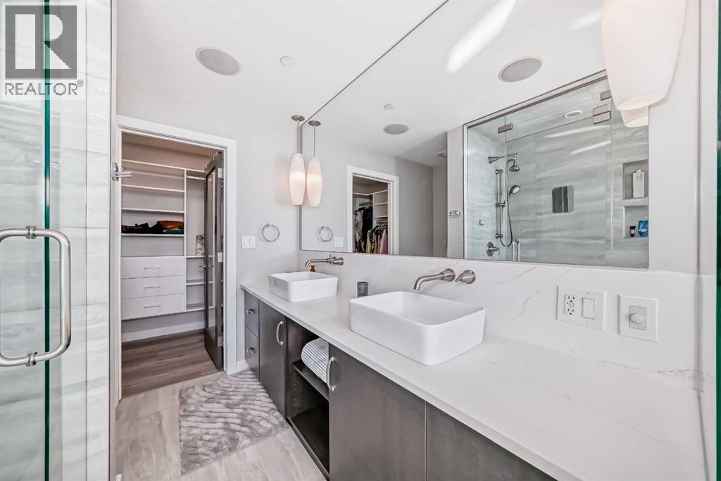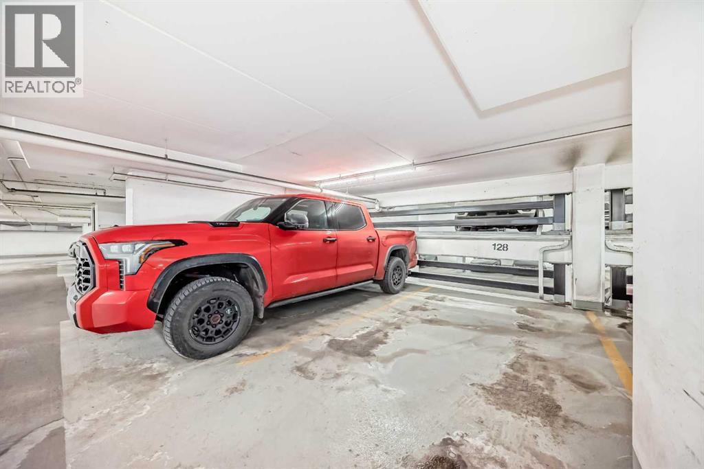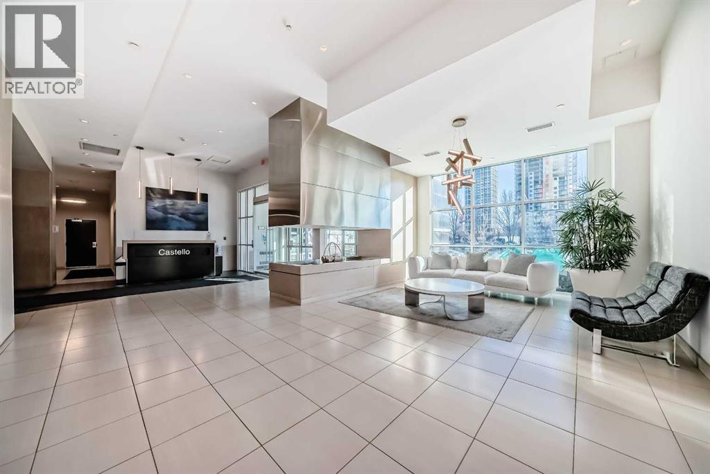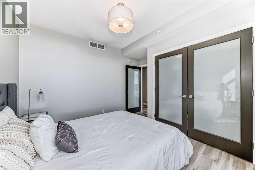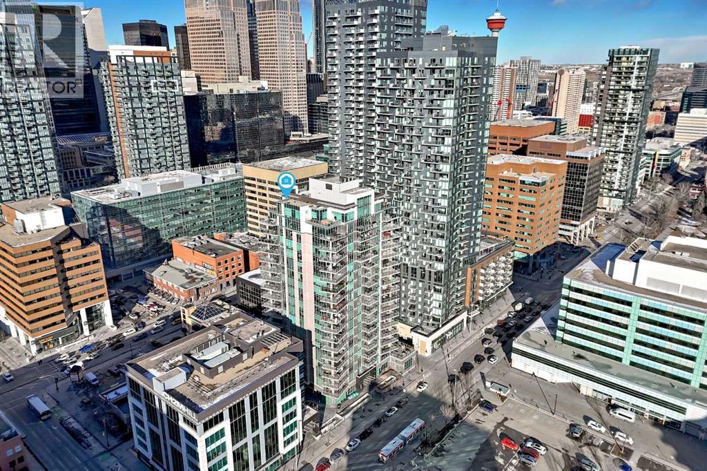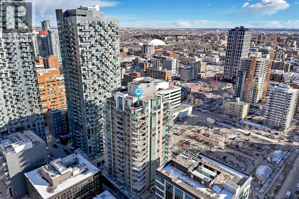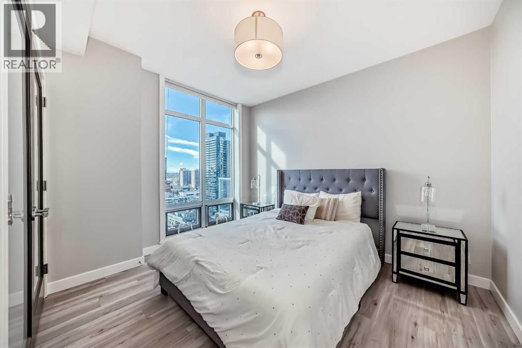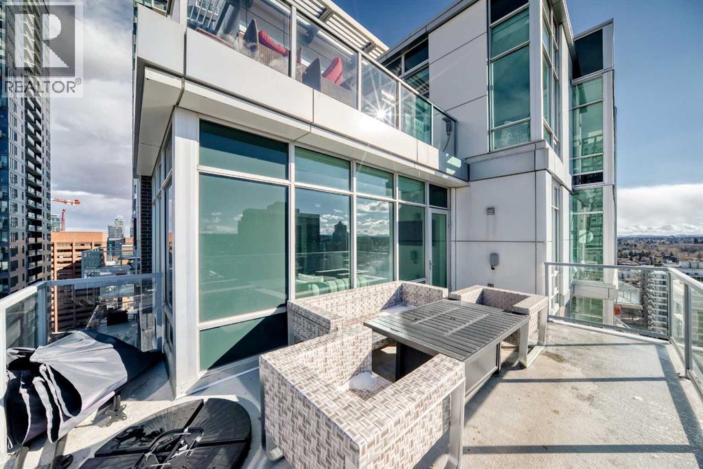 Sub Penthouse!! Experience elevated urban living in this stunning executive condo, featuring unobstructed panoramic city and mountain views. Flooded with natural light by day and illuminated by the glow of city lights at night, this spacious and immaculate suite offers an open floor plan with 9-ft ceilings, floor-to-ceiling windows, modern floors, and solid concrete construction.The generous kitchen is designed for both everyday living and entertaining, complete with extensive cabinetry, stainless steel appliances, quartz countertops, and a built-in wine cooler. The bright living area is surrounded by glass and seamlessly extends to an impressive 190 sq. ft. balcony with sweeping city views, creating the perfect setting for entertaining or relaxing while enjoying spectacular sunsets and the vibrant downtown skyline.The primary retreat features a spa-inspired ensuite with quartz counters, double vanity, large glass-enclosed steam shower, and walk-in closet. A spacious second bedroom, full bath, and convenient laundry complete the interior.Additional highlights include central air conditioning, titled storage locker, and 2 titled parking stalls. Ideally located in the heart of Calgary’s vibrant urban core, this exceptional residence offers the perfect blend of luxury, comfort, and lifestyle. (id:55577)