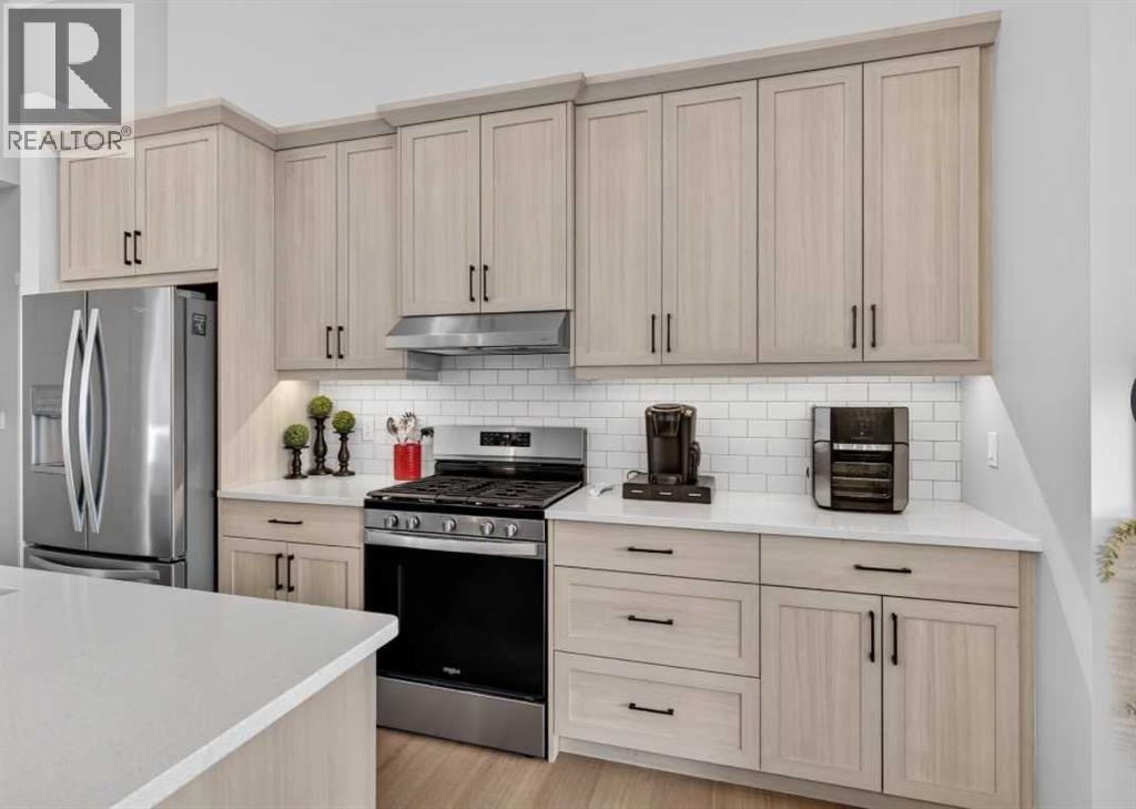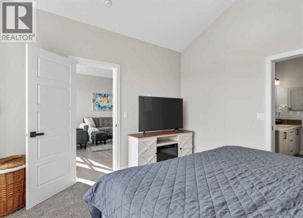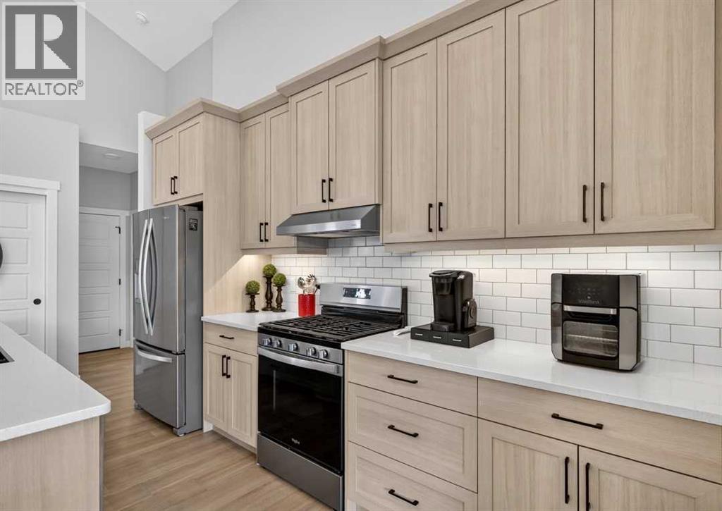OPEN HOUSE Saturday Feb 14th 1-4pm ~Your NEW HOME awaits.... Stunning 2024 Trico Homes Wynwood 28 Vaulted Ceiling Bungalow with finished Walkout Basement Development by Basement Builders in Scenic Precedence area. This beautifully designed bungalow combines comfort, style, and breathtaking views in one exceptional package. As you step through the front door, you are WELCOMED into the heart of the HOME greeted by soaring VAULTED CEILINGS and an open, light-filled floor plan. The kitchen is a delight to cook in with a large island, gas range, and tall cabinetry with quartz countertops, and pantry. Continuing on the main level is the dining area, and living room with electric fireplace and flatscreen TV making this the perfect space for both everyday living and entertaining. Finishing off this level is the Vaulted Primary Bedroom with 5 piece ensuite with SPECTACULAR walk in shower, walk in closet, second bedroom/office, main bathroom, and laundry room. Another added bonus off the living room is the 10 by 14 deck with gas BBQ hook-up which overlooks the landscaped backyard and North East views of the Cochrane Hills, PLUS a double attached garage with high ceilings.....add more storage. Head downstairs to the beautifully fully finished walkout basement offering even more living space that has been thoughtfully designed for relaxation, entertainment or a man cave. A massive family room centres around a striking floor-to-ceiling stone gas fireplace with mantle, and 75 inch big screen TV with SURROUND SOUND. There are so many added BONUSES including a large BAR area making this level perfect for hosting gatherings. Finishing off the basement you will find two additional bedrooms and 4 piece bathroom plus utility room. The walkout door leads to a covered patio with beautifully landscaped yard, extending the living space outdoors, plus electric hook up for a future hot tub area. This HOME BLENDS a thoughtful layout with high-end finishes and stunning surroundings, making thi s bungalow the best of both worlds! A retreat like setting with easy access to Cochrane’s amenities, schools, and scenic trails. Whether you are entertaining friends or enjoying quiet evenings on the deck, this home truly has it all. DO NOT WAIT... make this HOME yours TODAY! (id:55577)