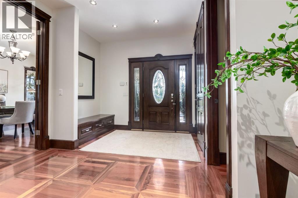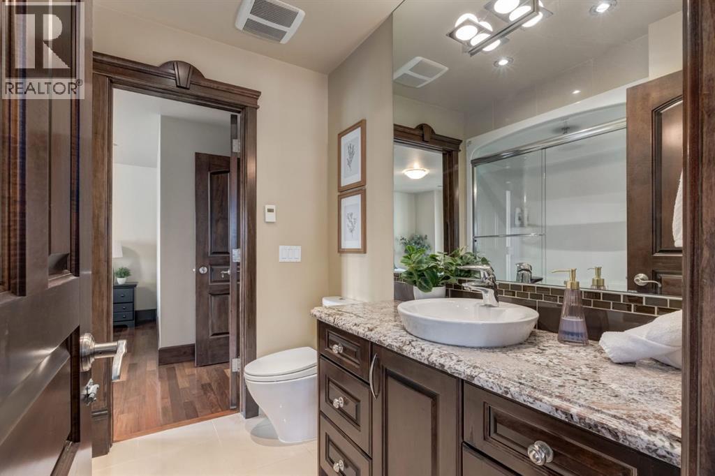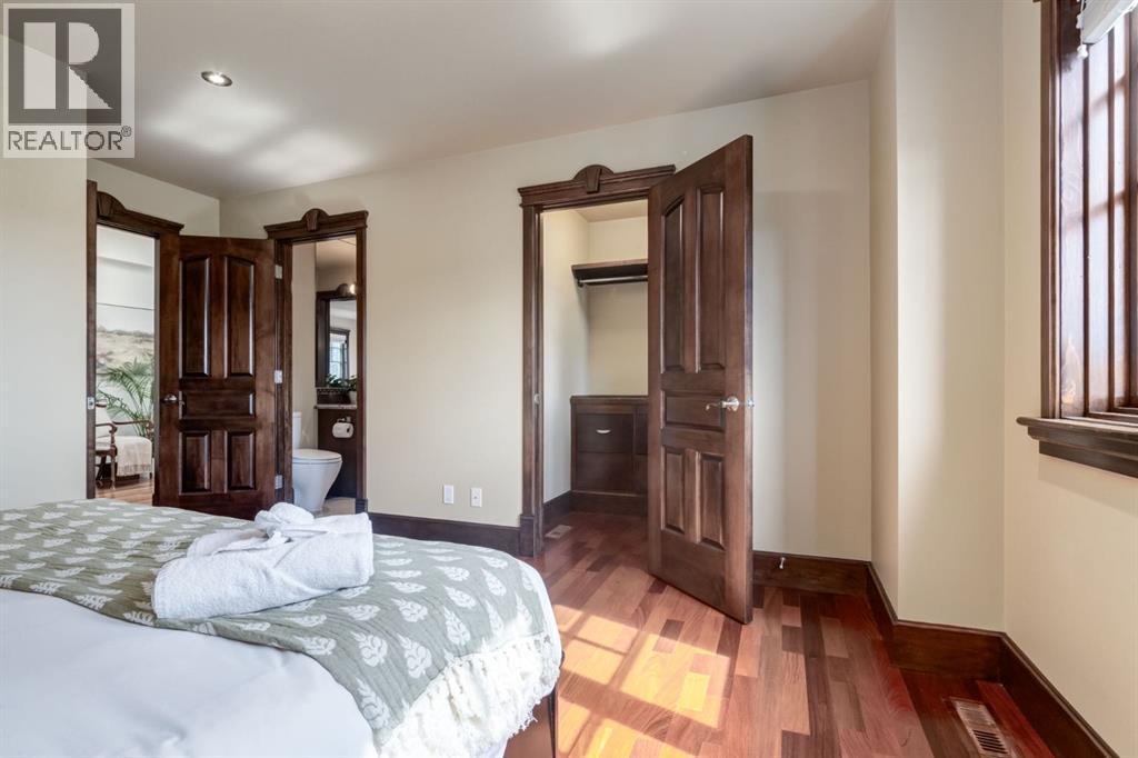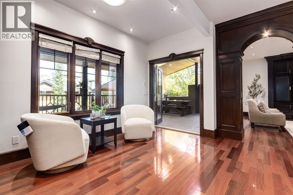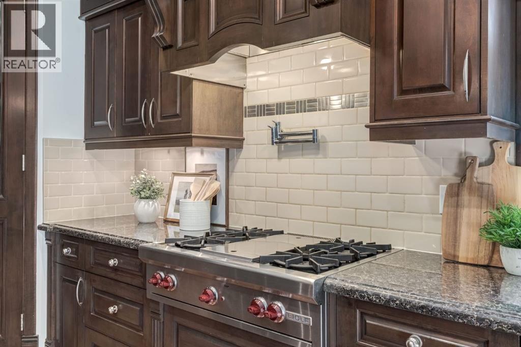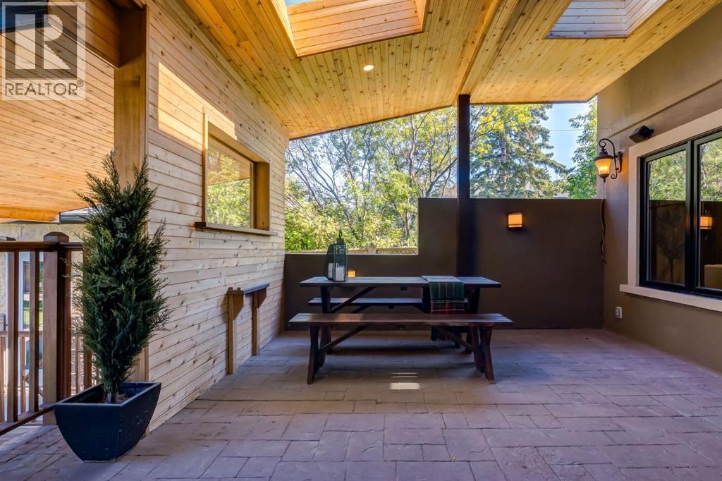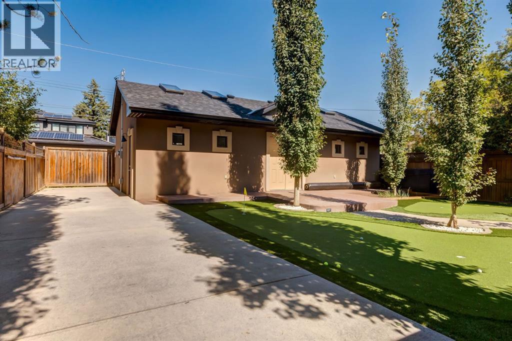 This extraordinary custom estate offers over 5,200 sq. ft. of total living space, situated on a massive 179' deep lot, plus more than 1,100 sq. ft. of covered outdoor areas, all with sweeping views of the Bow River and downtown skyline. From the foyer, the craftsmanship is immediately evident with over 8,000 board feet of maple millwork, solid maple doors, Brazilian walnut floors, and exotic hardwoods such as tiger wood, bird’s-eye maple, ebony, kaiju, walnut, and cherry, all installed by master artisans. The main floor offers a front-facing primary bedroom with a private ensuite with jetted shower and tub, and in-floor heat. A formal dining space or office, and a showpiece kitchen appointed with a Wolf gas range, Sub-Zero fridge, Bosch dishwasher, walk-in pantry, curved cabinetry, beveled granite counters, and a custom removable island table. The adjoining living room is anchored by a fireplace and opens seamlessly to expansive covered decks with cedar ceilings and stamped concrete, creating year-round indoor-outdoor living. Upstairs, four bedrooms include two full primary suites with fireplaces and spa-inspired ensuites, while the main retreat enjoys a sitting area, walk-in closet, heated floors, jetted tub, and steam shower. Another primary bedroom with an ensuite, two additional beds with a jack-and-jill bath, one with a built-in fireplace, a wet bar, which leads out to the balcony with skyline views, and a laundry room complete the second level. The fully developed walk-out/walk-up basement offers a recreation room, kitchenette, two more bedrooms, and two bathrooms, all warmed by in-floor heating with direct access to covered patios. Outside, six distinct decks and patios surround the real-stone exterior, complemented by a finished four-car garage with skylights, a 66’ RV pad, stamped-concrete driveway, and rear alley access with space for lots of vehicles. Recent upgrades include a new roof, downspouts, custom putting green landscaping, and central A/C (2025), while a pre-poured foundation provides a ready-to-build addition (with city of Calgary Permit Approval). Surrounded by multi-million-dollar homes and set directly across from downtown Calgary, this rare riverfront property combines artisanal detail, scale, and location in a way that defines luxury living. Nestled just steps away from parks, trendy restaurants, and bars, this residence provides a serene escape in the vibrant Kensington district. Its proximity to the Bow River, downtown, the University of Calgary, SAIT, and Foothills Hospital makes it ideal. With easy access to Memorial Drive and Crowchild Trail, this is your opportunity to call this magnificent property your own. Don't hesitate to call today! (id:55577)