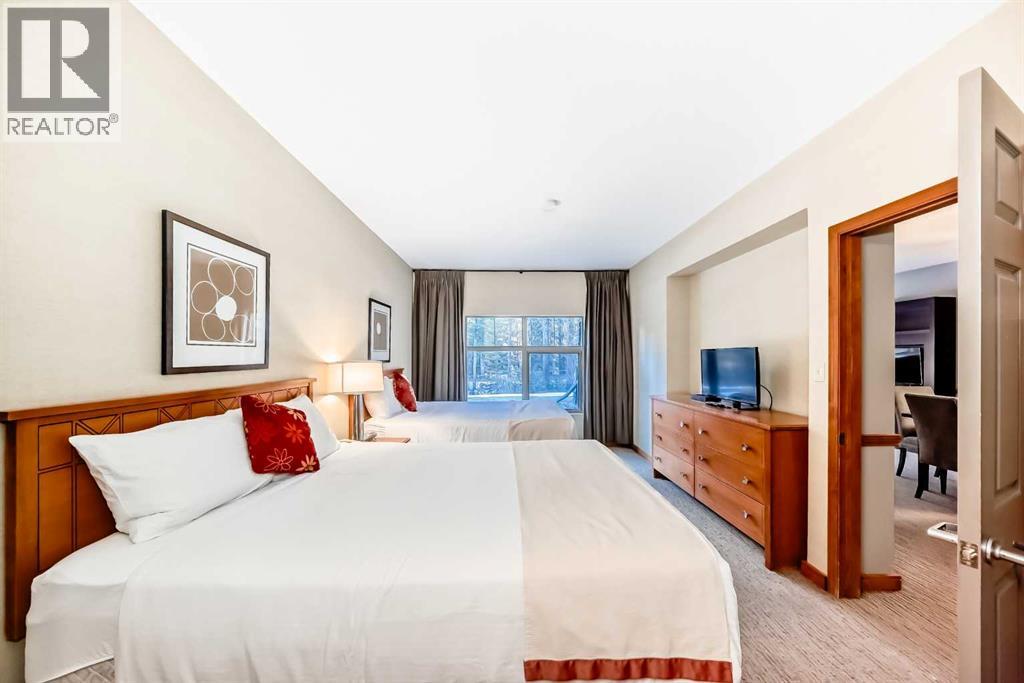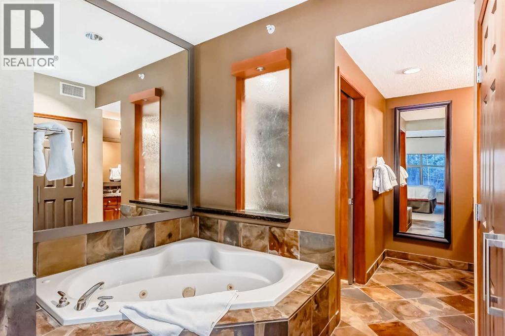 Welcome to 188–91B Three Sisters Drive, a rare opportunity to own a 2-bedroom, 2-bath Visitor Use condo in one of Canmore’s most peaceful and picturesque settings. Perched at the top of Three Sisters Drive, this home offers a true mountain retreat—surrounded by forest, mountain views, and walking trails—well removed from the high-traffic, high-density areas typical of many short-term rental properties.This fully furnished condo features a bright, open-concept layout highlighted by a cozy, window-framed gas fireplace, a spacious kitchen and dining area, and a luxurious jetted soaker tub in the primary suite—perfect for unwinding after a day of mountain adventures. Enjoy your morning coffee or an evening glass of wine, breathe in the fresh alpine air, and explore the surrounding trail network right from your doorstep.Residents and guests enjoy excellent on-site amenities, including indoor and outdoor hot tubs, a sauna, a fitness area, and heated underground parking, making this an ideal year-round destination. Owners have the flexibility to enjoy personal recreational use or generate income through the professionally managed rental pool., offering a truly turnkey, hands-free investment.Whether you’re seeking a private mountain getaway for friends and family or an easy-to-manage vacation (id:55577)