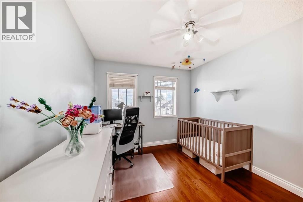 Renovated and well-maintained 4-bed, 4-bath family home on an oversized 43'×120' lot, just a short walk to three nearby schools (Catholic, Public & French Immersion). A dramatic 16-ft vaulted-ceiling living room fills the main floor with natural light, giving the home the open, airy feel of 2508 sqft of living space. The main and upper levels feature continuous hardwood flooring, including custom wood-matched vents for a seamless, high-end finish. Renovations (approx. 10 years) show beautifully and complement the functional family layout.The kitchen and main living spaces walk out directly to the backyard—perfect for easy indoor-outdoor living. Upstairs offers three bedrooms, including a spacious primary suite with two walk in closets. The fully-developed 9-ft basement provides a flexible rec/media area with retro-style gas fire place, an additional bedroom with ensuite 3pc Bathroom, spacious storage room.Major upgrades deliver long-term peace of mind: Class IV hail-resistant rated roof (2025), new triple-pane multi-coated upper windows (Mar 2026), Hot Water Tank (2020), new furnace motor (2023), high-end garage door opener with backup power (2025), and professionally painted exterior & deck (2026). The home also features central A/C, keeping the house comfortable during hot summer months. The attached double garage is EV-ready with a 30A plug—easy to step up to Level-2 charging.Located on a quiet crescent with quick access to pathways, parks, transit, Stoney, Shaganappi, and 14 St for a fast downtown commute. A rare combination of lot size, ceiling volume, updates, and walkability—move-in ready in one of NW Calgary’s most loved family communities- Won't last long!!. FEB 15 (SUN) 7:00 PM — Seller intends to review offers at this time and reserves the right to accept an earlier offer. (id:55577)