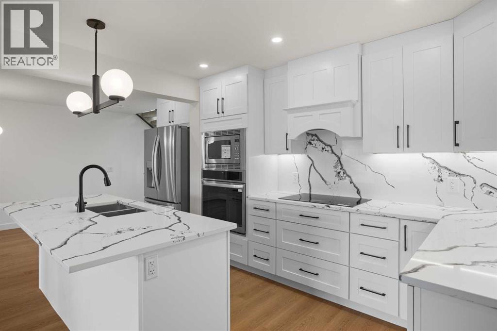 Completely transformed top to bottom, this stunning 4-level split townhouse in sought-after Patterson delivers the rare combination of turn-key luxury and exceptional space. Fully renovated with all-new luxury vinyl plank flooring, windows, designer tile, updated bathrooms, and brand-new stainless steel appliances throughout — simply move in and enjoy.The bright and open main living level features a spacious kitchen with a large island, seamlessly flowing into the dining and living areas — anchored by a sleek electric fireplace and access to a generous private patio. Upstairs, a dedicated bedroom level offers a well-sized bedroom, full 3-piece bath, and its own private balcony.The entire top floor is devoted to an oversized primary suite complete with a walk-in closet with dryer and washer, convenient in-suite laundry, and a spa-inspired 5-piece en-suite with heated floors and a private balcony to start your mornings right.The fully developed basement adds incredible flexibility — a large rec room with a second closet, a bonus room ideal as an office or flex space, plus a full utility/laundry room with second washer and dryer. The oversized attached single garage with direct interior access rounds out this exceptional package.Highlights: Full renovation — floors, windows, tile, countertops, 2 washers & 2 dryers, Heated ensuite floors, New stainless appliances + island, Electric fireplace, Oversized primary suite, Two private balconies + patio, Finished basement rec room, Attached single-car garage, Self Managed Condo Corporation, Low condo fees (id:55577)