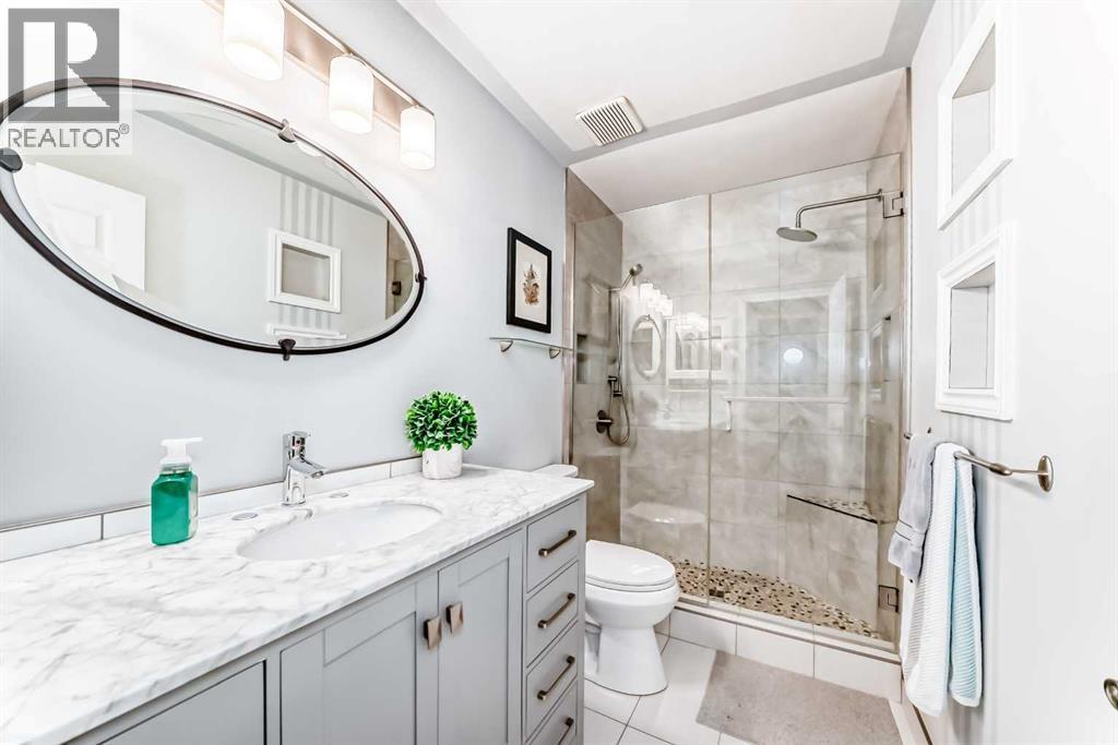 It’s time to BREAK IT TO THE KIDS (and grandkids)--YOU’RE ‘DOWNSIZING!’, BUT… NOT… to some BORING SENIOR HOME (MILES AWAY) with SING-A-LONGS, Parcheesi and Bridge mixture…NO!– YOU’RE TOO YOUNG FOR THAT!-- You’re moving to ‘THE CLASSICS OF LAKE SUNDANCE,’ just down the street, where you can keep your INDEPENDENCE AND YOUR LAKE PRIVILEGES! This BRIGHT UPDATED, 3 Bdrm (2+1), 2 full bath, 1535 ft2 bare land condo has a SUPERIOR, INNER COURTYARD LOCATION–backing SUNNY SOUTH with a 29' (2 tiered) deck!-- Buyers will love the RENOVATED, WHITE ISLAND KITCHEN with ‘Black Forest’ granite countertops, newer stainless appliances (flat stove), European Bar Pulls, ingenious buffet counter, undermount & pendant lighting and extended seating for 4 (perfect for HAPPY HOUR). Vaulted ceilings, soft designer colors and wide plank flooring throughout the main floor. Open Dining/Living Room combinations with Electric Blinds. Spacious primary bedroom has access to private, upper tier sun deck. SPA INSPIRED 3pc has glass shower stall, RAIN shower head w/detachable wand, pebble tile, seating bench & granite countertops. Fully finished basement with vinyl flooring, a cozy gas fireplace, additional living space, and flexibility for guests/home office/media room. 4 pc bath down with SxS laundry area. Put the new E-BIKES (for Fish creek Park) and golf clubs (for Blue Devil) in the OVERSIZED ATTACHED GARAGE with work bench. This home has AIR CONDITIONING! Mature, stable condo board with healthy reserve fund -- Come to LAKE Sundance (AFTER PICKLEBALL) this weekend and visit our Open Houses, April 18th+19th, 2-4PM. (id:55577)