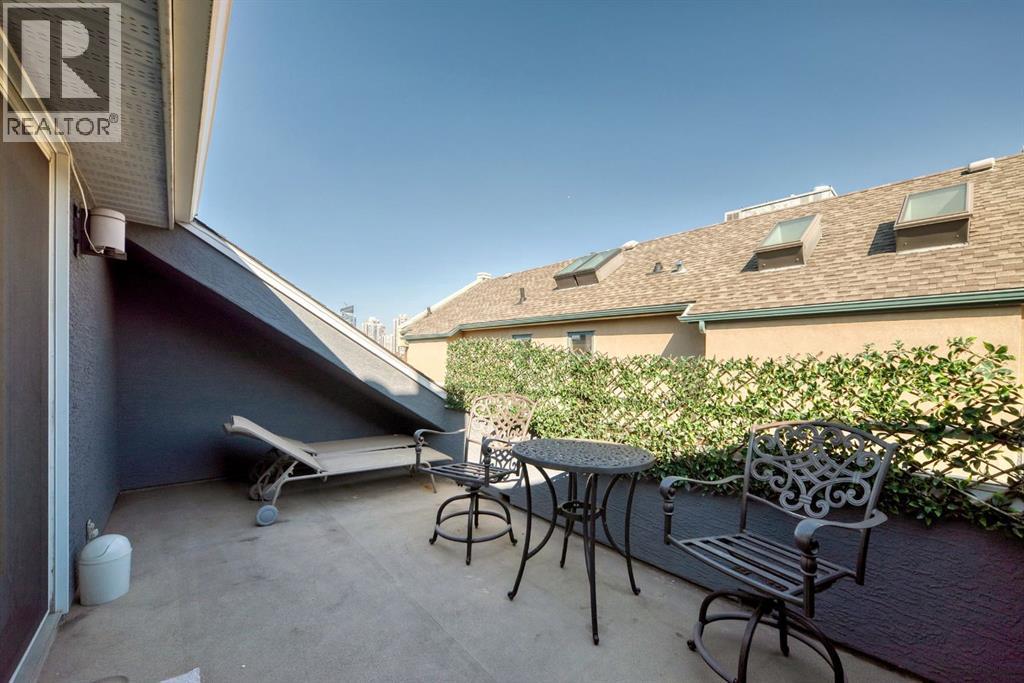 **Open House - Sunday October 19, 3:00 pm - 5:00 pm** Experience executive living at its finest in this beautifully updated townhome located in the heart of Lower Mount Royal. Offering over 2,010 sq ft of sophisticated, air-conditioned space, this home has been freshly renovated with brand new carpet and new paint throughout. The bright, open-concept main floor features large windows and stunning herringbone hardwood floors in the west-facing living room with a cozy gas fireplace. The elegant dining area flows into the modern kitchen, complete with granite countertops, a center island, stainless steel appliances, corner pantry, breakfast bar, and sunny nook. Upstairs, enjoy two spacious primary suites, each with its own jetted tub ensuite. The main suite includes a 5-piece bath and walk-in closet, while the second offers a comfortable 4-piece bath—perfect for guests or extended family. The top level is truly a showstopper—an expansive loft with cathedral ceilings, ideal as a third bedroom, home office, or entertainment space. This level also features your second fireplace and access to a private balcony with sweeping downtown Calgary views—the perfect setting to unwind or entertain. Enjoy two great outdoor spaces: a main floor patio and a loft-level balcony. The lower level offers a refreshed laundry/mudroom with brand new luxury vinyl plank flooring with access to your oversized double garage—plenty of space for storage and two vehicles, plus a wide driveway that accommodates two more. Located just steps from 17th Avenue, this home offers the perfect blend of urban convenience and upscale comfort, surrounded by some of Calgary’s best restaurants, boutiques, and amenities. Walk, bike, or commute easily to the downtown core. This well-managed condo is available for immediate possession. Don’t miss your chance to own in one of Calgary’s most sought-after communities. Book your private tour today and elevate your lifestyle with executive living in Lower Mount Royal! (id:55577)