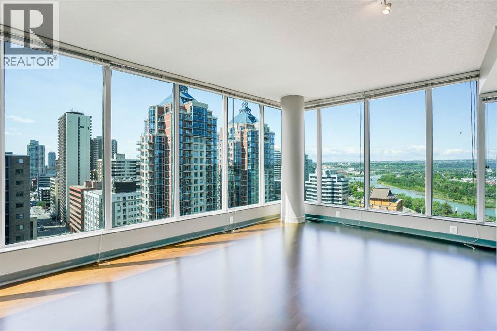 Now at an excellent adjusted-to-market price! _____A RARE OPPORTUNITY_____1,108 SQ.FT. OF LUXURY URBAN LIVING IN THE EXCLUSIVE SOLAIRE_____Welcome home to one of the best units in SOLAIRE._____From this bright spacious SW Corner Unit high up on the 19th floor, enjoy the panoramic vista westward. Soak up the views of the Bow River and the lush communities of NW Calgary, across 46 feet of floor-to-ceiling windows!___Nestled in the west end of downtown Calgary, SOLAIRE is only steps from the iconic Peace Bridge, Bow River, Princes Island, the famed Calgary River Pathway and the beloved Alforno Cafe, Buchanan’s Chop House and the River Cafe. Enjoy the easy access east by foot or via C-train to the major office towers and all the fine dining and shopping in Eau Claire, Downtown Core, Chinatown and East Village. Stroll or bike northwest via 3 bridges across the river to the numerous restaurants and shops in the vibrant and eclectic community of Kensington.___Drive home into your comfortably-wide underground ‘titled’ parking space, pick up your parcel or food delivery from your friendly building concierge and ride up to your 19th floor air-conditioned abode-in-the-sky.___As you enter your unit, take in yet-once-again the stunning panoramic view, set against the spacious open-concept living space. It features high ceiling, engineered hardwood and a chic gas fireplace, offering creative flexibility in furniture placements. The west facing balcony is ideal for morning coffees or enjoying the sunset over the foothills and scenic River. The kitchen is well-equipped with full-height European kitchen cabinets, granite countertop and timeless Bosch stainless-steel appliances. In-unit washer and dryer offers convenience and time-saving ease.___The light-filled south-facing master bedroom comes with a luxurious ensuite, including double vanity, soaker tub and a 10mm frameless glass shower, leading to good sized walk-in closet with closet organizers. The second bedroom with full west facing windows comes with a 3-pc ensuite, with oversized glass shower. Ideal for a home office or guest bedroom setup.___The 3rd floor well-equipped gym is ideal for strength training before your evening run along the Bow River._____Do come and enjoy fine urban living, at 1908 SOLAIRE._____Available for the first time in 8 years. Don’t miss this rare ownership and investment opportunity. (id:55577)