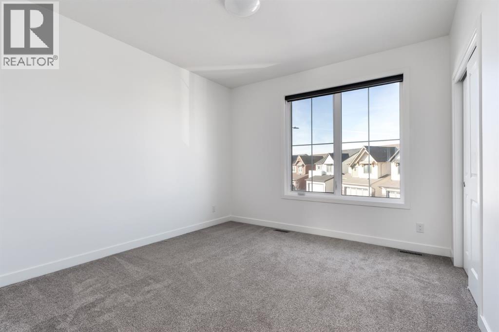 Open House February 15th and 16th from 12pm -2pm. Welcome to Wildflower in Airdrie — a neighborhood where open skies, quiet streets, and thoughtfully designed homes create the perfect backdrop for everyday living.Set on a large pie-shaped lot, this modern farmhouse offers the space and flexibility to grow with you. As you step inside, a generous foyer greets you — bright, open, and practical, with room for busy mornings and welcoming guests with ease. Just off the entrance, a versatile flex room is ready to become your home office, reading lounge, or dedicated workspace for the way you live today.The main floor also features a full bedroom and bathroom, offering exceptional flexibility. Whether it’s for visiting parents, a live-in nanny, older children seeking privacy, or a comfortable guest suite, this space adapts beautifully to a variety of living situations.At the heart of the home, the kitchen is designed to bring people together. A large island anchors the space — perfect for casual breakfasts, entertaining friends, or gathering at the end of the day. The gas stove and statement range hood make cooking both functional and inspiring, while the dining area is surrounded by natural light, creating a warm and inviting setting for everyday meals or special occasions. The living room flows seamlessly alongside, offering a comfortable space to unwind, with access to the patio overlooking the expansive backyard — ideal for summer evenings and outdoor entertaining.Upstairs, the primary retreat provides a peaceful escape, complete with a four-piece ensuite and a spacious walk-in closet. Three additional well-sized bedrooms ensure everyone has their own space, complemented by another full bathroom and a conveniently located upper-level laundry room that simplifies daily routines.The unfinished walkout basement presents incredible future potential. Whether you envision a secondary suite (subject to approval), a home gym, media room, additional bedrooms, or a pla y area, this level offers the opportunity to customize the home to your evolving needs.This is more than just square footage — it’s a home designed for connection, comfort, and the next chapter of your story in Wildflower, named Best New Community in Canada by the Canadian Home Builders’ Association. (id:55577)