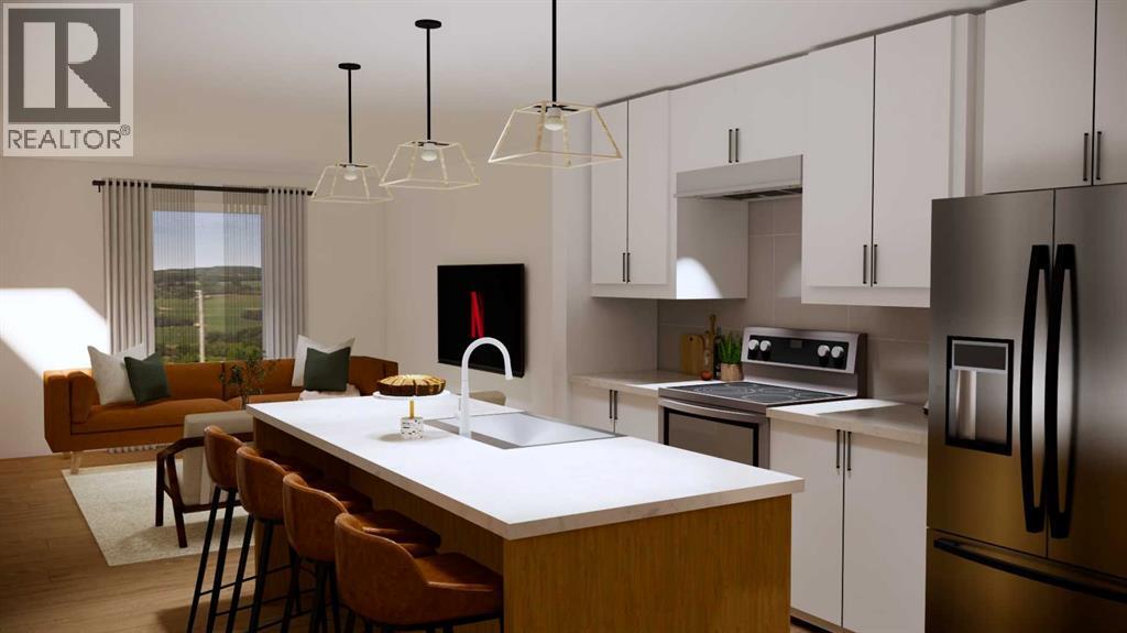 LOOK NO FURTHER! ELEGANCE MEETS AFFORDABILITY! New town homes coming to the vibrant town of Sundre, Alberta. Three storeys of City Feels, with amazing small town vibes. Situated centrally, walk, bike or stroll to wherever you need. Ground floor with garage, flex area, mechanical room and access to your private, fenced backyard. Second level / main area complete with cozy kitchen, great room and dining / nook area. Kitchen island, hardwood throughout, stainless appliance package, plenty of storage, your choice of cabinet package and a two piece bath. Make your selections from designer provided story boards. Retreat to the upper level, third floor, where you will find large primary bedroom, two additional good size bedrooms, five piece bath with two sinks and laundry area. All bedrooms complete with walk in closets and custom mdf closet shelving organizer system. Walk out of the second floor onto the ten foot by seventeen foot large deck area with gas bbq connection and enjoy the view of your fully fenced private backyard. Find your favorite Realtor or contact the builder directly to join other lucky owners of these fantastic condo units priced below $400k in this ultra and up and coming community! Please note that Unit #2 is interior unit. End Unit available starting at $374,800. Two other units currently for sale as well! (id:55577)
