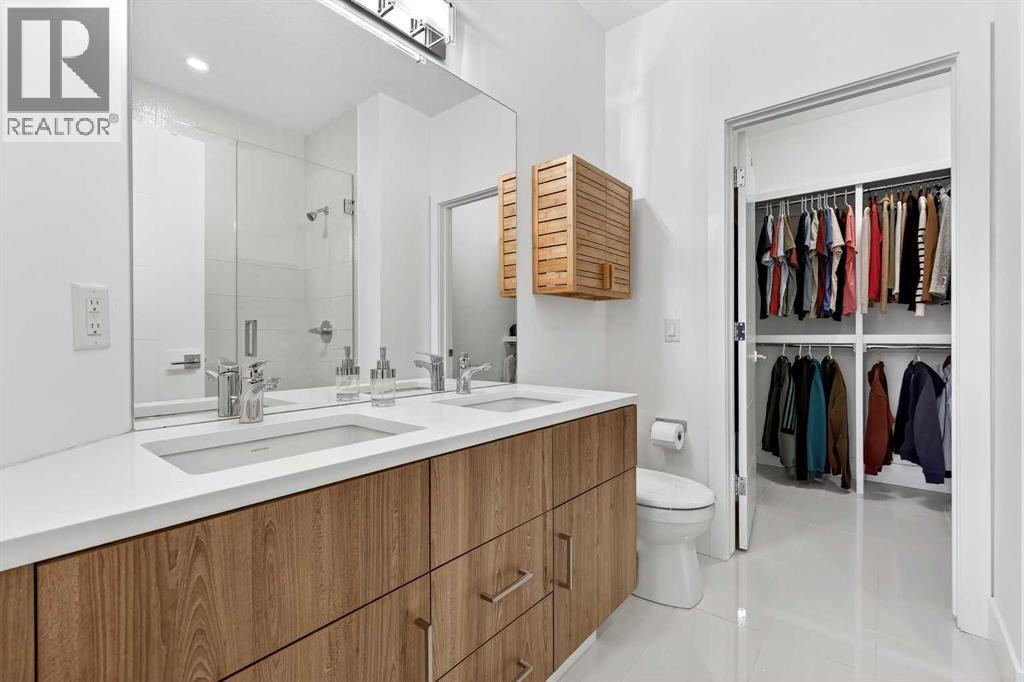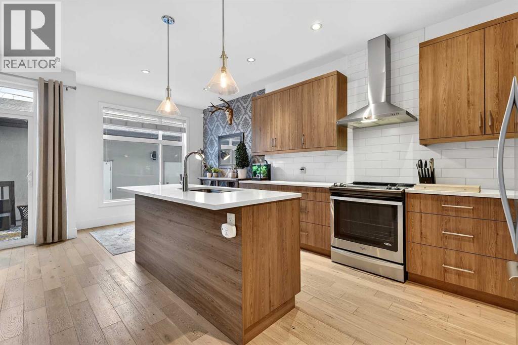 Luxury in the Heart of KillarneyPerfectly positioned on a tree-lined street directly across from the Killarney Aquatics Center and park, this sophisticated rear-unit townhome offers a premium blend of privacy and urban convenience. The main level features soaring 9' ceilings and quality engineered flooring throughout an inviting, open-concept floor plan. The centerpiece kitchen is designed for both style and utility, boasting quartz countertops, a central island, a full appliance package, and ample storage within extended-height cabinetry and a separate pantry. The living area, anchored by a cozy gas fireplace, flows effortlessly into the dining space, creating an ideal layout for daily living and entertaining.The upper level is thoughtfully configured with two primary bedrooms, each offering the convenience of its own private ensuite. The main primary suite includes a walk-in closet and a 4-piece ensuite with dual sinks. Downstairs, the fully developed basement provides valuable additional living space, featuring a large recreation room, a quiet private office, a well-appointed 4-piece bath, and dedicated laundry and storage area. Includes central air conditioning and a water softener system. Outside, the property features a single garage and a private outdoor area perfect for enjoying the vibrant neighborhood atmosphere. This home offers the rare opportunity to live just steps away from Killarney’s local cafés, boutique shops, and premier recreation facilities while maintaining the quiet retreat of a rear-positioned unit. (id:55577)