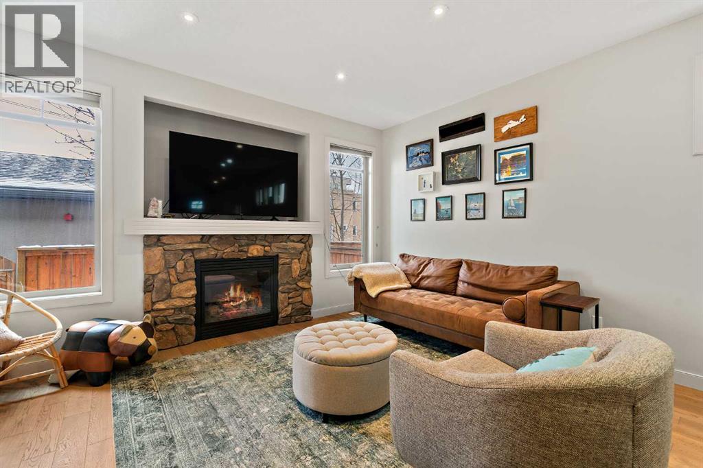 Beautifully maintained and thoughtfully designed, this Parkdale townhouse offers stylish inner-city living just minutes from downtown. The main floor is bright and inviting, featuring large windows, 9’ ceilings, and an open-concept layout that creates an airy yet comfortable atmosphere. The living room centers around a stone-faced gas fireplace that adds warmth and character, while the kitchen is both timeless and functional, appointed with richly stained cabinetry, granite countertops, stainless steel appliances, and ample prep space. Upstairs, two spacious bedroom retreats each feature their own private ensuite, creating an ideal layout for family, roommates, or professionals seeking both privacy and flexibility. A conveniently located upper-floor laundry area adds everyday ease and practicality. The fully finished basement further extends the home’s versatility with a large third bedroom, an additional bathroom and oversized windows that draw natural light into the lower level. The mechanical room, which offers valuable additional storage space, completes the lower level. Outside, a private backyard offers a quiet and inviting space to unwind. Thoughtful updates have been completed over the years, including a new garage door spring in 2022, fresh paint throughout between 2022 and 2026, all new main floor flooring in 2023, a powder room update in 2024, a new furnace motor in 2024, a new hot water tank in 2024, retextured main floor ceilings in 2025, and turf added to the front yard for easy curb appeal. Beautifully cared for and ideally located, this is an exceptional opportunity to own in one of Calgary’s most sought-after inner-city communities, with easy access to the Bow River, nearby walking paths, and cherished local destinations such as The Lazy Loaf & Kettle. **OPEN HOUSE: Saturday, April 11th from 10:00-12:00 and Sunday, April 12th from 12:00 - 2:00.** (id:55577)