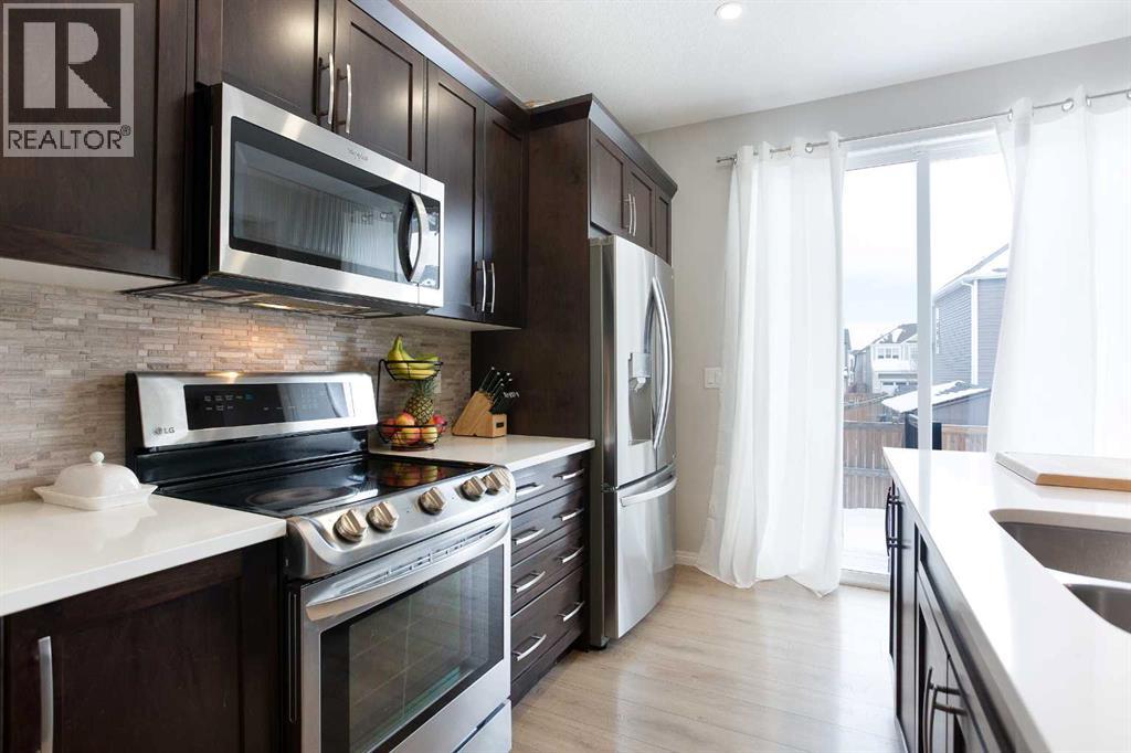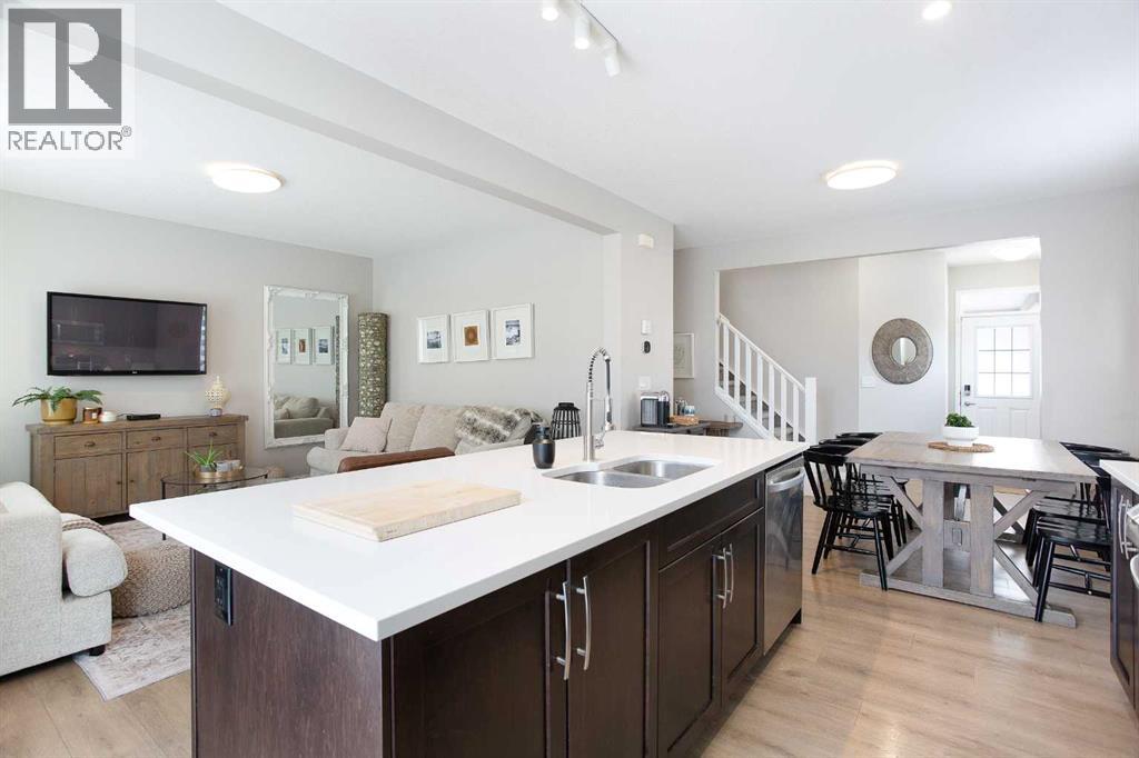 Nestled within the vibrant and highly coveted community of Southwinds, this impeccably maintained contemporary residence offers 1,726 square feet of sophisticated living space. From the moment you cross the threshold, the home exudes an air of refined elegance, characterized by soaring knockdown ceilings and a high-efficiency open-concept layout. Warm, inviting tones harmonize beautifully with durable luxury vinyl plank flooring that stretches across the main level, creating a cohesive and polished aesthetic. Bathed in a radiant glow from expansive windows, the airy living room provides a serene atmosphere for relaxation before transitioning effortlessly into a chef-inspired kitchen. This culinary masterpiece boasts sleek quartz surfaces, a central social island with integrated seating for four, and an abundance of premium cabinetry. Positioned perfectly for hosting, the kitchen flows into a grand dining area suited for both intimate weeknight meals and festive gatherings. Functional excellence is found in the thoughtful details of the main floor, including a streamlined mudroom, a discreet powder room, and a front foyer enhanced by custom built-in storage and dual closets. The upper sanctuary is anchored by a lavish primary suite designed as a private retreat. This spacious chamber features a generous walk-in closet and a spa-like four-piece ensuite, complete with a deep soaker tub and a separate glass-enclosed shower. Two additional well-proportioned bedrooms offer ample closet space and share access to a secondary full bathroom. Enhancing the home’s versatility, a sprawling upper-level family room serves as an ideal secondary lounge or media hub, while the dedicated laundry room adds a layer of modern convenience to the top floor. Beyond the finished levels, the pristine unfinished basement presents a massive blank canvas, offering endless potential for a personalized gym, theater, or guest suite to further expand your total square footage. Outside, the fully fen ced backyard provides a secure and private oasis for children to play or pets to roam. Vehicle storage is effortless thanks to the double front attached garage and a wide driveway for guest parking. Situated mere steps from lush parks, scenic playgrounds, reputable schools, and diverse shopping centers, this property flawlessly fuses architectural foresight with premium finishes. This is an unparalleled opportunity to secure a turnkey lifestyle in a neighborhood that truly has it all – don’t miss out and book your Showing today! (id:55577)