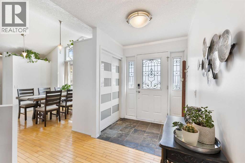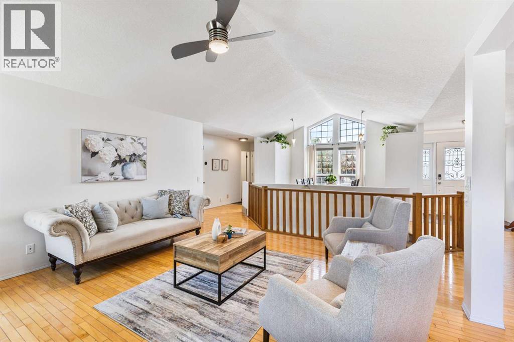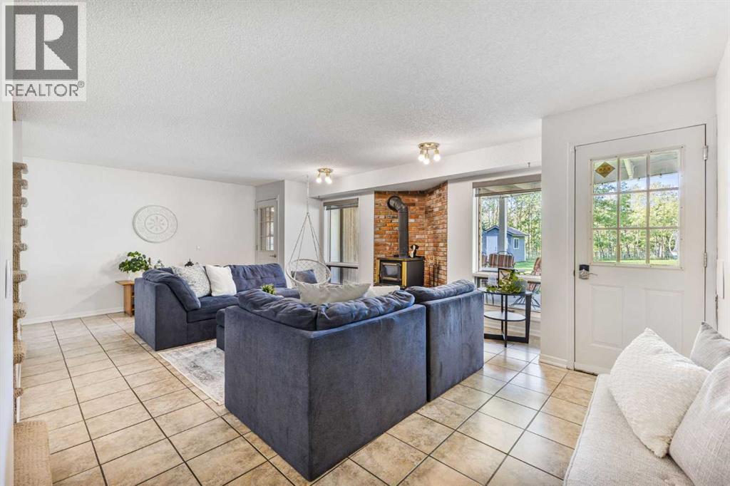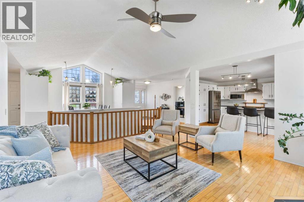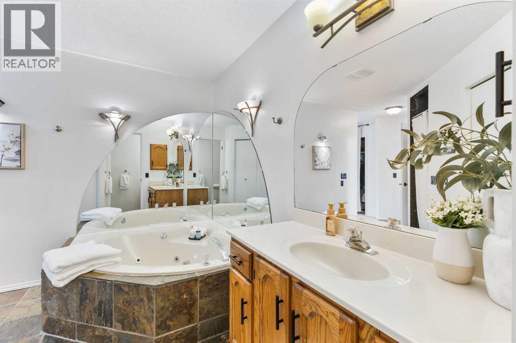 Truly one-of-a-kind, this exceptional walkout bungalow is more than a home—it’s a feeling, a lifestyle, and a rare opportunity in the heart of Cochrane. Perfectly set on an expansive lot, it captures the best of both worlds: the serenity of the river pathway system and Bow River just steps from your backyard, and the energy of historic downtown with its shops, cafés, and restaurants only minutes away. From the moment you arrive, this home welcomes you with undeniable character. An 800-square-foot triple garage and an elegant stamped concrete driveway set the tone, while inside, soaring vaulted ceilings and a dramatic stone wood-burning fireplace create a sense of warmth and grandeur. Freshly painted throughout, the interiors feel light, renewed, and ready for their next chapter. The updated kitchen blends timeless style and function with crisp white cabinetry, modern hardware, and newer stainless steel appliances, while the cheerful breakfast nook opens onto a west-facing deck bathed in afternoon sun. Surrounded by mature trees with no rear neighbors, this outdoor space is private, peaceful, and seamlessly connected to pathways leading to parks, disc golf, and the river valley. Every corner of the main floor tells a story of comfort and intention. Sunlight pours into the dining room through picture windows, while the versatile office provides the perfect space to work or host. The primary retreat feels like its own sanctuary, offering dual closets, private deck access, and a spa-inspired ensuite with a soaking tub, tiled shower, and dual vanities—perfect for unwinding at the end of the day. Downstairs, the walkout level is designed for connection. The spacious family room invites you to gather around a brick-faced wood-burning fireplace, a natural centerpiece for laughter, late-night conversations, and cozy winter evenings. Just beyond, the cedar-lined sunroom is pure magic—a space that carries the calming scent of cedar and blurs the line between indoors and out. W hether imagined as a hot tub or sauna retreat, a reading nook, a gardener’s haven, or a creative studio, it’s a space that invites you to pause, breathe, and escape. Three additional bedrooms, a full bathroom, and a laundry room complete this level, making it as functional as it is inviting. Step outside and you’ll discover a lot that feels almost limitless. It’s a canvas for your outdoor dreams—whether entertaining, gardening, or simply enjoying time with family. With space to park an RV, an oversized garage with 220-volt wiring, and in-floor heating on the lower level, practicality is woven seamlessly into the property’s charm. Additional highlights include new windows in the living room and garage, new vinyl plank flooring in the lower bedrooms, a 5-zone sprinkler system, security system, and LED lighting in both the sunroom and garage.. With its unmatched location, timeless character, and endless possibilities, this home is more than a place to live—it’s a place to belong. (id:55577)