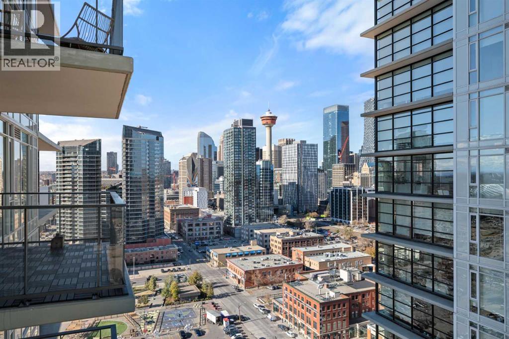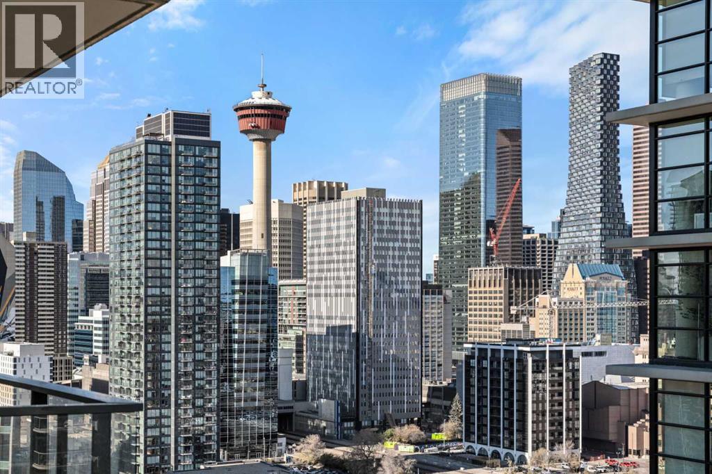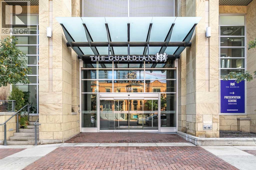 Experience elevated urban living with a VIEW in this modern one bedroom condo with titled underground parking in The Guardian South Tower, one of Calgary’s most iconic high rise communities loaded with next level amenities.Inside, the thoughtfully designed open concept layout is anchored by a sleek contemporary kitchen featuring integrated executive style appliances including a hidden refrigerator, elegant quartz countertops, and modern cabinetry. The space flows seamlessly into the dining and living area, where floor to ceiling windows flood the home with natural light. Durable LVP flooring runs throughout, offering a clean modern look with easy maintenance.Step out onto the spacious covered balcony and take in vibrant city views and stunning sunsets. Glass railings showcase the Calgary skyline, including the iconic Calgary Tower.Residents enjoy impressive amenities including a massive social club with fireplace, big screen TVs, Wi Fi, and lounge seating, a fully equipped fitness centre that rivals most commercial gyms, and a beautifully landscaped garden terrace. The home includes titled, secure, heated underground parking. The building is pet friendly with approval and professionally managed, making it ideal for professionals, investors, or anyone wanting a low maintenance downtown lifestyle.Located in the heart of the Beltline, you are steps from the Stampede Grounds, Scotiabank Saddledome, transit, casinos, and endless restaurants, cafés, and shopping.A rare opportunity to own in one of Calgary’s most sought after towers. Walkability and true urban living at its finest. Book your private viewing before it’s gone. (id:55577)