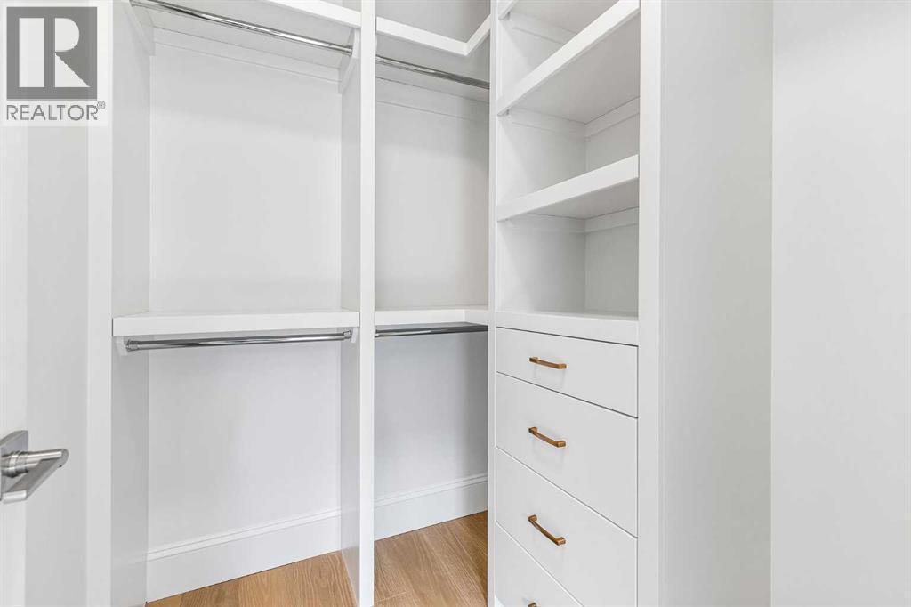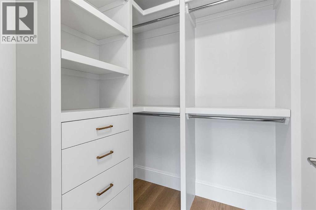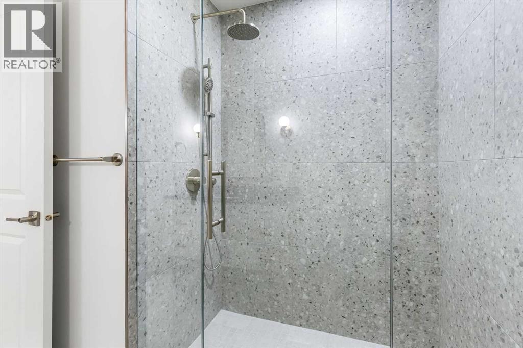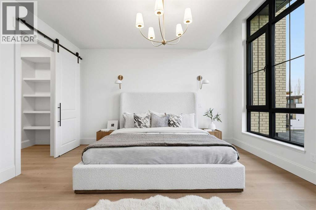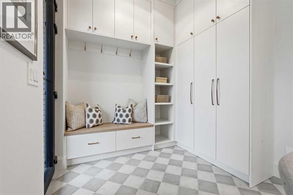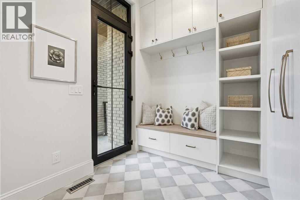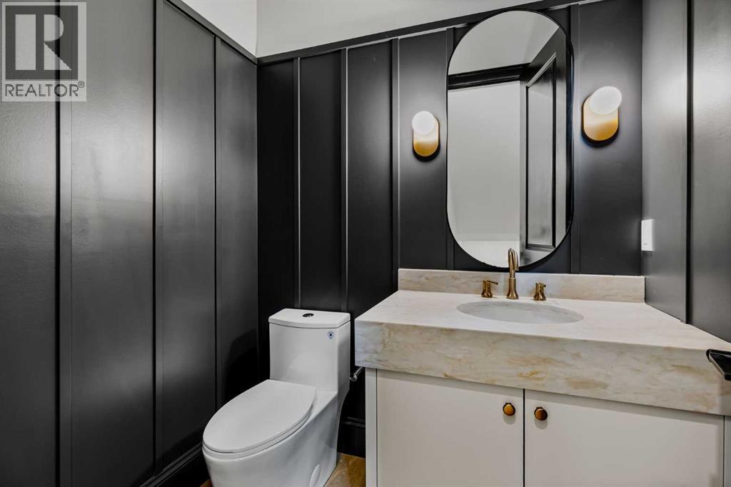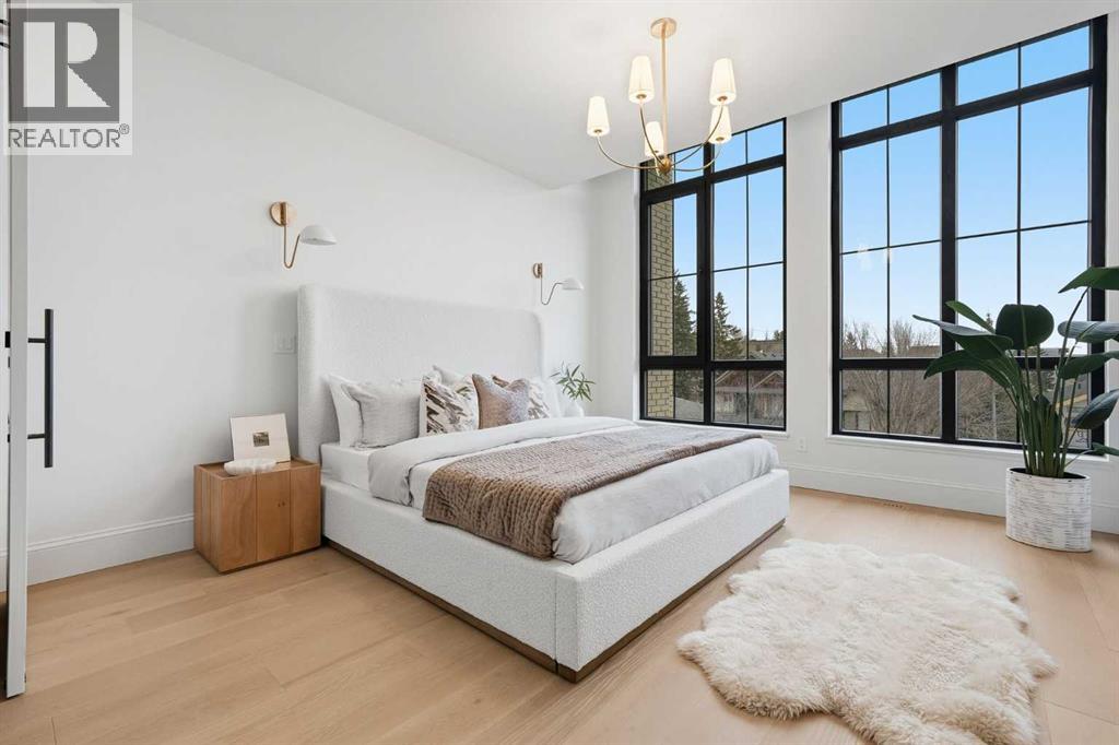 Experience quiet luxury at its finest in this stunning three-storey home, set on one of the highest points in Calgary with uninterrupted skyline views from all levels, and steps from Marda Loop. The exterior makes a striking first impression with its blend of classic white brick detailing, black accents, and timeless stucco. The curb appeal is enhanced by clean glass railings, low-maintenance landscaping, and a welcoming front balcony. Step into a beautiful and functional foyer, complete with custom built-in millwork, a bench, and smart storage including hanging compartments, open shelving, and pull-out drawers. The open-concept design includes a dedicated dining area surrounded by massive sliding doors that lead to the balcony. This is styled for intimate dinners, elevated entertaining, or just enjoying a coffee with stunning skyline views.At the heart of the home, the chef’s kitchen is a true masterpiece. It features a 14-foot island with quartz from Hanstone (made in Canada), a quartz backsplash, plaster textured hood fan, pot filler, and oversized premium appliances including a 48” dual oven gas range and a 66” built-in fridge/freezer. There is a butler’s pantry with sink and cabinetry, mud room, coffee bar, and tons of storage including under the island. The kitchen is set up to be not only beautiful but also functional and includes a garbage drawer, bar cooler, and spice racks/cabinetry. Across from it, the living room centers around a beautiful fireplace and custom built-ins which make it cozy, refined, and made for real living. Large doors lead to the deck and the sunny south facing backyard, that is tiered, turfed and truly low maintenance. Throughout the home, you’ll enjoy tons of natural sunlight from the large windows, 10-foot high ceilings, arched transitions, and wide-plank engineered hardwood create a warm and elevated flow.Upstairs, the primary suite is a serene retreat with a spa-like ensuite featuring a steam shower, dual vanity, custom tilew ork, and skyline views. Secondary bedrooms are generously sized, each with walk-in closets, and connected by a stylish bathroom ideal for kids or guests.The third level includes a beautiful rooftop patio where you can soak in the skyline views, a stylish bathroom with nice finishes, a rec/living area with built-in storage and a gas fireplace. There is a large wet bar with LED lighting in the cabinetry, beatiful tile, shelves and bar fridge. This is the ultimate entertaining area to host friends and family.The fully finished basement extends the living space with heated floors roughed-in, a large flex room or guest suite, and full bathroom. Additional features include a heated double attached garage with epoxy flooring, integrated speakers and security system, central A/C, roughed-in heated driveway.Whether you're enjoying a quiet morning in the sun, hosting friends on the rooftop, or watching the city light up at night, this home was built for a lifestyle that’s elevated and timeless. (id:55577)