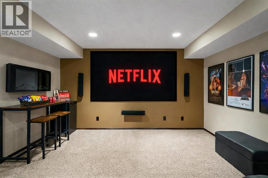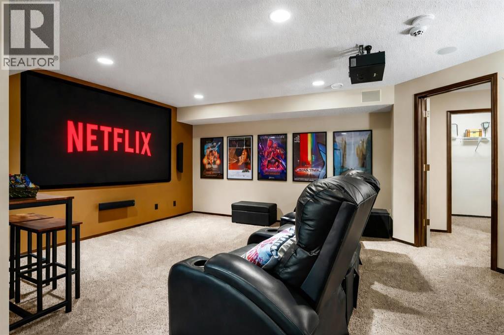 Rare 5-bedroom, 3.5-bathroom home backing onto expansive greenspace with no rear neighbors, offering privacy, big sky views, and an exceptional outdoor lifestyle. Thoughtfully upgraded and meticulously maintained, this home blends functional luxury with everyday comfort.The main floor features an open to above, 9’ ceilings, durable luxury vinyl plank flooring throughout, a front den, and a cozy corner fireplace with stone surround in the rear lifestyle room. The kitchen is designed for both style and function with a center island, extended-height cabinetry, black appliances including a French door fridge, corner pantry, dishwasher, and a bright rear dining area with patio doors leading outside. A tiled mudroom with laundry (LG set, 2021 with sidekick pedestal) and 2pc bath complete the level. Additional highlights include rounded corners, central air, alarm and central vac rough-in.Upstairs offers luxury vinyl plank flooring, a spacious vaulted front bonus room with ceiling fan and a split-bedroom layout. Two secondary bedrooms include one with built-in desk and park views. The primary retreat overlooks the greenspace and features a walk-in closet, skylight, deep soaker tub, separate shower, and large vanity. A 4pc main bath includes tile flooring and upgraded surround.The fully developed basement (2011, permitted) includes two additional bedrooms, a tiled spa-inspired 3pc bath with rainfall shower, body jets, and wand, plus a dedicated home theatre with projector, 106” screen, and 7.1 wiring (wall and ceiling mounted speakers). Ample storage includes a large walk-in closet with media rack and under-stair storage. Hot water tank replaced 5 years ago.The backyard is a private oasis featuring vinyl decking with stairs to a stamped concrete patio (perfect for a outdoor firepit), synthetic turf, and a 7-person hot tub (4 years old) with pergola. Dry, lit storage under the deck and a separate shed add convenience. Exterior upgrades include new shingles in Spring 2025, Gemstone lighting, cameras, composite front steps, side concrete walkway, and an insulated, drywalled, painted garage.A rare opportunity to own a move-in-ready home with premium features in an unbeatable location. (id:55577)