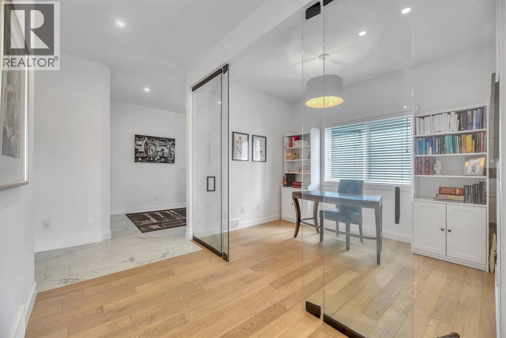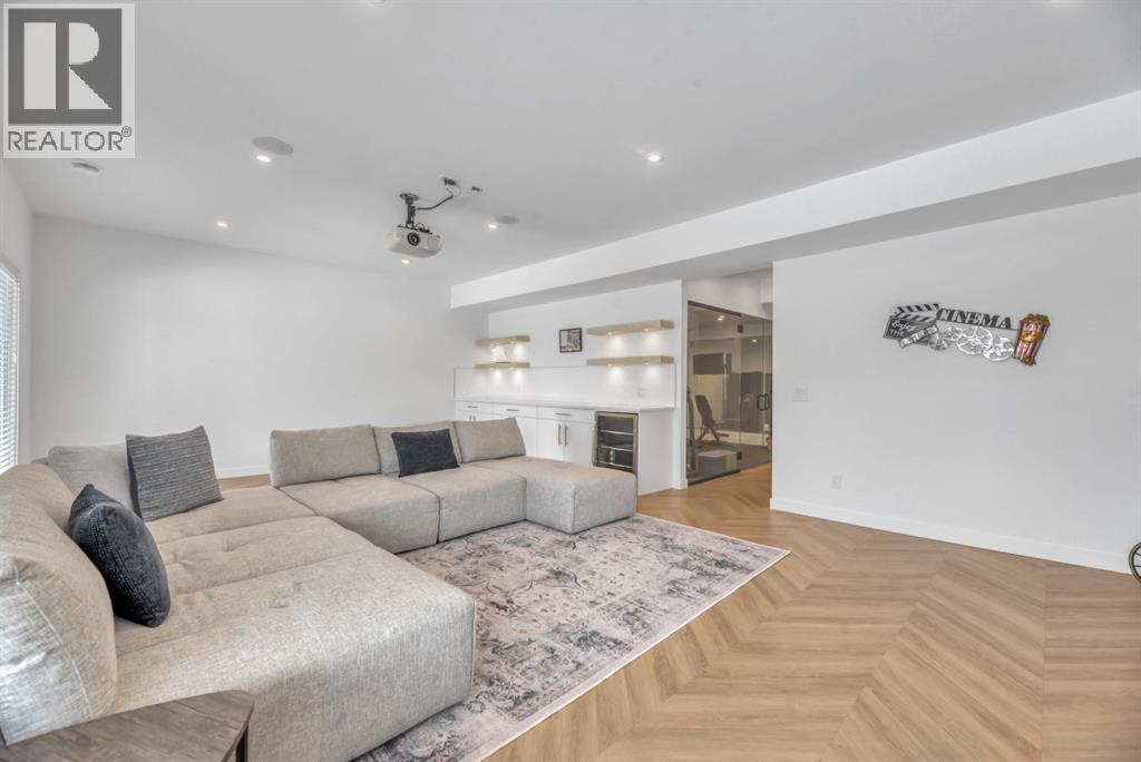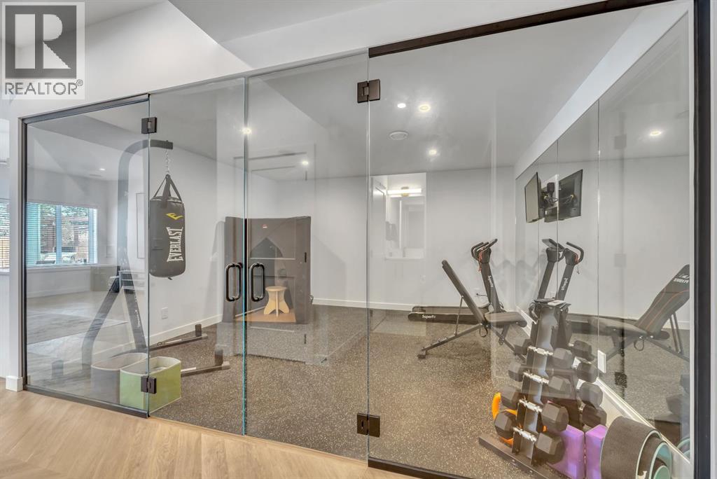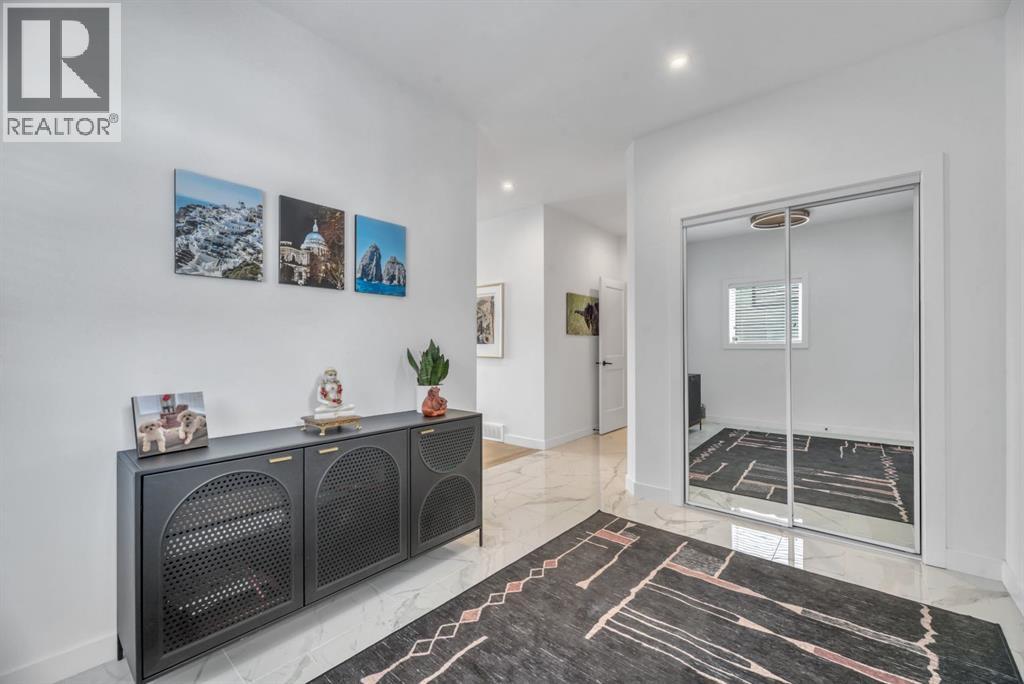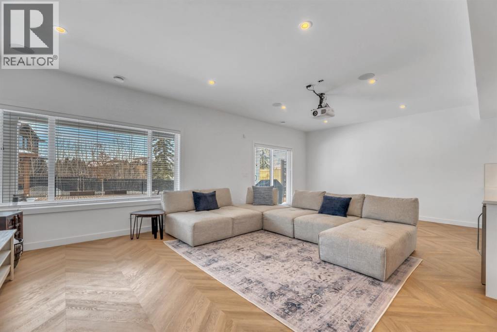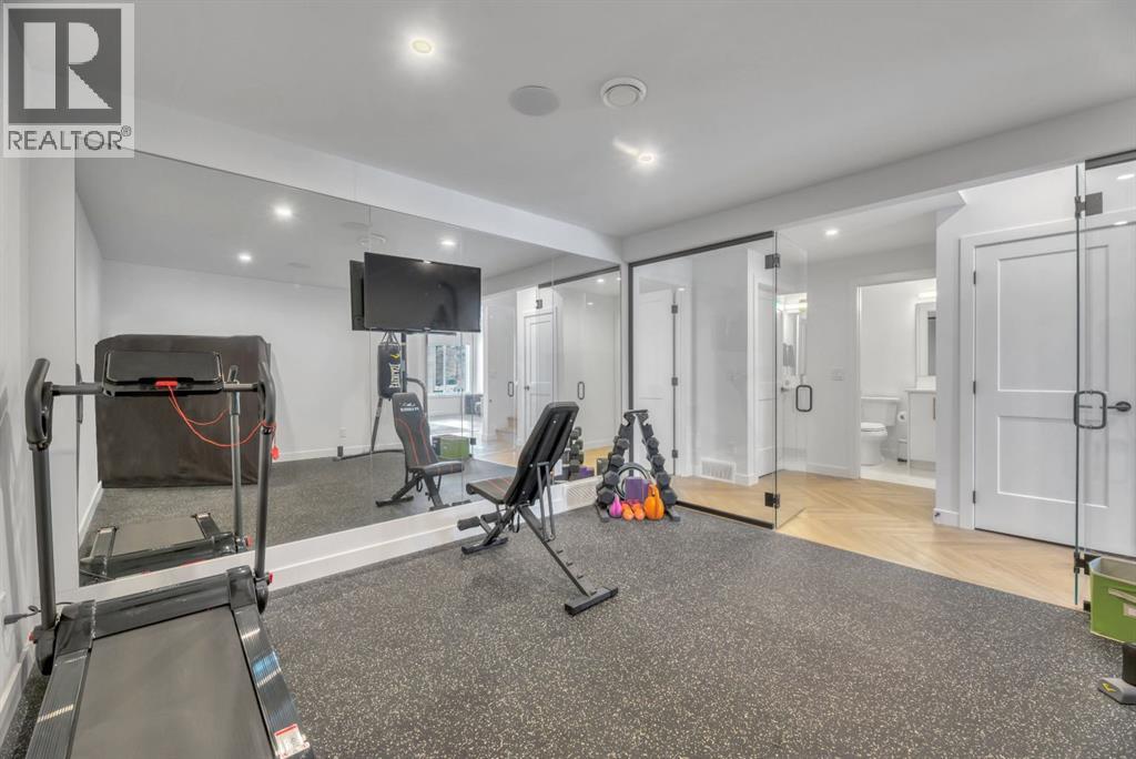 Welcome to an exceptional offering in the prestigious community of Springbank Hill, where elevated design meets everyday function in this stunning 2,806 sq ft + fully finished walkout home backing onto a natural ravine & pathway system with MOUNTAIN VIEWS. From the moment you arrive, the home impresses with a spacious entry & refined finishes throughout, inc. white oak hardwood flooring. A private front den, enclosed by sleek panel glass doors, provides the perfect home office space. The heart of the home is the breathtaking open-to-above great room, anchored by a large scale framed fireplace, while expansive windows flood the space with light & showcase the tranquil ravine views. The designer kitchen is both sophisticated & functional, with white flat-panel cabinetry, matte gold hardware, custom panel French door fridge and dishwasher, Cafe collection 6 burner gas range with double oven and a custom hood fan. A brilliant mix of modern & traditional elements with a blend of herringbone with gold trimmed subway tile niche & a beautifully patterned white quartz counter. Thoughtfully designed pantry shelving, small servery with microwave-cabinet & a well-appointed mudroom elevate everyday convenience. Step outside to your full-width upper deck, the perfect setting to unwind while enjoying uninterrupted views & privacy. Upstairs, the home continues to impress with a vaulted front bonus room featuring a full wall of shelving, along with a well designed laundry room with built-in storage & wash sink. The primary retreat is a nice sanctuary, offering stunning mountain views, a spa-inspired ensuite with separate vanities, a freestanding oval tub, a fully tiled shower with bench & body sprays, & a fabulous walk-in closet with smart built ins. A well-appointed second bath features dual sinks, storage and 2 additional perfect sized bedrooms makes this upper floor an ideal layout. The fully developed walkout basement is designed for both lifestyle & wellness, featuring chevron- laid white oak hardwood flooring, a fantastic rec room space - perfect for a home theatre/games room, & a private gym with full mirror wall, specialized flooring, & glass partition. A spacious fourth bedroom & full 3 pc bath with tiled shower complete this level. Additional features include central air, water softener, & built-in speakers throughout. Outdoors, the professionally landscaped yard with irrigation blends seamlessly into the surrounding environment, offering a rare private setting. Located in one of Calgary’s most sought-after Westside communities, this home offers access to some of the city’s top-rated schools, inc. Webber Academy, Calgary Academy, Rundle College, Ernest Manning and Griffith Woods School. Enjoy quick access to Aspen Landing, Westside Recreation Centre, boutique shopping, dining, paths, major routes and only 15 mins to downtown. This is a rare opportunity to own a modern yet warm & inviting, impeccably finished walkout home in an amazing location. (id:55577)