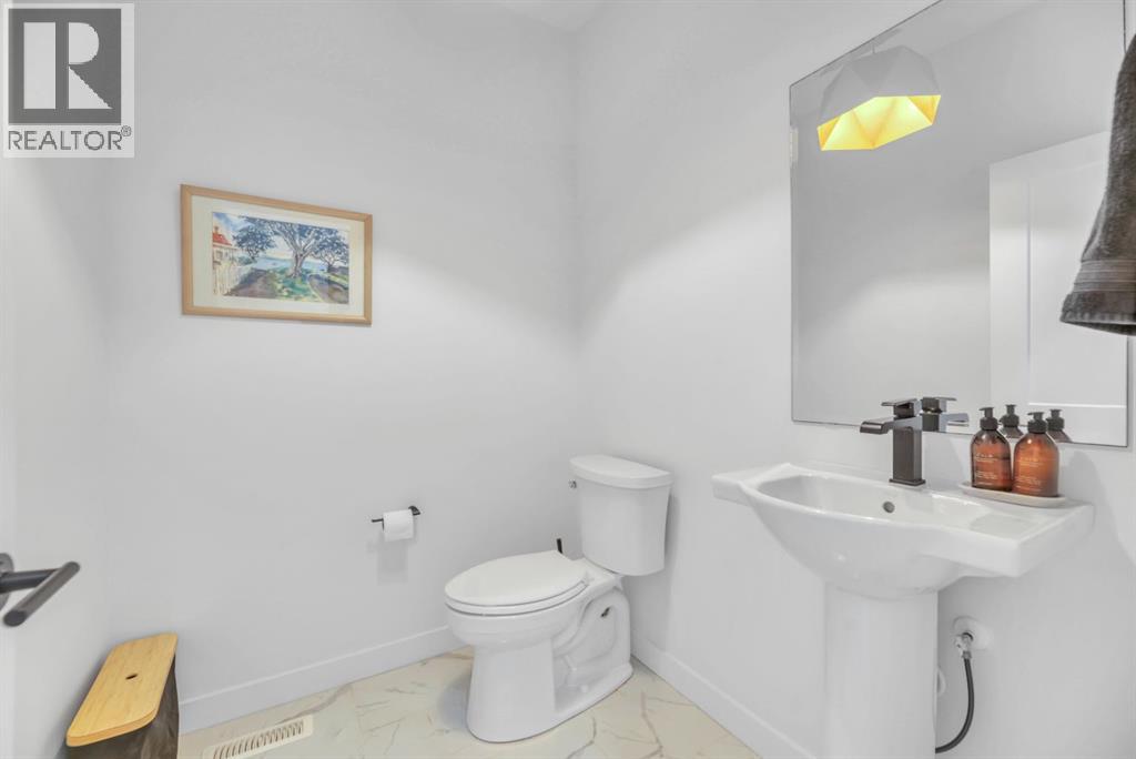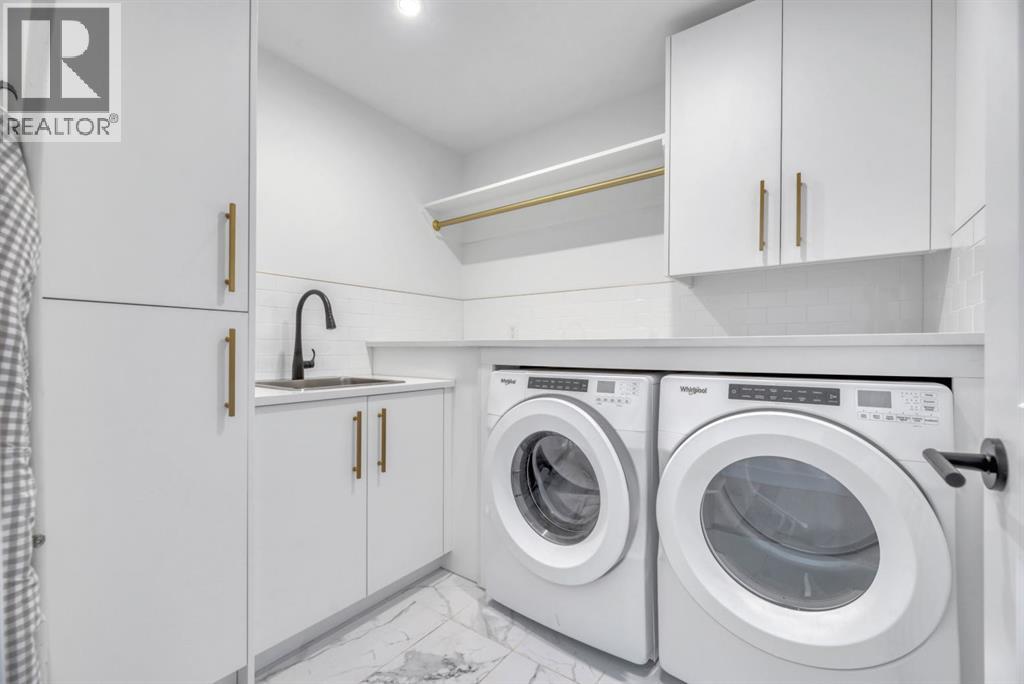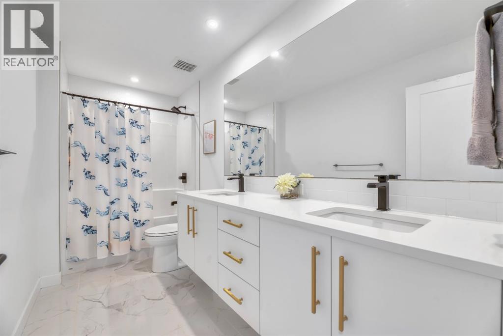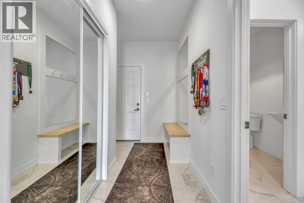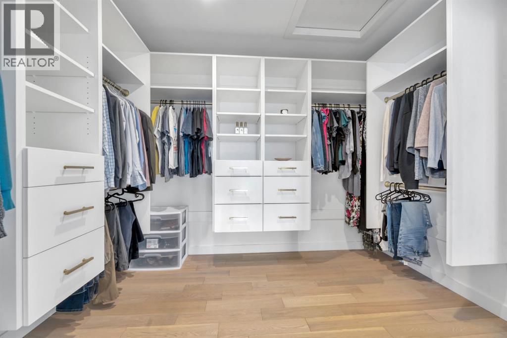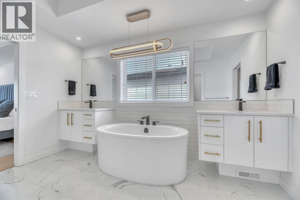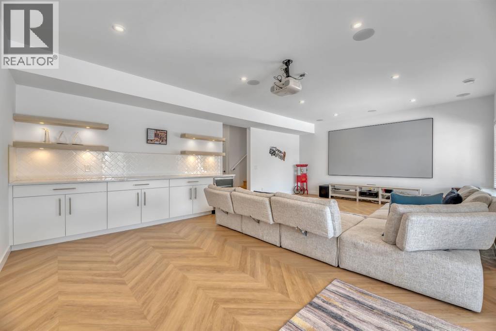 Welcome to an exceptional offering in the prestigious community of Springbank Hill, where elevated design meets everyday function in this stunning 2,806 sq ft + fully finished walkout home backing onto a natural ravine & pathway system with MOUNTAIN VIEWS. From the moment you arrive, the home impresses with a spacious entry & refined finishes throughout, inc. white oak hardwood flooring. A private front den, enclosed by sleek panel glass doors, provides the perfect home office space. The heart of the home is the breathtaking open-to-above great room, anchored by a large scale framed fireplace, while expansive windows flood the space with light & showcase the tranquil ravine views. The designer kitchen is both sophisticated & functional, with white flat-panel cabinetry, matte gold hardware, custom panel French door fridge and dishwasher, Cafe collection 6 burner gas range with double oven and a custom hood fan. A brilliant mix of modern & traditional elements with a blend of herringbone with gold trimmed subway tile niche & a beautifully patterned white quartz counter. Thoughtfully designed pantry shelving, small servery with microwave-cabinet & a well-appointed mudroom elevate everyday convenience. Step outside to your full-width upper deck, the perfect setting to unwind while enjoying uninterrupted views & privacy. Upstairs, the home continues to impress with a vaulted front bonus room featuring a full wall of shelving, along with a well designed laundry room with built-in storage & wash sink. The primary retreat is a nice sanctuary, offering stunning mountain views, a spa-inspired ensuite with separate vanities, a freestanding oval tub, a fully tiled shower with bench & body sprays, & a fabulous walk-in closet with smart built ins. A well-appointed second bath features dual sinks, storage and 2 additional perfect sized bedrooms makes this upper floor an ideal layout. The fully developed walkout basement is designed for both lifestyle & wellness, featuring chevron- laid white oak hardwood flooring, a fantastic rec room space - perfect for a home theatre/games room, & a private gym with full mirror wall, specialized flooring, & glass partition. A spacious fourth bedroom & full 3 pc bath with tiled shower complete this level. Additional features include central air, water softener, & built-in speakers throughout. Outdoors, the professionally landscaped yard with irrigation blends seamlessly into the surrounding environment, offering a rare private setting. Located in one of Calgary’s most sought-after Westside communities, this home offers access to some of the city’s top-rated schools, inc. Webber Academy, Calgary Academy, Rundle College, Ernest Manning and Griffith Woods School. Enjoy quick access to Aspen Landing, Westside Recreation Centre, boutique shopping, dining, paths, major routes and only 15 mins to downtown. This is a rare opportunity to own a modern yet warm & inviting, impeccably finished walkout home in an amazing location. (id:55577)