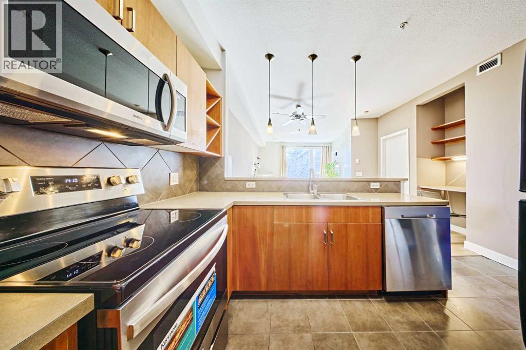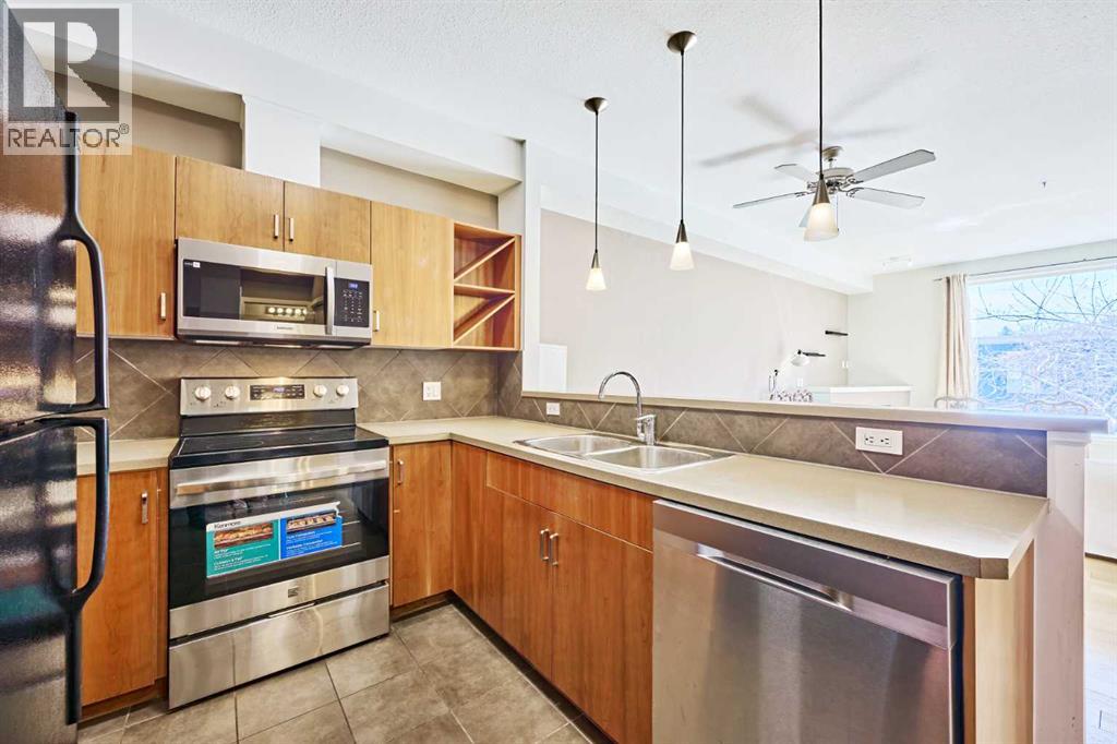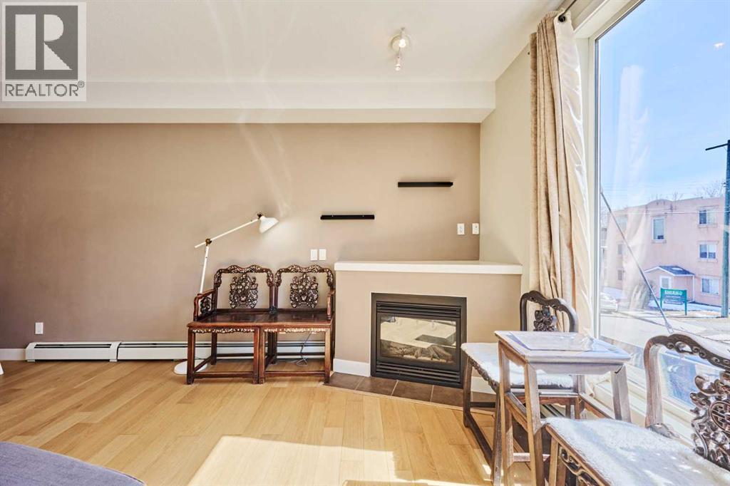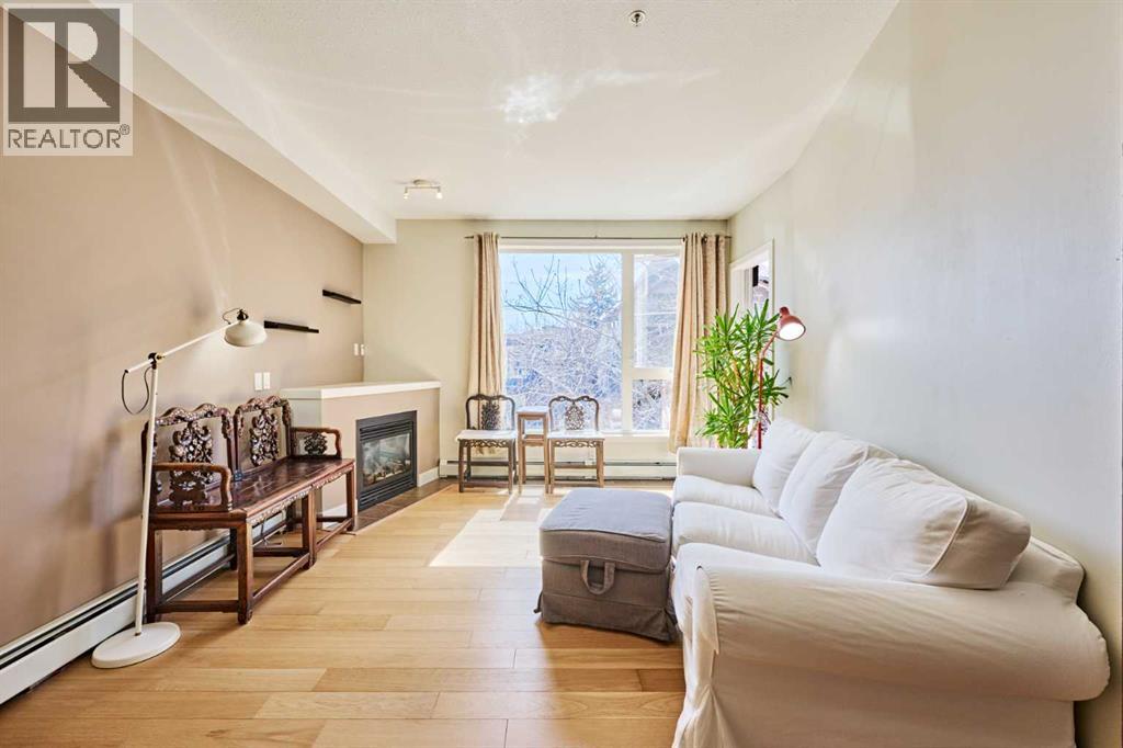 Welcome to Unit 203 in KABO, a bright and functional 1-bedroom, 1-bath condo in the heart of Altadore. This well-designed second-floor unit features an open-concept layout with 9' ceilings, a spacious kitchen(with new range, microwave and dishwasher) with maple cabinetry and breakfast bar, a cozy living room with gas fireplace, and a private covered balcony. The generous bedroom is located next to the 4-piece bath and in-suite laundry for added convenience. Heated underground parking and a separate storage locker are included. Pet-friendly building with board approval. Ideally located steps to River Park, Sandy Beach pathways, shopping, transit, and all the amenities of vibrant Marda Loop. A great opportunity for first-time buyers, investors, or anyone seeking an inner-city lifestyle in a desirable community. (id:55577)