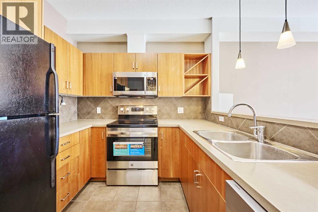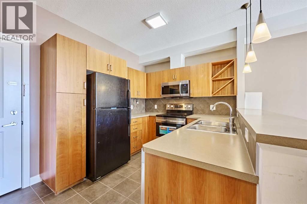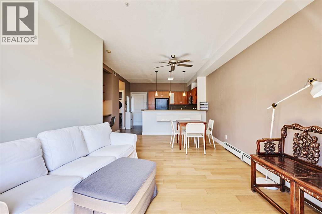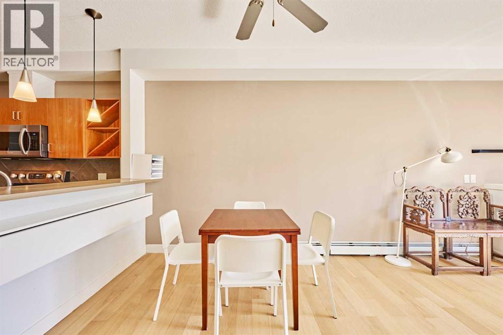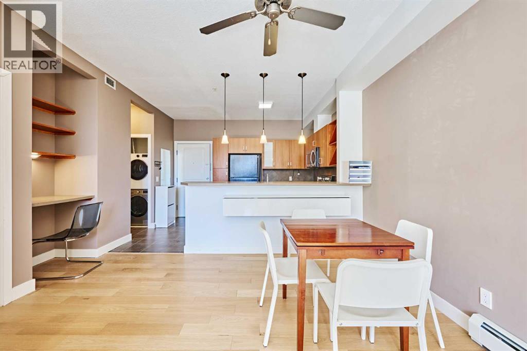 Welcome to Unit 203 in KABO, a bright and functional 1-bedroom, 1-bath condo in the heart of Altadore. This well-designed second-floor unit features an open-concept layout with 9' ceilings, a spacious kitchen(with new range, microwave and dishwasher) with maple cabinetry and breakfast bar, a cozy living room with gas fireplace, and a private covered balcony. The generous bedroom is located next to the 4-piece bath and in-suite laundry for added convenience. Heated underground parking and a separate storage locker are included. Pet-friendly building with board approval. Ideally located steps to River Park, Sandy Beach pathways, shopping, transit, and all the amenities of vibrant Marda Loop. A great opportunity for first-time buyers, investors, or anyone seeking an inner-city lifestyle in a desirable community. (id:55577)