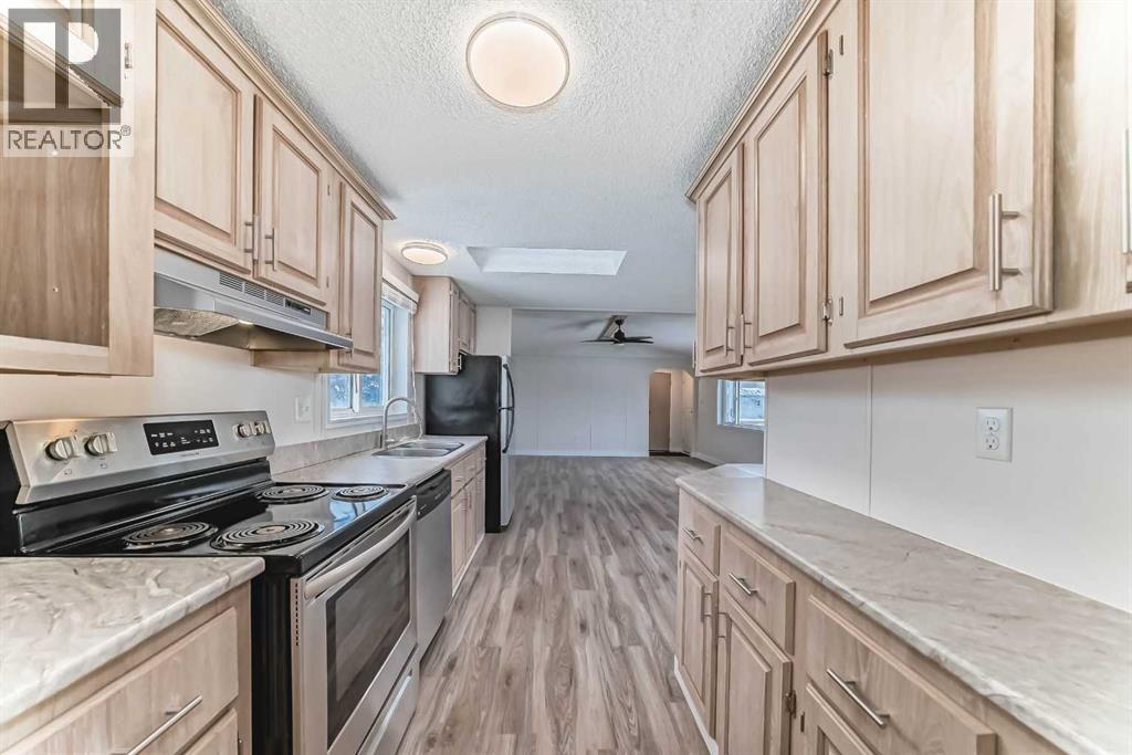 Welcome to this cute two bedroom one bath mobile home in the adult community (16+) of Parkridge Estates. Perfect for downsizers or first time homeowners, enjoy the benefits of community living while still having your own four walls not attached to anyone else. Entering the home, you'll appreciate the open living area and wider halls that make the home feel quite spacious. Being one level, and a smaller home, it also lends itself to easier living for those who may have mobility challenges. There is a large bedroom at the back of the home that has room for bigger furniture. There's another bedroom by the front entrance which is also a nice size. The home has been recently updated with fresh paint, new vinyl plank flooring, new light fixtures and new countertop. Furnace 2023. Plumbing was upgraded to pex November 2024 and new hot water tank was installed at the same time. New skirting installed on the home 2025. Home and deck were levelled 2025. There's a large deck spanning almost the length of the home on the north side. It's located across the street from the community centre making it easy to enjoy the many community activities. Parkridge Estates is an adult (16+) community with an active community association. Lot fee is $810/month which includes landscaping, snow removal, waste and recycling. There is an annual $25 (mandatory) community fee and activities include pub nights, cribbage, coffee meetings, jam sessions, crafting circle and more. There are 2 pets allowed per home and dogs must be less than 15 inches tall at shoulder when fully grown. (id:55577)