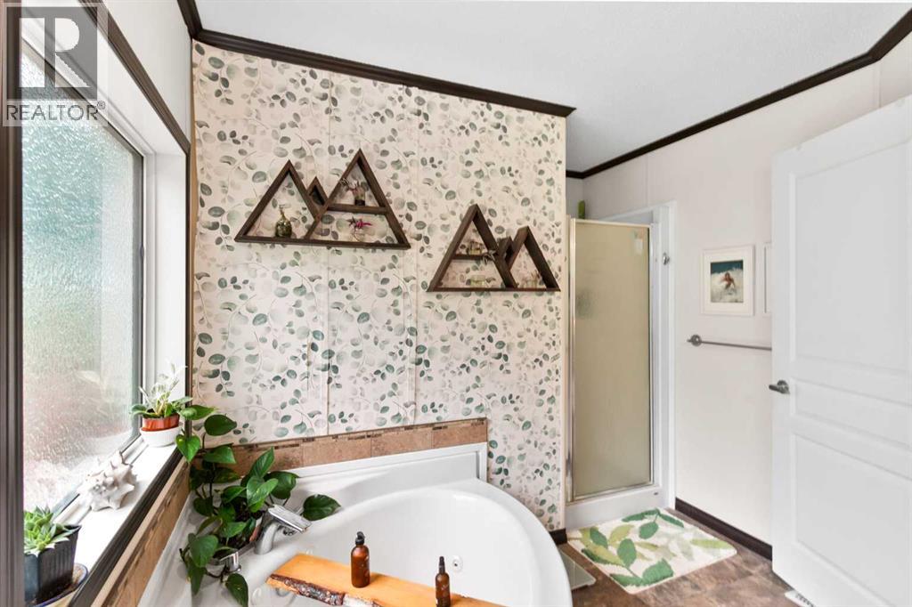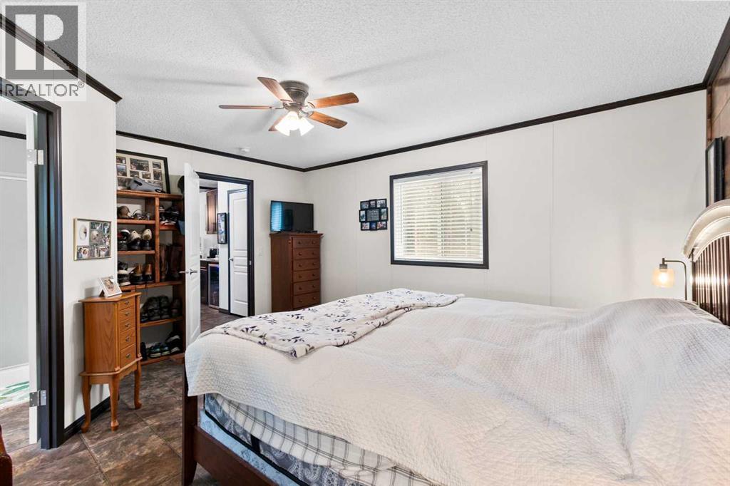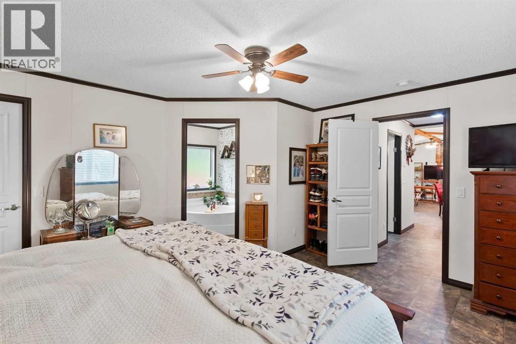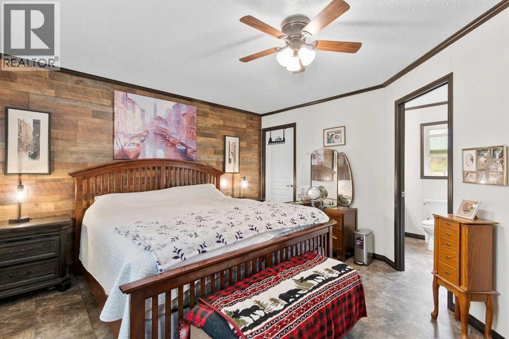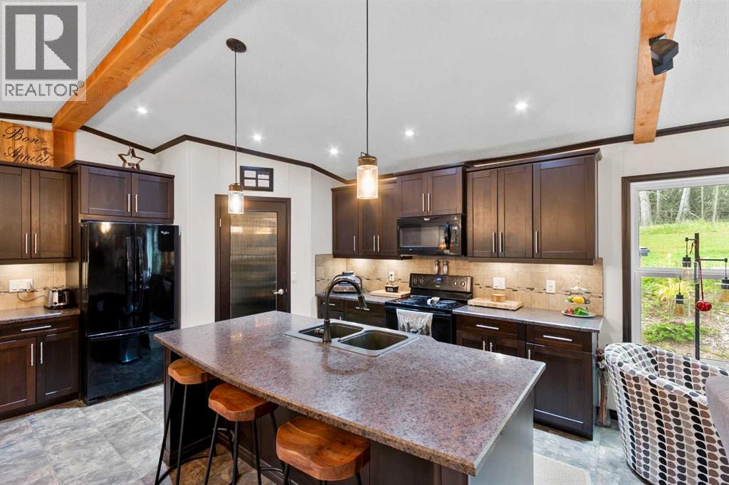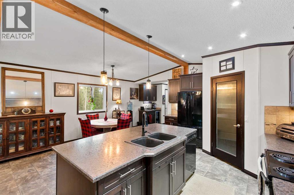 Set on a beautifully TREED SETTING, this 1,472 sq ft modular home offers the space and lifestyle acreage buyers crave. The OPEN-CONCEPT living area is warm and inviting, anchored by a WOOD BURNING FIREPLACE, exposed WOOD BEAMS & room to gather comfortably. A generous dining area flows into the functional kitchen featuring a center ISLAND, a COFFEE BAR and a large WALKTHROUGH PANTRY with convenient access to the laundry room and secondary entry, perfect for country living. The thoughtfully designed floor plan provides separation and privacy, with the primary suite tucked away on its own wing, complete with a walk-in closet and 4-piece ensuite. Two additional bedrooms and a second 4-piece bathroom are located on the opposite side of the home, ideal for family, guests, or a home office. Outside, enjoy wide-open space surrounded by forest, a DETACHED DOUBLE GARAGE, and a large WRAP AROUND DECK with pergola—an ideal spot to relax, entertain, and take in the peaceful, private setting that acreage living is all about. Additonally there is a Greenhouse, Wood Shed, and Hot Tub included with the property. You will love the PRIVACY of being at a dead end road and you cant beat the location being walking distance to the Little Red Deer River & community of Water Valley. Start living you Country Dream Life Today !! (id:55577)