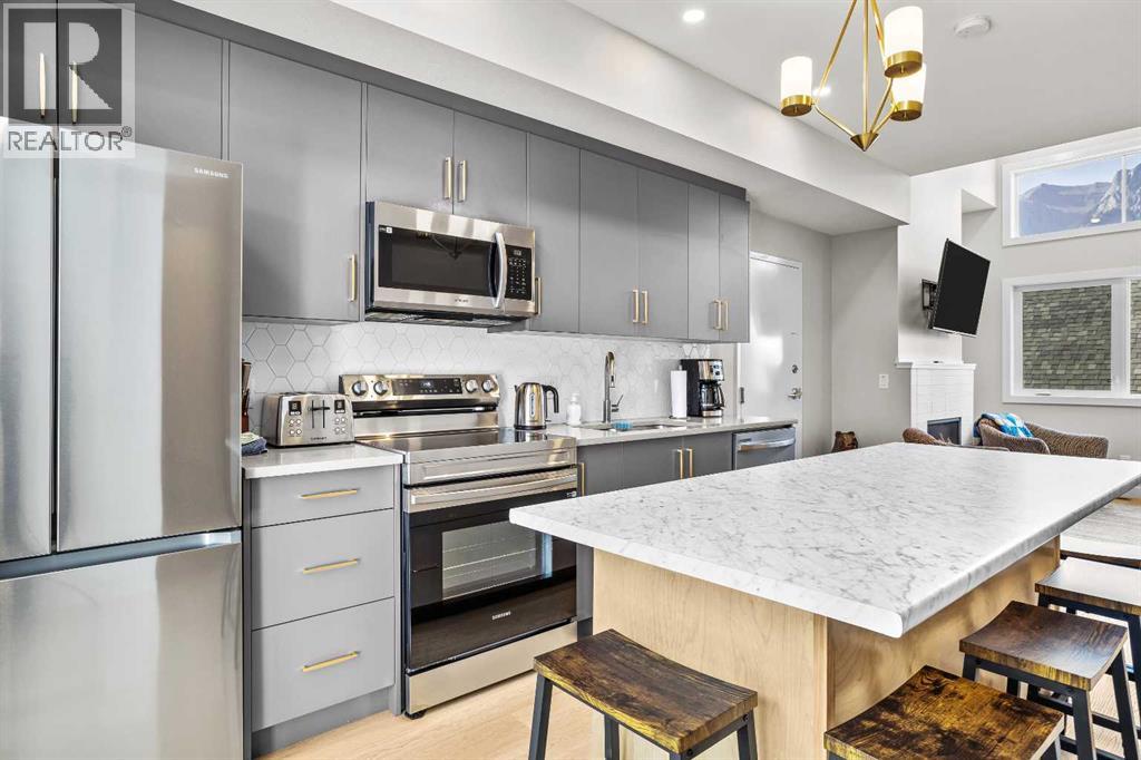 Incredible investment opportunity in the Rockies! This modern 3 bedroom, 3 bathroom townhome is short-term rental approved and offers exceptional revenue potential on Airbnb and VRBO. Thoughtfully designed, all three bedrooms and bathrooms are located on the lower level for privacy and comfort, while the open-concept main living space upstairs showcases panoramic mountain views, a cozy gas fireplace, and central air conditioning. The stylish kitchen is equipped with quartz countertops, stainless steel appliances, and ample storage, flowing seamlessly into the dining and living areas. Step out to your private balcony to enjoy fresh alpine air and breathtaking vistas. Complex amenities include a relaxing hot tub, while endless hiking, biking, and skiing adventures are just outside your door. Whether you’re seeking a high-performing revenue property, a mountain getaway, or both, this turnkey retreat delivers lifestyle and income in one perfect package. GST applies to the purchase price, GST may be deferrable, consult your accountant. (id:55577)