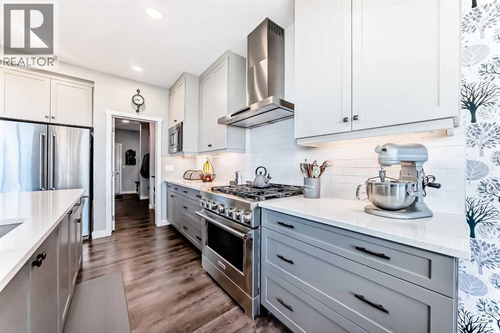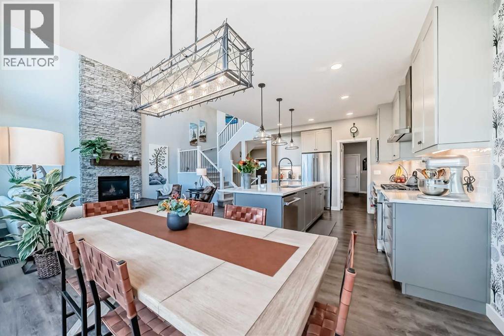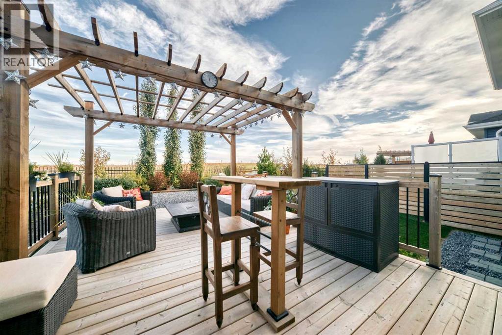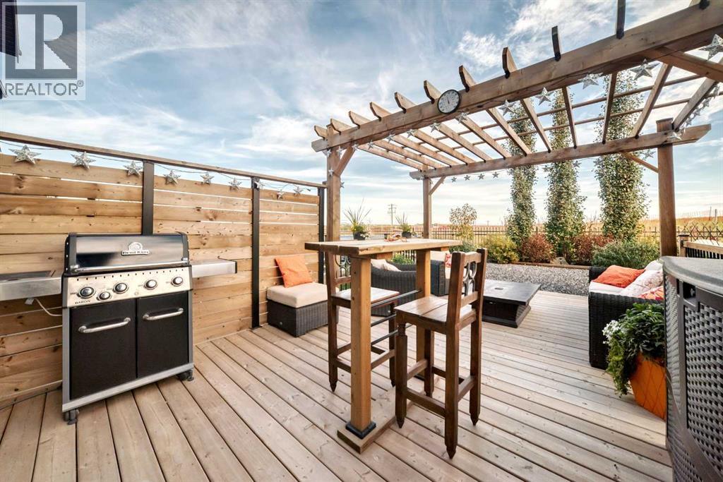 ** OPEN HOUSE SUN NOV 2ND 1PM-3PM **. 204 Sunrise Common is a remarkable home and offers over 2,100 sq ft of beautifully designed living space. It features a heated garage with an extended area, complete with a workshop space, an 8Ft door, a sink with hot and cold water access, and a separate side entrance for convenient yard access. The lovely backyard backs to a future walking path and green space, featuring a fantastic deck with a pergola, a built-in bar table, a gas hookup for a BBQ, and a fire table, making it perfect for outdoor gatherings.Inside, you'll be greeted by high ceilings, highlighted by a magnificent gas fireplace surrounded by floor-to-ceiling stone. A walkthrough pantry connects the garage to the kitchen, equipped with California closet organizers, ceiling height cabinets. Culinary enthusiasts will appreciate the six-burner gas range, built-in microwave, quartz countertops, and spacious island, all ideal for entertaining guests. James Hardie siding creates stunning curb appeal along with the landscaped yardUpstairs, a convenient laundry area features a countertop, and a built-in drying rack, enhancing the home's functionality. The bonus room boasts vaulted ceilings, creating an airy atmosphere while also offering scenic mountain views. All the bathrooms have quartz countertops with under mount sinks. The 4 pc primary ensuite features a fully tiled oversized shower and a dual vanity.The unfinished basement provides endless possibilities for customization to suit your personal style. This exceptional home perfectly blends comfort, style, and practicality, and is located near Ranchview K-8 School, St. Tim's 8-12 High School, shopping, walking paths, and parks in the family-friendly neighborhood of Sunset. Don’t miss this incredible opportunity—schedule your showing today! (id:55577)