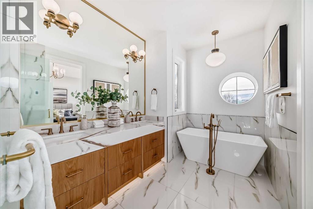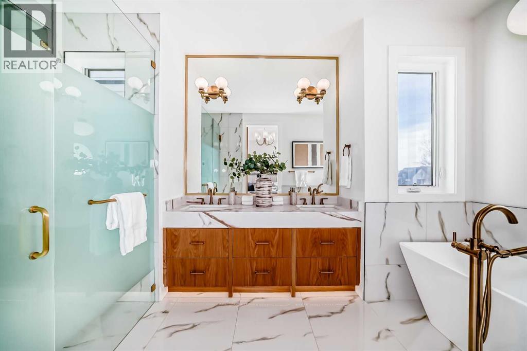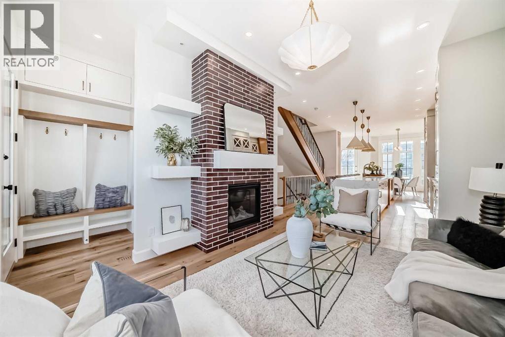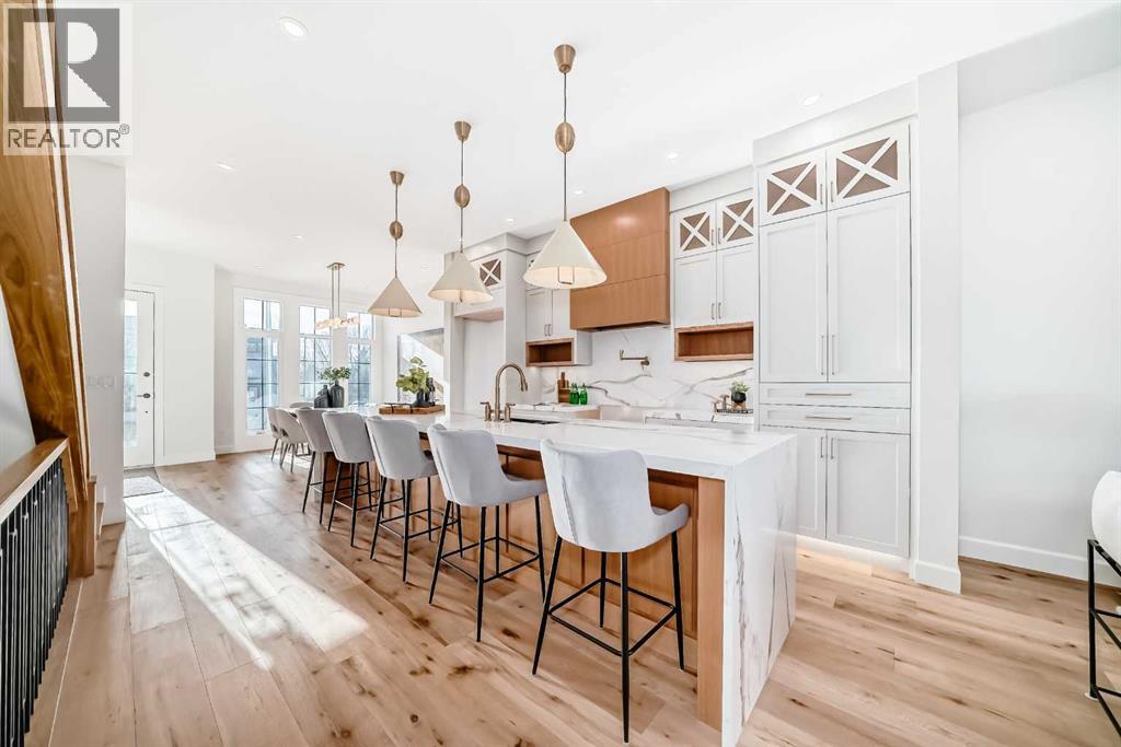 ** OPEN HOUSE: Saturday, November 29th 1-3pm and Sunday, November 30th 1-3pm ** Welcome to 2048 41 Avenue SW — a stunning 4-bedroom, 3.5-bathroom luxury residence crafted by acclaimed inner-city builder Palatial Homes Ltd., perfectly situated on a premium corner lot in the heart of Altadore. Surrounded by some of Calgary’s best amenities, this home is just minutes from top-rated schools, playgrounds, parks, off-leash areas, boutique shopping, and vibrant Marda Loop dining — making it the ideal location for families and professionals alike. The home’s bold brick exterior, fully landscaped and fenced yard, and detached double garage make an unforgettable first impression while ensuring low maintenance and timeless curb appeal. Inside, you'll find a thoughtfully designed, light-filled interior with a bright front dining area and an open-concept layout perfect for entertaining and everyday living. Stunning wide plank hardwood flooring flows throughout the main level, complemented by 10-foot ceilings and designer finishes. The gourmet kitchen is a true showstopper, featuring quartz countertops, a full-size island, ceiling-height cabinetry, and a premium JennAir appliance package. The adjacent living room is anchored by a cozy gas fireplace with floating built-in shelves and large windows that flood the space with natural light. A custom mudroom and stylish powder room add everyday convenience and function. Upstairs, the primary suite is a luxurious retreat with a spacious walk-in closet, and a spa-like ensuite featuring heated tile floors, a freestanding soaking tub, walk-in shower, and dual vanities with quartz counters. Two additional well-sized bedrooms, a shared full bathroom, and an upper-floor laundry room complete this level.The fully finished basement offers a massive recreation room, wet bar, full bathroom, and a fourth bedroom — ideal for a guest suite, teenager’s retreat, or home gym. Book your showing today! (id:55577)