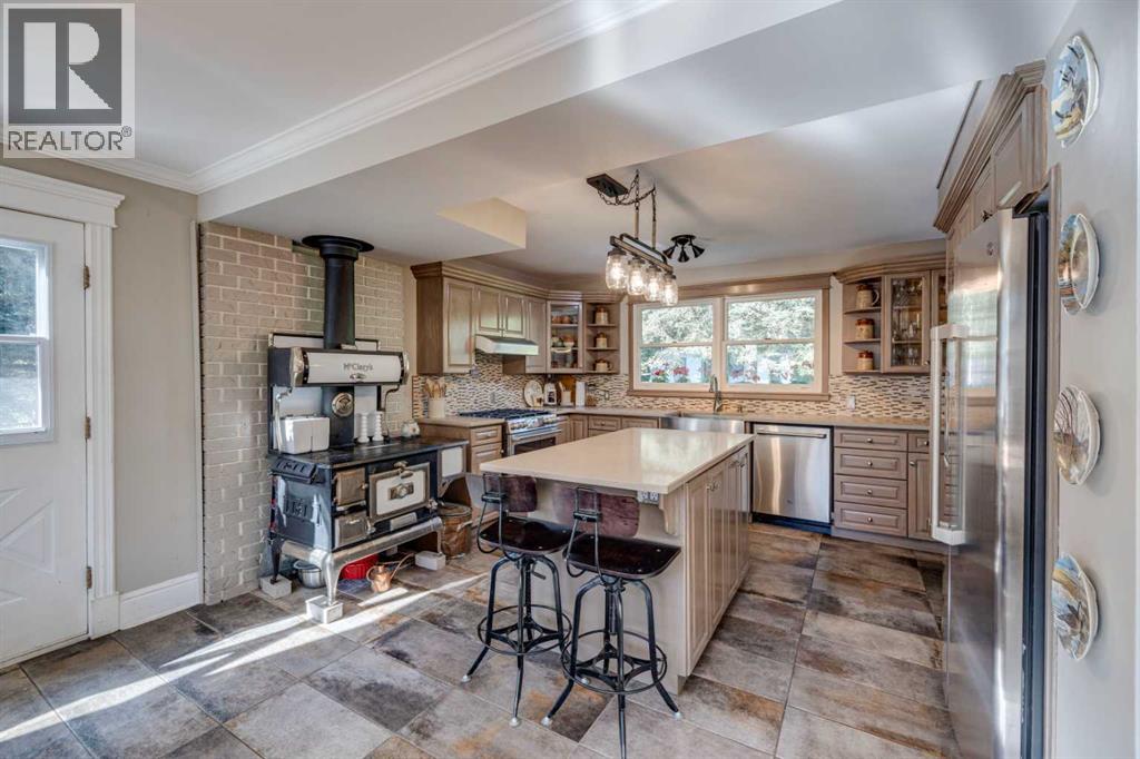 Discover your own private retreat just 7 minutes south of Bragg Creek. Nestled on nearly six picturesque acres of forest and open yard, this beautifully updated 2-storey home offers the perfect balance of rural charm and modern comfort. The main residence features an updated kitchen which features Caesar stone counters with a refurbished working 1922 McClary’s stove, lots of cabinets and even a hidden pantry under the stairs disguised as bookshelf. Cozy dining area and a large living room with a wood burning fireplace. Also features 3 bedrooms, bright living spaces, and forest and property views from every window. Attached double garage as well as extra developed living space above—complete with its own kitchen, living and dining areas, full bathroom, and a bedroom—Upper floor area between suite and other bedroom can be used as either a 1 or 2 bedroom suite separated by doors to the main house. (Like adjoining rooms in a hotel) It could be set up as a nanny suite with children in the middle between the suite and the primary bedroom. Or locked off it could be used as a rental mortgage helper. There is also a small undeveloped basement under the garage which is only accessible from the garage. This has an epoxy floor done and was in the process of becoming a home workout space. Outside, the property is set up for a variety of uses. Paved driveway to the house and detached two story red barn which has horse stalls, tack room, office and the second level for hobbies, parties, sleepovers or movie nights, two storage sheds, and horse-fenced areas ready for your equestrian pursuits with paddocks and a horse water system. Surrounded by mature trees and tranquil forest, the setting provides privacy while keeping you close to the amenities of Bragg Creek and an easy commute to the city. This unique property blends functionality, versatility, and natural beauty—perfect for anyone seeking a peaceful country lifestyle without sacrificing convenience. (id:55577)