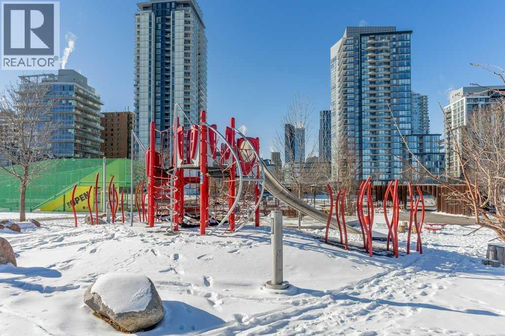 The River Twin in the heart of vibrant East Village, where modern convenience meets an unbeatable downtown lifestyle. This bright 2nd floor unit features a sunny south-facing balcony with sleek laminate flooring, stylish rounded corners, maple cabinetry, black appliances, an over-the-range microwave, and a functional breakfast bar - ideal for quick mornings or casual entertaining. Designed for ease and comfort, this unit includes underground parking and a separate storage locker, while condo fees cover ALL utilities—heat, water, gas, and electricity, making budgeting simple and stress-free. The professionally managed building is also pet-friendly (with restrictions), perfect for those wanting a companion in the city. Step outside and enjoy everything East Village has to offer. You’re just moments from the scenic Bow River pathways, perfect for biking or evening walks, and minutes to C-Train, Princes Island Park, Stampede Park, Calgary Zoo, trendy cafes, restaurants, and downtown offices. Easy indoor access to Calgary’s extensive +15 Skywalk system. Whether you're starting out, investing, or looking for a low-maintenance urban home, this is your opportunity to live in one of Calgary’s most dynamic communities. (id:55577)