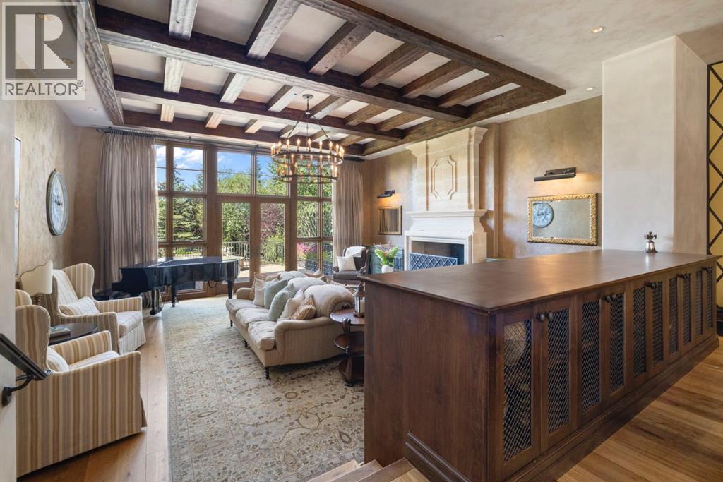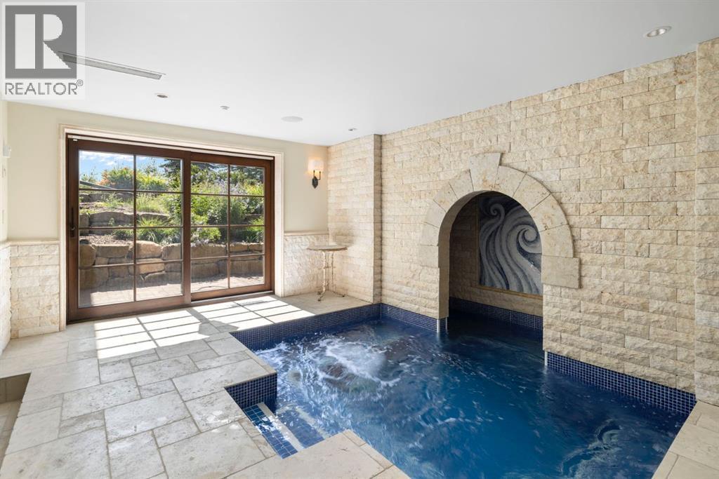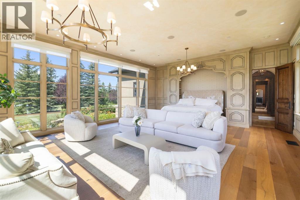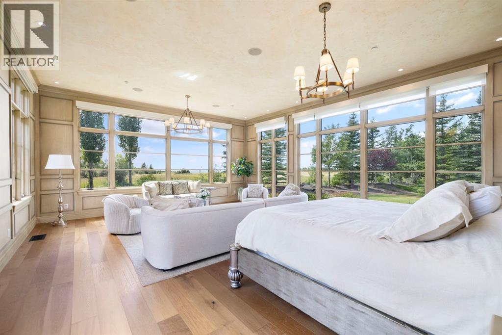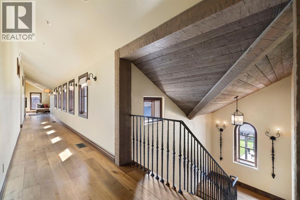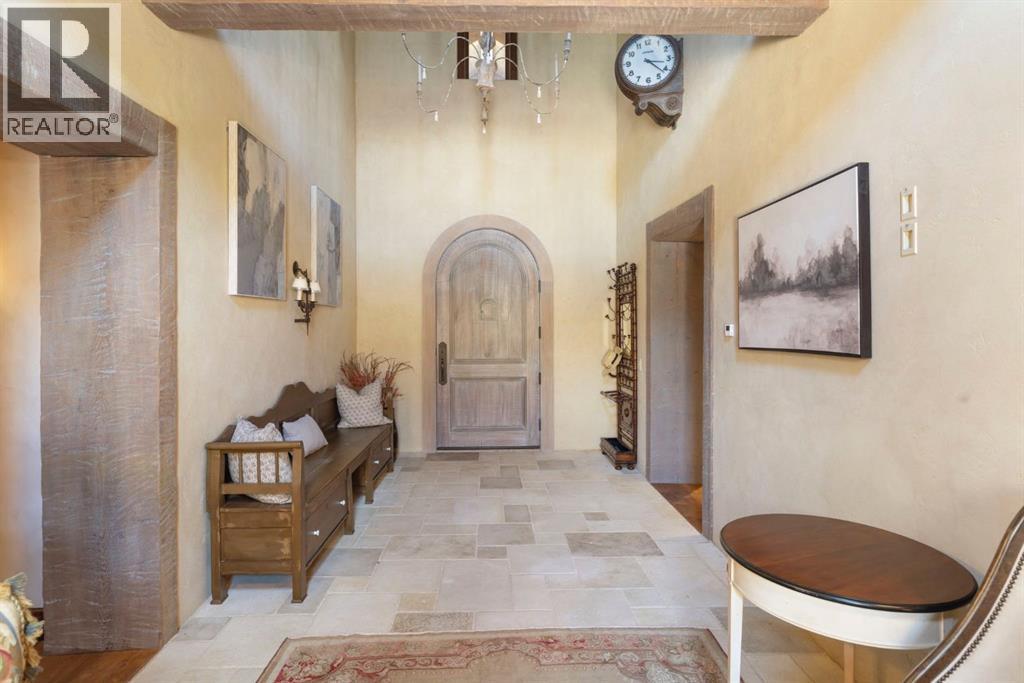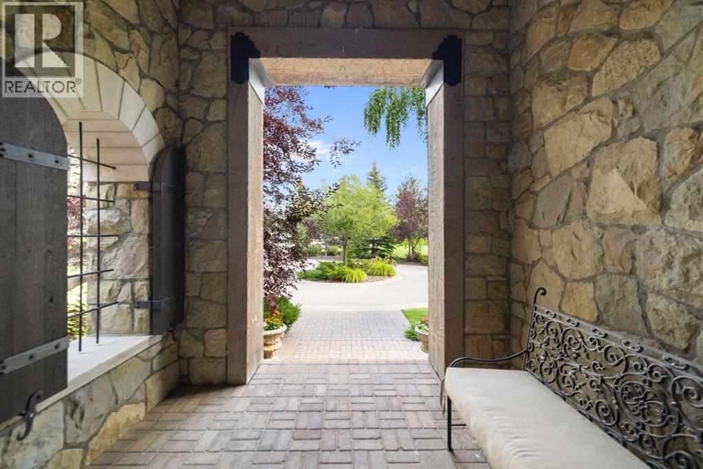 Welcome to 209 Pinnacle Ridge, an exceptional Tuscan inspired estate set on two acres in the foothills with sweeping views of the Rocky Mountains and just minutes from Calgary’s finest amenities. With more than 16,000 square feet of living space, this villa combines timeless European charm with modern luxury in every detail.The exterior showcases stonework, hand sawn timber beams, industrial steel brackets, and an oversized custom entry door. Inside, arched doorways, barrel vaulted ceilings, and perfectly aligned sightlines frame picturesque views throughout.The grand foyer with its soaring ceiling and bridge walkway leads to a formal lounge with paneled walls, coffered ceilings, and a wood burning fireplace. At the heart of the home, a gourmet kitchen with slab marble islands and a full suite of commercial grade appliances opens to the central courtyard, a private gathering space with built in BBQ, wall fountain, and pergola topped brick patio. Just beyond, the family room features a travertine mantled fireplace and French doors to the west lawn.The lower level is designed for both leisure and entertainment, offering a 25-meter lap pool, spa inspired hot tub alcove, walkout patio framed by sandstone boulders, a private theatre with professional grade audio visual, a games room with fabric lined walls, and a brick barrel vaulted wine cellar.The private primary wing showcases sweeping 180 degree mountain views and a luxurious ensuite. The upper level, accessed by dual staircases or elevator, offers five children’s bedrooms, a gym, and recreation spaces. Completing the home is a six car garage, extensive storage, a sport court, and professionally landscaped grounds.This estate has been featured in the National Post and Best Home Alberta, showcased in the award-winning series Fargo, and even served as Leonardo DiCaprio’s residence during the filming of The Revenant. It is a rare combination of artisanal craftsmanship, imported and local materials, and timeless arc hitectural design. All within 10 minutes of Springbank Airport, 15 minutes of downtown Calgary, 40 minutes to Banff, and close to Calgary’s top private schools. (id:55577)