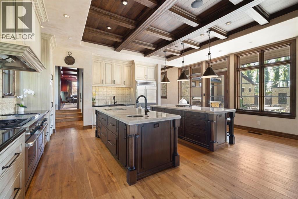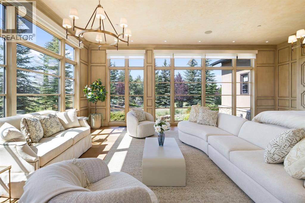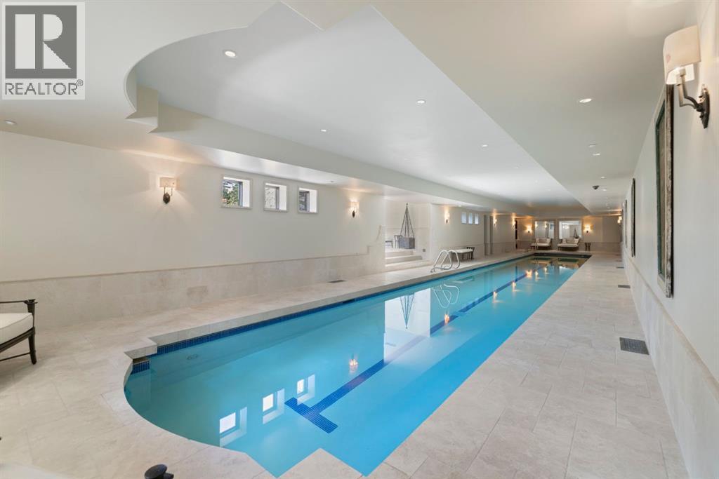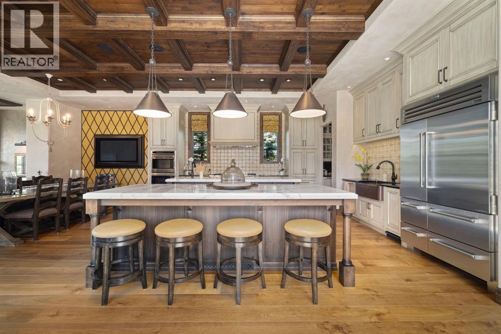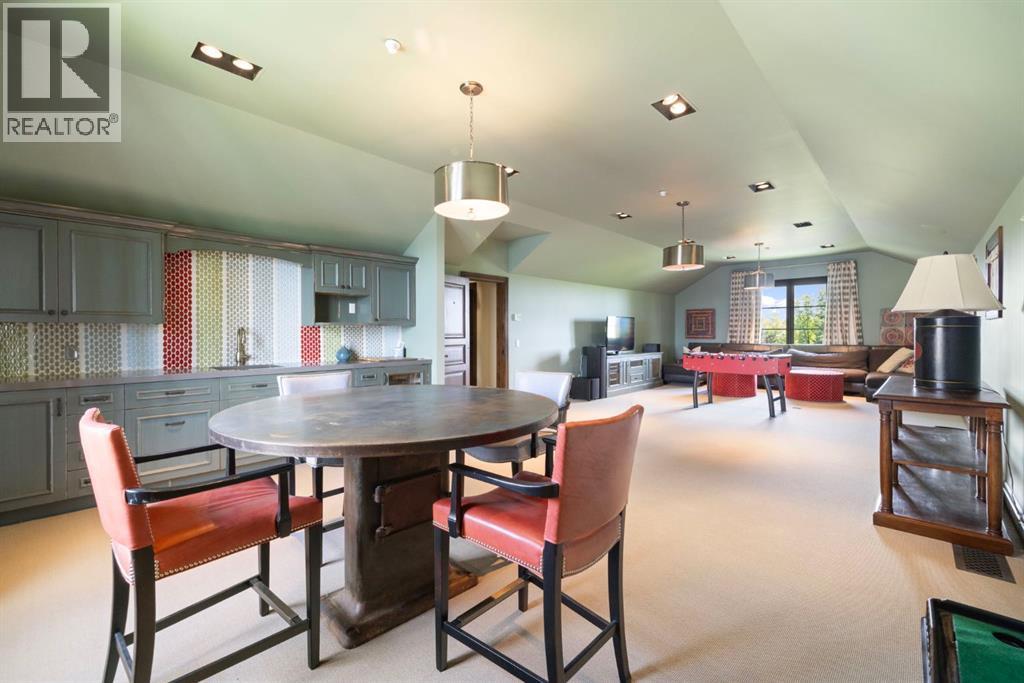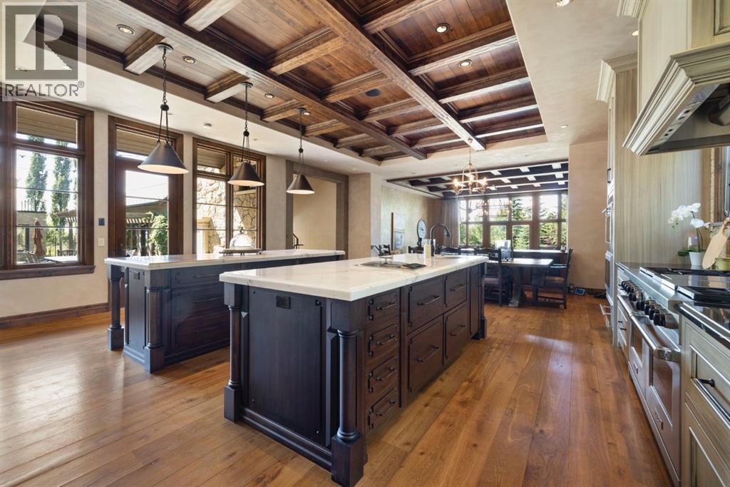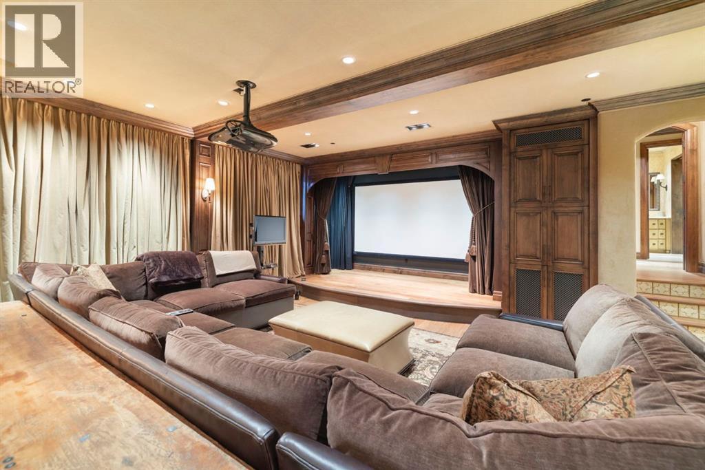 Welcome to 209 Pinnacle Ridge, an exceptional Tuscan inspired estate set on two acres in the foothills with sweeping views of the Rocky Mountains and just minutes from Calgary’s finest amenities. With more than 16,000 square feet of living space, this villa combines timeless European charm with modern luxury in every detail.The exterior showcases stonework, hand sawn timber beams, industrial steel brackets, and an oversized custom entry door. Inside, arched doorways, barrel vaulted ceilings, and perfectly aligned sightlines frame picturesque views throughout.The grand foyer with its soaring ceiling and bridge walkway leads to a formal lounge with paneled walls, coffered ceilings, and a wood burning fireplace. At the heart of the home, a gourmet kitchen with slab marble islands and a full suite of commercial grade appliances opens to the central courtyard, a private gathering space with built in BBQ, wall fountain, and pergola topped brick patio. Just beyond, the family room features a travertine mantled fireplace and French doors to the west lawn.The lower level is designed for both leisure and entertainment, offering a 25-meter lap pool, spa inspired hot tub alcove, walkout patio framed by sandstone boulders, a private theatre with professional grade audio visual, a games room with fabric lined walls, and a brick barrel vaulted wine cellar.The private primary wing showcases sweeping 180 degree mountain views and a luxurious ensuite. The upper level, accessed by dual staircases or elevator, offers five children’s bedrooms, a gym, and recreation spaces. Completing the home is a six car garage, extensive storage, a sport court, and professionally landscaped grounds.This estate has been featured in the National Post and Best Home Alberta, showcased in the award-winning series Fargo, and even served as Leonardo DiCaprio’s residence during the filming of The Revenant. It is a rare combination of artisanal craftsmanship, imported and local materials, and timeless arc hitectural design. All within 10 minutes of Springbank Airport, 15 minutes of downtown Calgary, 40 minutes to Banff, and close to Calgary’s top private schools. (id:55577)