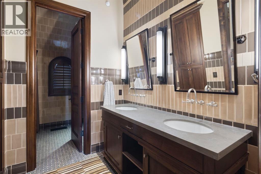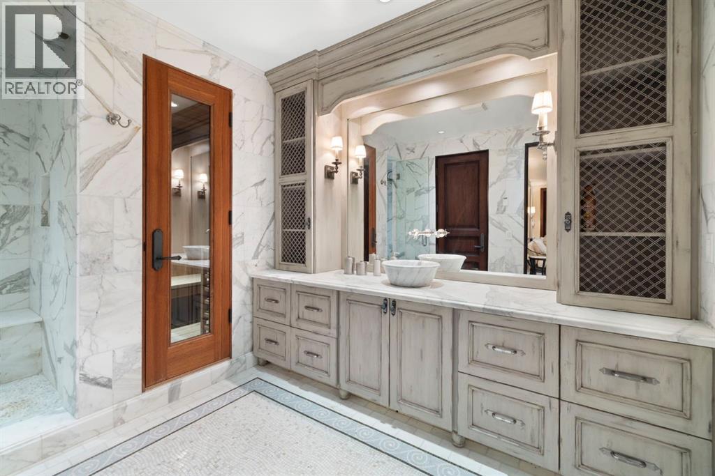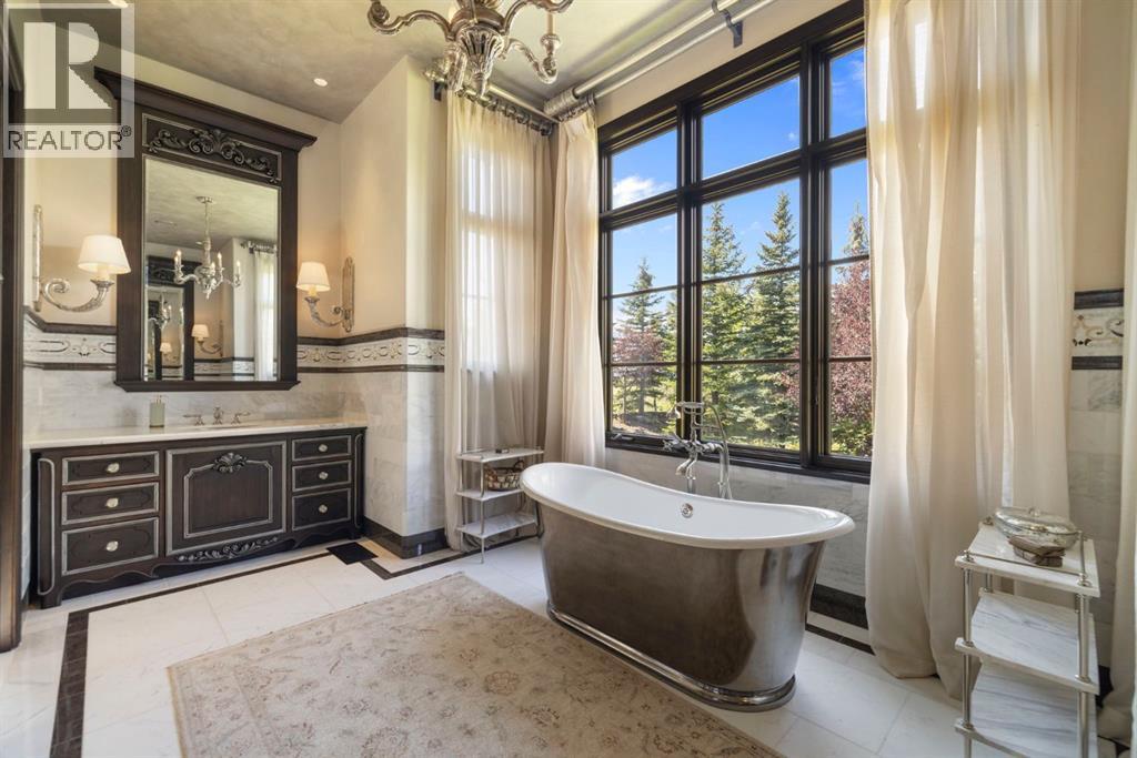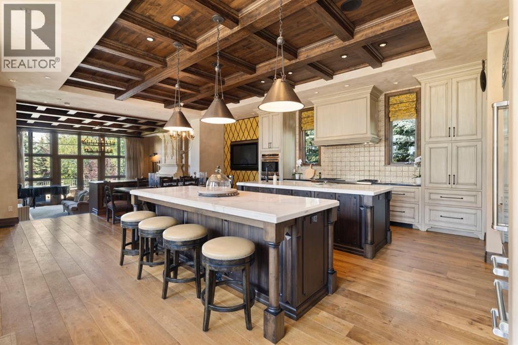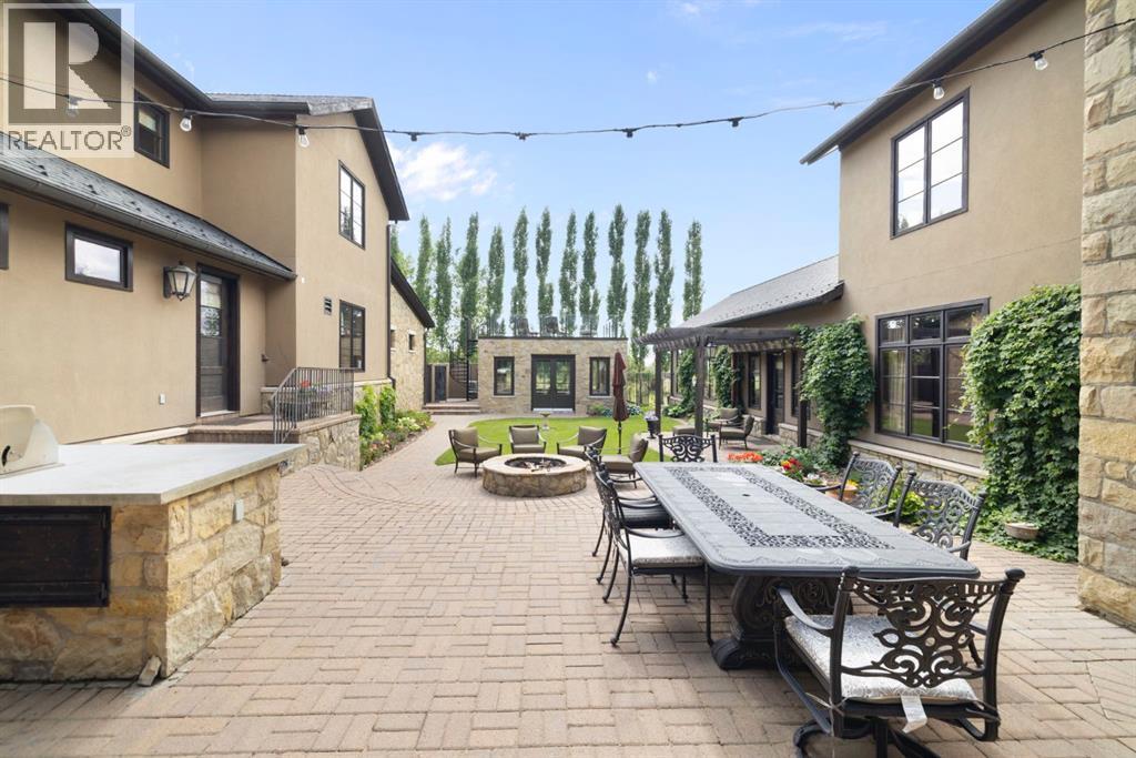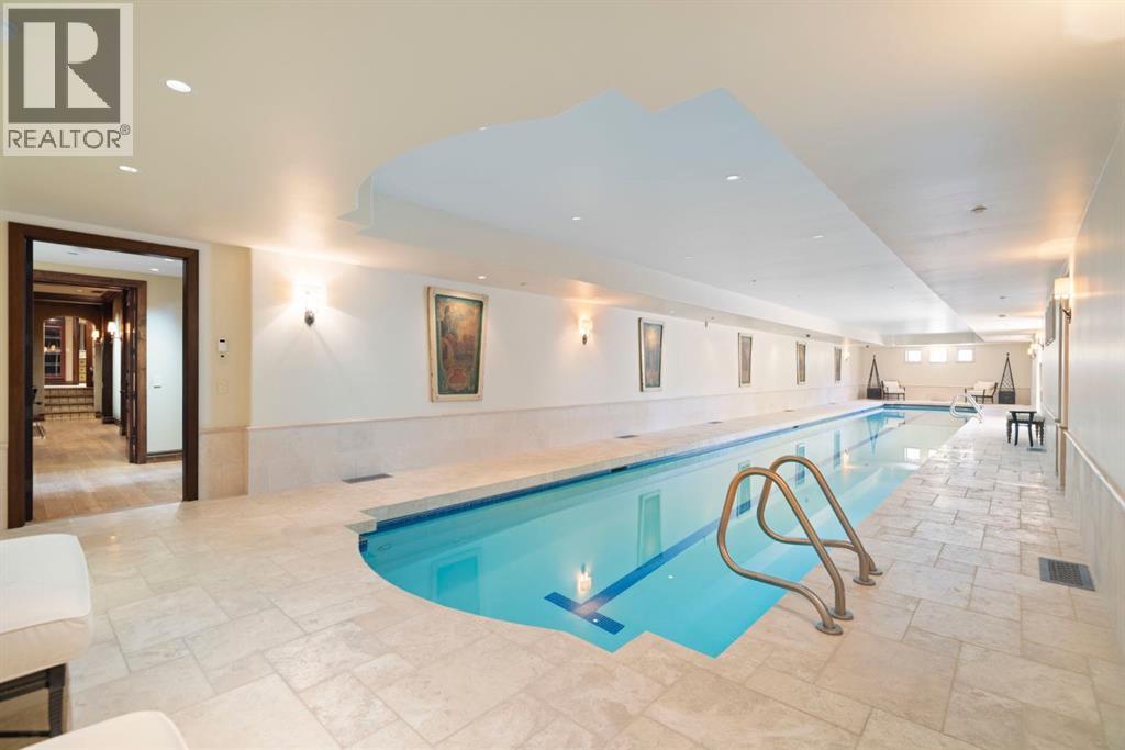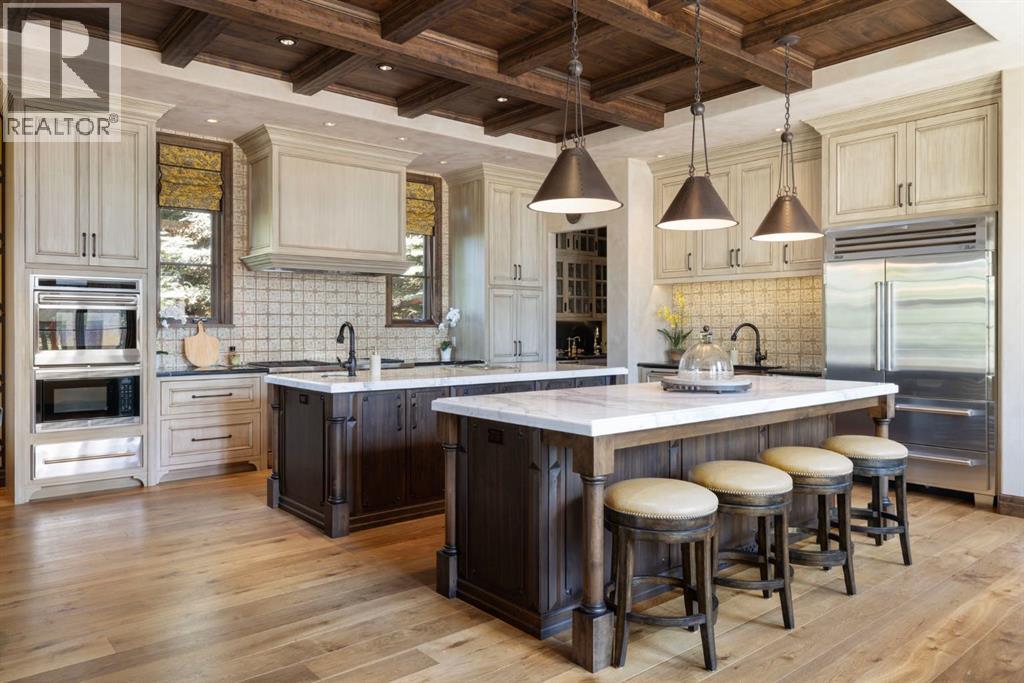 Welcome to 209 Pinnacle Ridge, an exceptional Tuscan inspired estate set on two acres in the foothills with sweeping views of the Rocky Mountains and just minutes from Calgary’s finest amenities. With more than 16,000 square feet of living space, this villa combines timeless European charm with modern luxury in every detail.The exterior showcases stonework, hand sawn timber beams, industrial steel brackets, and an oversized custom entry door. Inside, arched doorways, barrel vaulted ceilings, and perfectly aligned sightlines frame picturesque views throughout.The grand foyer with its soaring ceiling and bridge walkway leads to a formal lounge with paneled walls, coffered ceilings, and a wood burning fireplace. At the heart of the home, a gourmet kitchen with slab marble islands and a full suite of commercial grade appliances opens to the central courtyard, a private gathering space with built in BBQ, wall fountain, and pergola topped brick patio. Just beyond, the family room features a travertine mantled fireplace and French doors to the west lawn.The lower level is designed for both leisure and entertainment, offering a 25-meter lap pool, spa inspired hot tub alcove, walkout patio framed by sandstone boulders, a private theatre with professional grade audio visual, a games room with fabric lined walls, and a brick barrel vaulted wine cellar.The private primary wing showcases sweeping 180 degree mountain views and a luxurious ensuite. The upper level, accessed by dual staircases or elevator, offers five children’s bedrooms, a gym, and recreation spaces. Completing the home is a six car garage, extensive storage, a sport court, and professionally landscaped grounds.This estate has been featured in the National Post and Best Home Alberta, showcased in the award-winning series Fargo, and even served as Leonardo DiCaprio’s residence during the filming of The Revenant. It is a rare combination of artisanal craftsmanship, imported and local materials, and timeless arc hitectural design. All within 10 minutes of Springbank Airport, 15 minutes of downtown Calgary, 40 minutes to Banff, and close to Calgary’s top private schools. (id:55577)