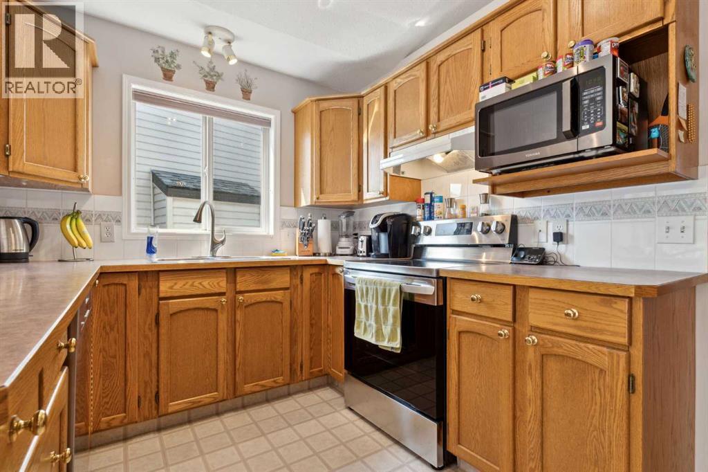 Great 3 bedroom Bilevel located on quiet street in desirable Citadel! This home is located on a well treed, fenced and landscaped lot. Nice sized living-dining room combination and has a gas fireplace and vaulted ceilings. Nice sized kitchen has a large eating area and a glass door leading to the deck that has a natural gas line for the BBQ. 3 good sized bedrooms with the master having an ensuite bath with jetted tub and separate shower. Fully developed lower level is bright and has 9 foot ceilings, a games/family area with gas fireplace, a den, 4 piece bathroom and a large laundry/storage room. Double attached garage with a workbench. Nice sized and private backyard has lots of room for the kids to play. Close to schools, parks and shopping. (id:55577)