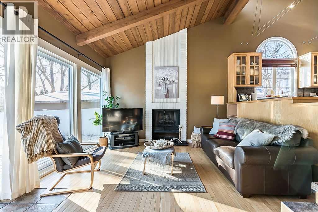 ** Open House Sat 1-3 ** AMAZING 1550SQ.FT. BUNGALOW with soaring VAULTED CEILING in beautiful Suntree, across from fountain/pond on a huge NEARLY QUARTER ACRE LOT! Numerous updates over the years, including new windows (2018), new furnace (2018), new hot water tank and water softener (2018), new shingles (2016), ensuite bathroom (2012), and kitchen & flooring (2004-2012). OPEN CONCEPT floor plan features large kitchen with maple cabinetry & island, dining room, den with large windows looking over community pond, and sunken family room with wood-burning fireplace overlooking back yard with sliding doors to patio. This level also offers primary bedroom with beautiful ensuite bathroom, two more bedrooms and large bathroom. LOWER level has a full bathroom but is otherwise unfinished with plenty of room for a fourth bedroom, rec room and storage area. Large attached double garage and a stunning HUGE south yard complete this home. If you love the charm of older neighbourhoods, want the privacy of a large lot, and seeking a bungalow with amazing sunlight & open concept plan, then you will fall in love with this one. (id:55577)